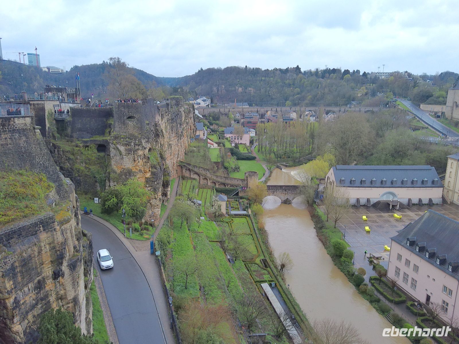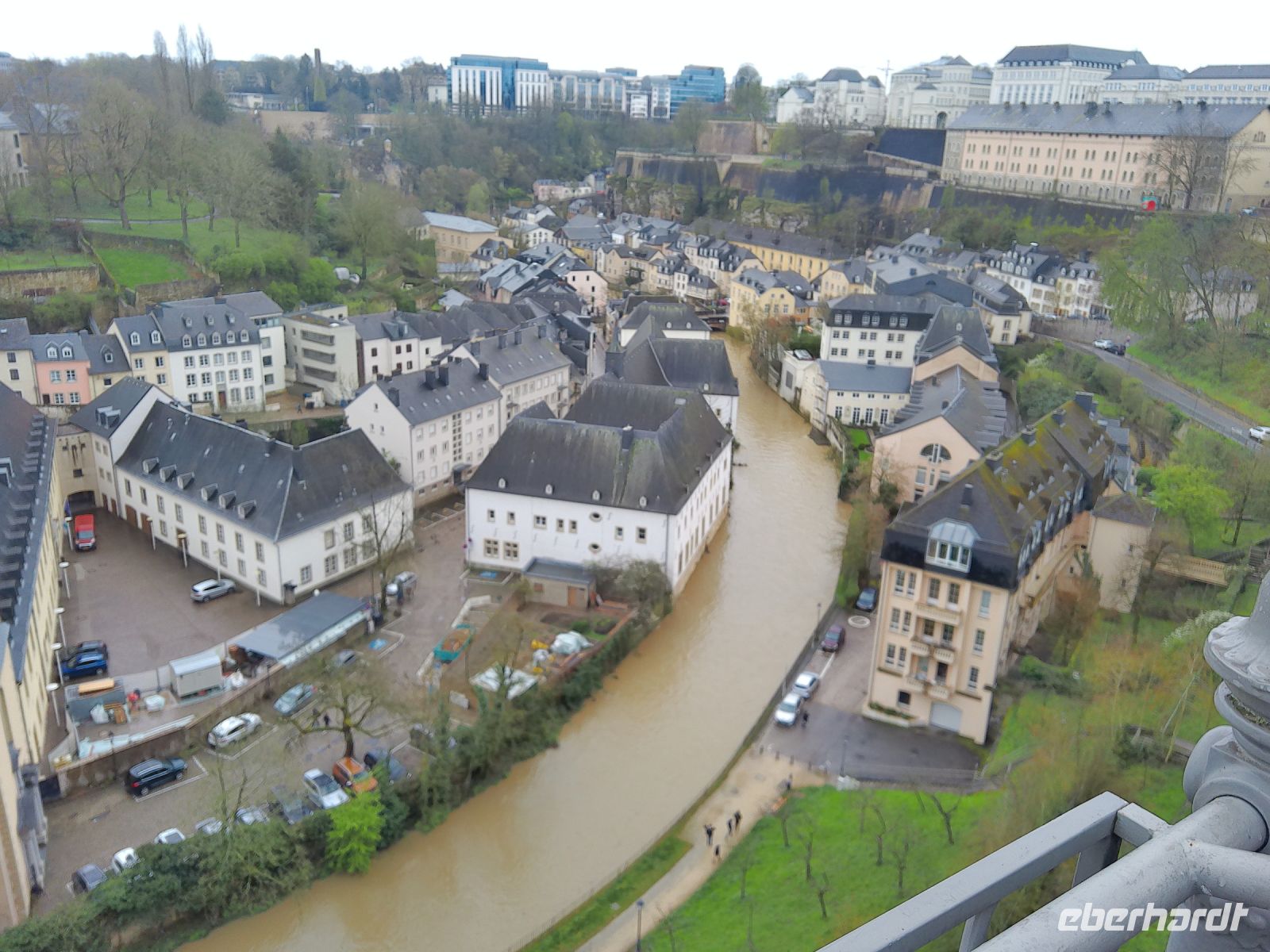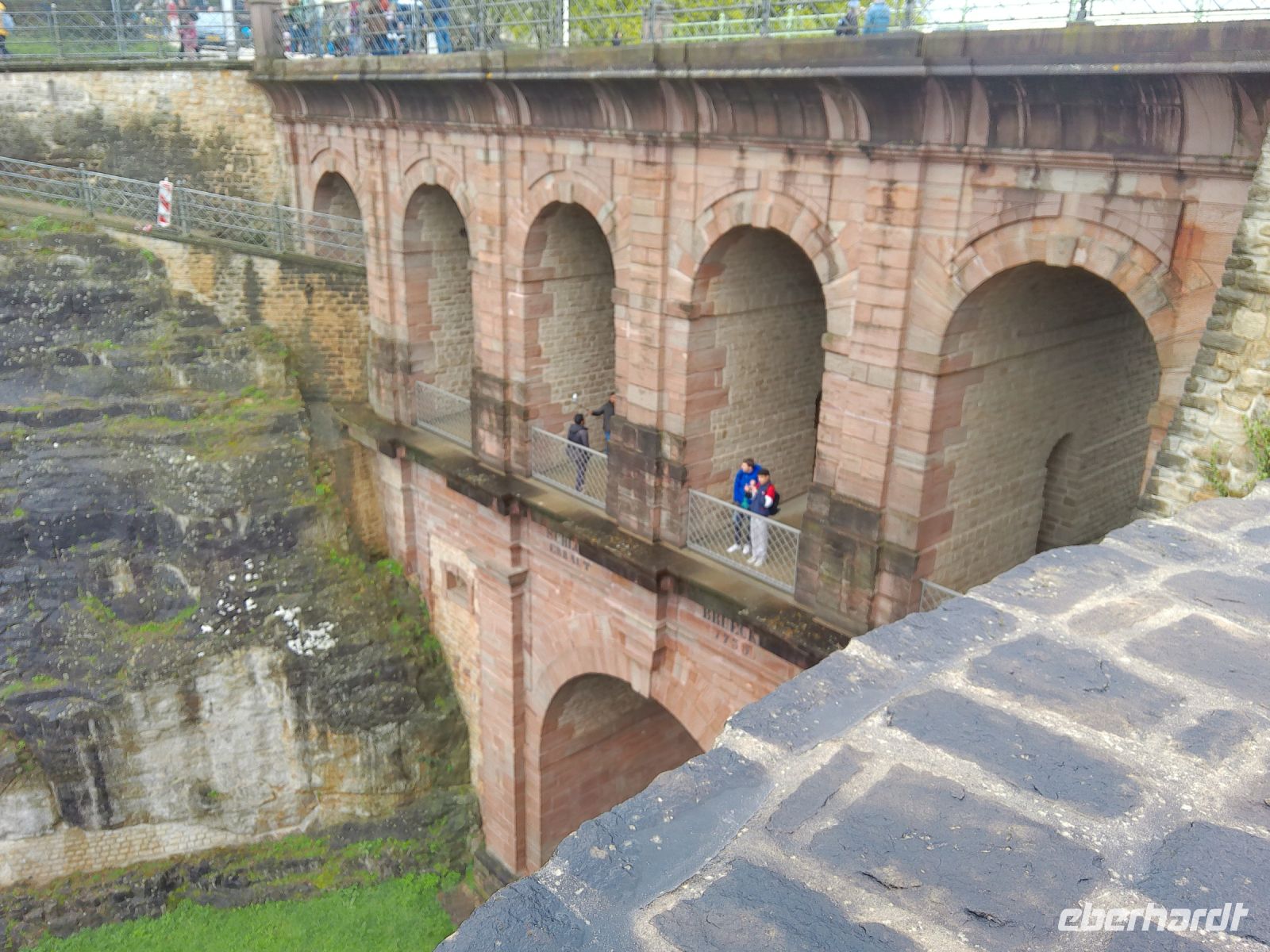 Heute führte uns unser Tagesausflug, bei leichten Regen, zunächst ins Dreiländereck nach Schengen. Denn 1985 wurde auf dem Ausflugsschiff „Princess Marie-Astrid“ genau an der Stelle, wo die Grenzen Deutschlands, Frankreichs und Luxemburgs sich in der Mitte der Mosel trafen, ein bedeutender europäischer Vertrag unterzeichnet. Das Schengener Abkommen, dass zum Abbau der Zollschranken zwischen den Mitgliedsländern führte. Das Nationen-Denkmal erinnert an diesen bedeutenden Schritt der europäischen Einigung. Auf den großen Stelen vor dem Museum sind die Europasterne als Länderreliefs gestaltet. Ein schönes Ratespiel für große und kleine Europäer, an dem auch wir uns versuchten. In Anlehnung an den Ort der Unterzeichnung des Schengen-Vertrages, das Ausflugsschiff „Princess Marie-Astrid“, wurde die Touristeninformation auf dem Moselponton einem Ausflugsdampfer nachempfunden. Weiter ging unsere Reise nach Luxemburg-Stadt, wo wir den Vorteil des kostenlosen ÖPNV nutzten. Denn seit 2020 ist im ganzen Land Luxemburg der komplette ÖPNV kostenlos. So fuhren wir mit der Tram ein paar Haltestellen in die Innenstadt. Hier begannen wir unseren Stadtrundgang an der Adolphebrücke, mit einen tollen Ausblick über das Petruss-Tal und auf der anderen Seite dem Staatsbankgebäude der Sparkasse. Wir flanierten zur Statue Gele Fra (Goldene Frau). Sie ist für die Luxemburger eine Art nationales Symbol gegen Diktatur und für den Frieden geworden. Anschließend besichtigten wir die Kathedrale Notredam. Die Umrisse dieses markanten Gotteshauses bestimmen heute noch die Silhouette der Stadt. Die „Krone der Altstadt“, wie die Kathedrale Notredam häufig auch genannt wird, erhielt 1870 von Papst Pius IX den Namen „Kathedrale unserer lieben Frau von Luxemburg“. Die Krypta der Kathedrale beherbergt neben dem Grabmal Johannes des Blinden und der Gruft der luxemburgischen Bischöfe auch die der großherzoglichen Familie. Weiter ging es schließlich zum Knuedlerplatz, dem zentralen Platz der luxemburgischen Hauptstadt, wo wir eine Mittagspause einlegten. Da wir Ostermontag hatten, fand in der Altstadt gerade das sogenannte Eimaischen-Fest statt. Diese luxemburgische Tradition, ist ein Kunsthandwerksmarkt, der seit 1827 existiert und bei dem Töpferwaren und Keramik im Mittelpunkt stehen. U.a. wird hier die „Peckvillercher“, eine kleine Terracotta-Pfeife in Vogelform, verkauft. Dadurch konnten wir auch ein buntes Treiben rund um den Großherzoglichen Palast beobachten. Wir setzten unseren Stadtrundgang schließlich an der Corniche fort. Das französische Wort Corniche bedeutet u.a. „Weg über einem Steilhang“. Auf die Corniche in Luxemburg trifft diese Bezeichnung in besonderem Maße zu, denn die Corniche verläuft auf einem steinernen Wall, den Spanier und Franzosen im 17. Jahrhundert entlang einer sehr steilen, natürlichen Felswand errichtet haben. Beim Gang über diesen Weg bot uns ein wirklich beeindruckender Ausblick auf die Felsenlandschaft der Innenstadt und dem tiefen Tal der Alzette. Wir blickten auch auf die Abtei Neumünster, welche noch bis 1985 als Männergefängnis genutzt wurde. Sowie auf den Bockfelsen mit seinen beeindruckenden Kasematten-Tunneln. Diese Tunnelgänge haben insgesamt eine Länge von 24km. Am Bockfelsen angekommen, betrachteten wir noch die Schlossbrücke. Diese wurde im Jahr 1735 aus rotem Sandstein erbaut und ist direkt in den Felsvorsprung integriert. Auf der andren Seite des Bockfelsen genossen wir einen schönen Ausblick auf das moderne Kirchbergplateau und in den Ortsteil Pfaffenthal der Unterstadt. Weiter entlang der Oberstadt ging es schließlich noch zum Panoramaaufzug Pfaffenthal. Mit diesem Aufzug kann man einfach und bequem von der Oberstadt in die Unterstadt gelangen. Wir begaben uns allerdings nach soviel Eindrücken wieder zurück zum Bus. Bevor wir Luxemburg wieder verließen, drehten wir zum Abschluss noch eine kurze Runde über das Kirchbergplateau. Kaum vorstellbar, das der Kirchbergplateau in den 1960er-Jahren noch aus landwirtschaftlich genutzten Flächen und aus Brachland bestand. Seitdem sprießen die modernen Bauten wie Pilze aus dem Boden. Allen voran das Europaviertel mit dem Europäischen Gerichtshof, der Europäischen Investitionsbank und dem Europäischen Rechnungshof. Nach diesem langen Tag erreichten wir schließlich wieder die Mosel mit ihrem Dreiländereck und fuhren zurück nach Saarbrücken. Hier absolvierten wir am Abend noch einen kleinen Spaziergang zum Restaurant „Brauhaus zum Stiefel“, wo uns zum Abschluss des Tages ein reichhaltiges 3-Gänge Menü erwartete.