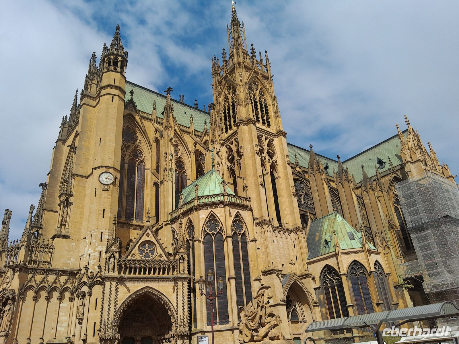 Heute morgen erwartete uns im Hotel Gabi Sauer, für unseren letzten Tagesausflug ins französisch benachbarte Lothringen. Bei sonnigen Wetter überquerten wir bereits nach wenigen Minuten die Grenze zu Frankreich. Da die Stadtgrenze von Saarbrücken, gleichzeitig auf 19 Kilometer Länge die Ländergrenze zu Frankreich bildet. So fuhren wir durch die Region Lothringen in das Département Moselle mit seiner Hauptstadt Metz. In der mit ca. 120.000 Einwohnern belebten Stadt, machte Gabi mit uns erst eine kleine Rundfahrt. Es ging in ein neues modernes Stadtviertel von Metz, wo wir das Centre Pompidou betrachteten. Dieses Ausstellungsgebäude für moderne Kunst wurde 2010 eröffnet und ist ein architektonisches Meisterwerk. Gleich in der Nähe begaben wir uns in ein weiteres modernes Bauwerk, dem Muse-Einkaufszentrum. Hier kommt man nicht nur zum Einkaufen her. Sondern auch Wohnen, Arbeiten und zahlreiche Freizeitangebote sind hier möglich. Anschließend fuhren wir an die Uferpromenade der Mosel, von wo wir einen tollen Blick auf die Stadt genießen konnten. Von hieraus erkundeten wir die malerischen Gassen von Metz, die gesäumt sind von charmanten Cafes, Boutiquen und historischen Gebäuden. Bevor wir uns der Hauptattraktion von Metz, die Kathedrale Sankt Etienne, widmeten, konnte jeder bei einer Mittagspause in Ruhe durch die Markthalle schlendern. Hier findet man eine Vielzahl an frischen Produkten und lokalen Spezialitäten aus der Region Lothringen. Von Käse und Wurstwaren bis hin zu frischen Obst und Gemüse findet man alles, um eine kulinarische Entdeckungsreise zu unternehmen. Ein wenig gestärkt begaben wir uns nun in die Kathedrale. Schon von weitem beeindruckt die Kathedrale mit ihrer imposanten Größe und den filigranen Verzierungen. Wir bestaunten die berühmten Chagall-Fenster, die das Innere der Kathedrale mit einem warmen, farbenfrohen Licht durchfluten und eine einzigartige Atmosphäre schaffen. Nach soviel Eindrücken der Stadt Metz fuhren wir am Nachmittag weiter nach Joey-aux-Arches. Hier absolvierte Gabi mit uns einen kleinen Spaziergang entlang der Mosel, zu einen ehemaligen römischen Aquädukt. Die massiven Steinbögen des Aquädukts, welche sich über das Tal spannen, zeugen von der handwerklichen Geschicklichkeit und dem technischen Know-how der römischen Baumeister. Obwohl Teile des Aquädukts im Laufe der Jahrhunderte verloren gegangen sind, ist ein Großteil der Struktur immer noch intakt und bot uns einen eindrucksvollen Einblick in die Baukunst der Antike. Anschließend fuhren wir weiter zur Mirabellen-Destille, wo wir fachmännische Einblicke die Produktionsabläufe der Schnapsbrennerei bekamen. Natürlich durfte eine Verkostung der verschiedenen Obst- und Mirabellenschnäpse nicht fehlen. Am späten Nachmittag machten wir uns schließlich langsam wieder auf den Rückweg nach Saarbrücken. Da Jan mit unserem Reisebus in Frankreich blieb, fuhren wir ab der französischen Grenzstadt Forbach mit Taxis zurück ins Hotel. Dabei gerieten wir in Saarbrücken noch in einen kleinen Stau, da bereits viele Fußballfans zum abendlichen DFB-Pokalspiel (Saarbrücken – Kaiserslautern) unterwegs waren. An unseren letzten Abend, erwartete uns zum Abschluss wieder ein leckeres 3-Gänge Menü im Hotel. Und jeder bekam von mir noch eine kleine Aufmerksamkeit, als Erinnerung an das Saarland geschenkt.