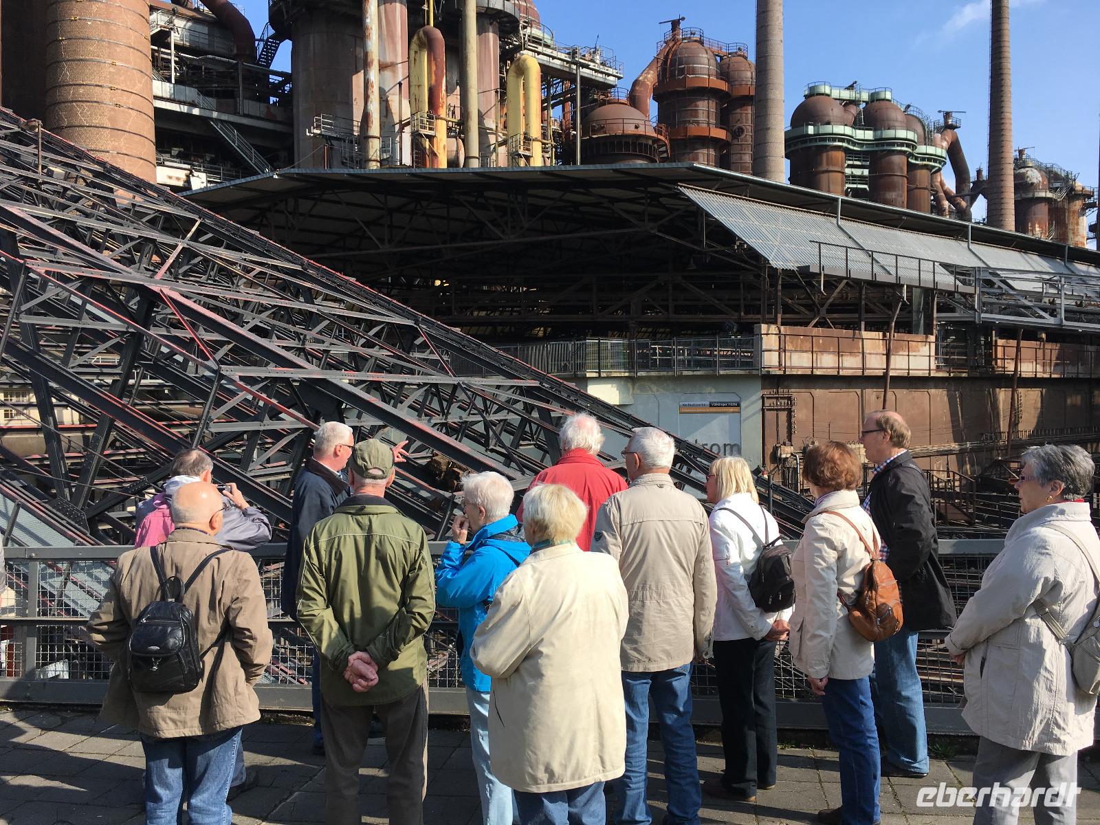 Heute konnten wir etwas länger schlafen und somit begrüßten wir uns 8 Uhr zum Frühstück im Hotel. Um 9.10 Uhr war dann die Abfahrt zum Weltkulturerbe Völklinger Hütte. Gespannt freuten wir uns auf die Führung. Die Gruppe teilte sich in zwei Gruppen - eine Gruppe ging mit Sylvia, die andere mit Cathleen. Der Gästeführer zeigte uns das faszinierende Weltkulturerbe Völklinger Hütte bei einer sehr interessanten zweistündigen Führung. Am Anfang ging es tief hinein in die riesengroße Gebläsehalle und weiter zur Sinteranlage, wo uns der Gästeführer etwas über die Anfänge bis in die Gegenwart im 21. Jahrhundert erzählte. Im Anschluss ging es nach draußen über die Handwerkergasse zur Hochofengruppe. 6 Hochöfen besitzt die Völklinger Hütte. Jetzt hieß es: Helme auf und hoch hinaus! Über viele Treppen ging es hoch in luftige Höhe auf die Aussichtsplattform am Hochofen. Bei strahlendem Sonnenschein hatten wir eine traumhafte Sicht. Einige von uns trauten sich noch weitere 19m hinauf und genossen ein einmaliges Panorama. Nach der Führung und einer kurzen Pause im Geschenke-Shop gelangten wir zum Parkplatz zurück, wo schon Sylvia und Andreas mit einer Überraschung auf uns warteten. Wir genossen ein urisches saarländisches Picknick auf dem Parkplatz der Völklinger Hütte. Die Kulisse war einfach perfekt! Bei typischem saarländischem Ausblick genossen wir saarländischen Wein, Lyoner Wurst, Saure Gurken und Brot. Nach dieser Stärkung ging es weiter nach Saarbrücken. Nur eine kurze 20-minütige Fahrt trennte uns von der Hauptstadt des Saarlandes. Unsere Städteführerin stieg in den Bus ein und führte uns bequem über die Saar nach St. Johann. Wir sahen das Rathaus, fuhren über die Wilhelm-Heinrich-Brücke bis zum wunderschönen Ludwigsplatz mit der Ludwigskirche. Hier hatten wir einen kurzen Halt und die Städteführerin erzählte uns viel Interessantes über den Platz und die vor allem über die von Innen traumhaft aussehende Kirche. Unsere Fahrt endete am Schlossplatz und unsere Führung ging zu Fuß weiter. Nachdem wir einen schönen Panoramablick über Saarbrücken genossen, schlenderten wir über die Alte Brücke zurück nach St. Johann zum St. Johann Marktplatz. Dort endete unsere Stadtführung und wir konnten uns individuell Saarbrücken anschauen. Wer Bummeln gehen wollte, lief die Bahnhofsstraße entlang, wer das Rathaus noch einmal besichtigen wollte, lief Richtung Rathausplatz und wer einfach nur Entspannen wollte und die Sonne bei einer Tasse Kaffee genießen wollte, suchte sich eins der vielen netten Cafés am Marktplatz. Um 17.30 Uhr fanden wir uns alle wieder im „Zum Stiefel" ein und kosteten saarländische Spezialitäten zum Abendessen. Ob Stiefel-Spitz, Hoorisches Grün oder Unsere Gefillde, es war für jeden etwas dabei. Nach der kurzen Begrüßung des Geschäftsführers genossen wir das deftige und reichliche Essen, bei dem jeder satt wurde. In einer lustigen Runde aßen und tranken wir und ließen den Abend kulinarisch ausklingen. Gegen 20 Uhr liefen wir über die Alte Brücke zum Bus zurück und fuhren zurück ins Hotel. Geschafft aber glücklich und satt, fielen wir ins Bett.