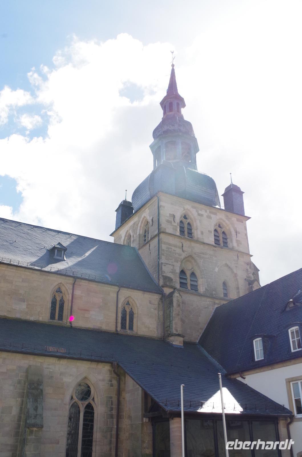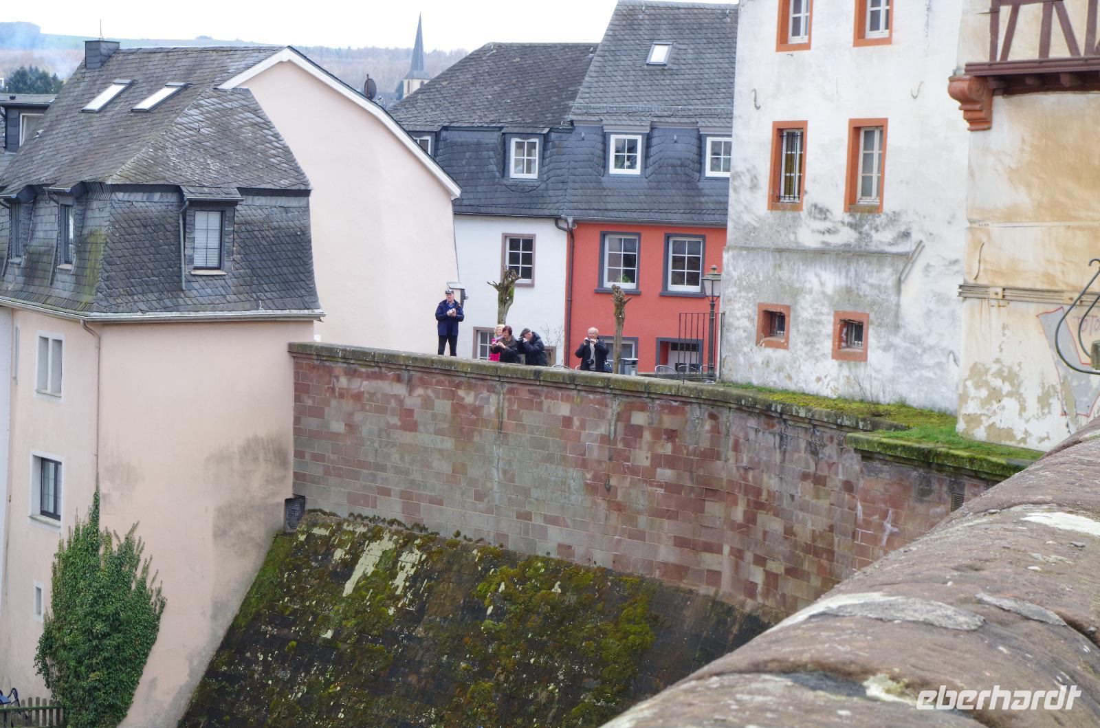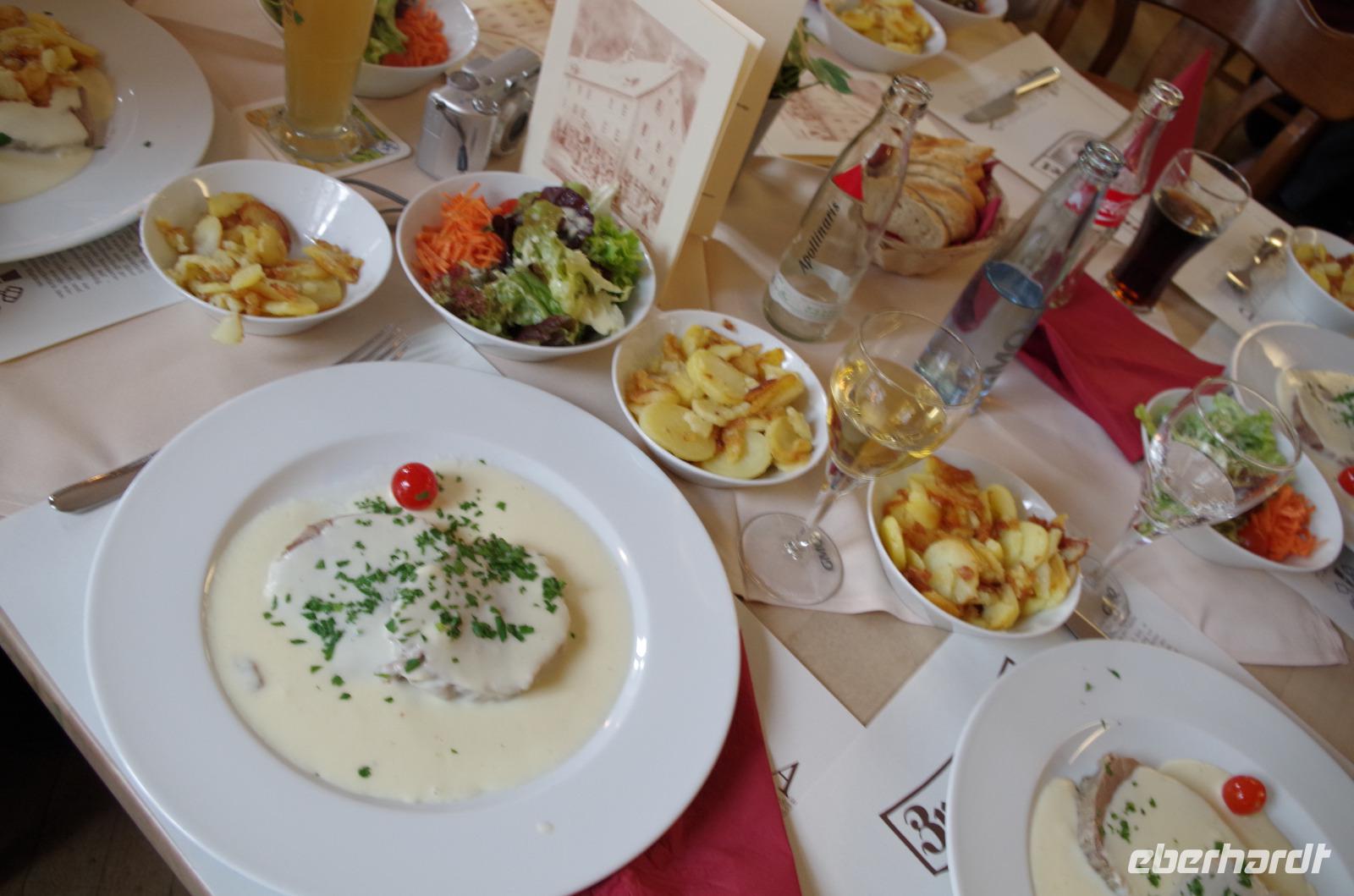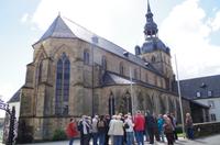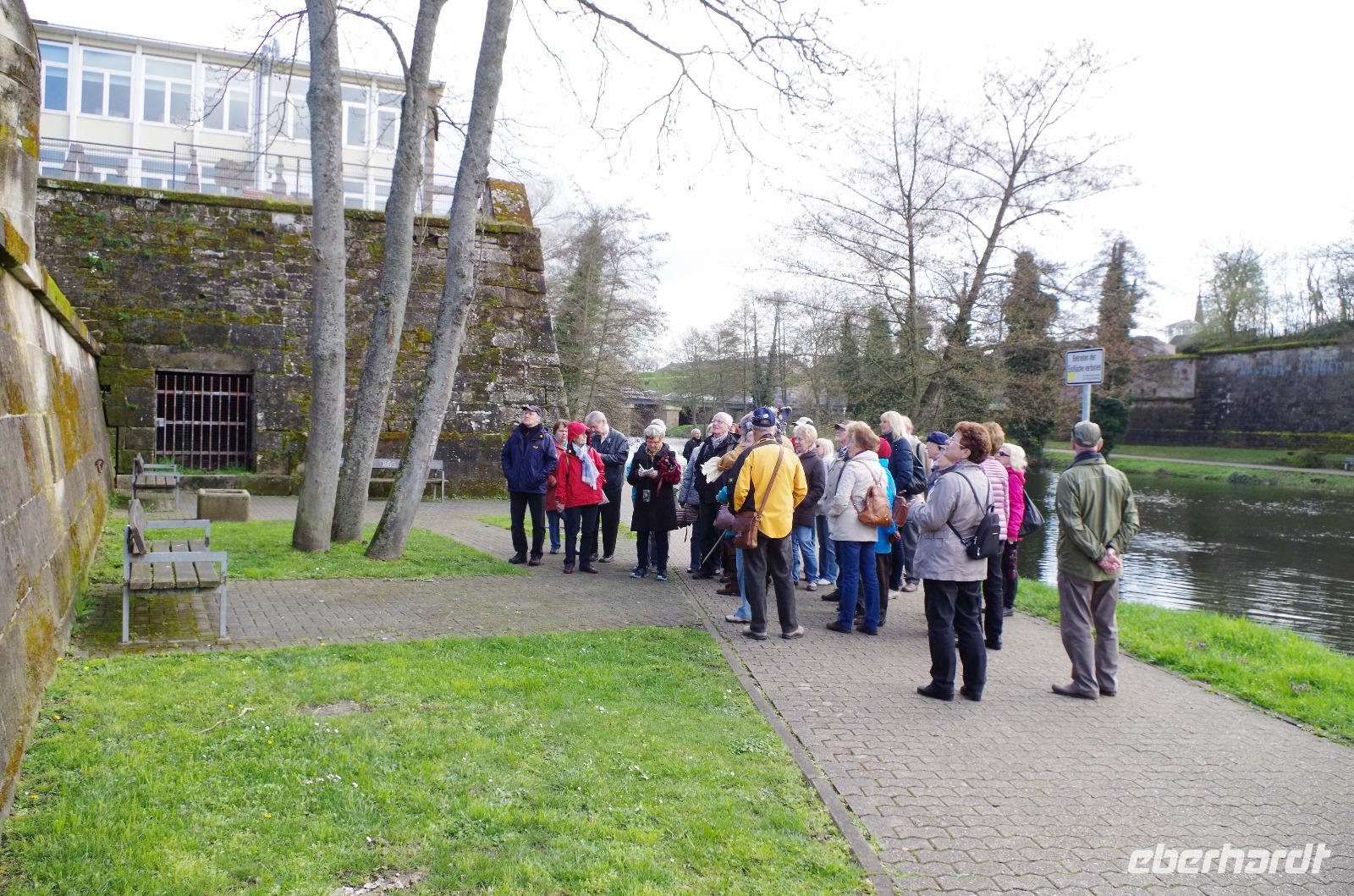 Heute trafen wir uns wie jeden Tag 8 Uhr zum Frühstück im Hotel. Eine Stunde später fuhren wir eine kurze Strecke in die Innenstadt von Saarlouis. Wir trafen uns am Rathaus mit unserem humorvollen und traditionell gekleideten Städteführer. In den nächsten zwei Stunden führte er uns nicht nur ins Rathaus, in die Kirche und in die Kassamatten, sondern auch durch die interessante Geschichte des Saarlandes. Unsere Führung endete auf der einzigen Insel im Saarland und wir kehrten zurück auf den Marktplatz. Nun hatten wir fast zwei Stunden Zeit lecker Mittag zu essen und in den Geschäften zu Bummeln. Einige trauten sich und kehrten im Restaurant Auberger Marchal Ney ein und probierten die Spezialität des Hauses - eine Delikatesse: Froschschenkel! Nach dem Mittag stieg unser Reisebegleiter Josef Angel in den Bus und begleitete uns nach Tholey zur Abtei St. Mauritius. Während der Fahrt erzählte uns Josef seine persönlichen Erlebnisse aus dem Saarland. In Tholey angekommen erwartete uns schon Joachim Ohlmann, der viel Interessantes und Wissenswertes über die Abtei und ihrer Geschichte erzählte. Zum Abschluss zeigte uns Joachim die wunderschöne Gartenanlage der Abtei. Im Anschluss fuhren wir ein kurzes Stück zur Johann Adams Mühle. Die Gruppe teilte sich in 2 Gruppen auf. Die Gruppe von Sylvia besichtigte erst einmal bei einer 20-minütigen Führung die alte Mühle, in der noch heute Brot wie früher gebacken wird. Cathleens Gruppe genoss derweilen einen Kaffee mit leckerem hausgemachtem Kuchen. Danach wechselten die Gruppen. Um 17 Uhr verabschiedeten wir uns von der Mühle und traten die Rückfahrt ins Hotel an. Im Hotel hatten wir Zeit uns frisch zu machen, um wieder gut gepudert zum Abendessen zu fahren. Eine kurze Fahrt mit dem Bus trennte uns vom Restaurant Altes Pfarrhaus in Saarlouis-Beaumarais. Dort genossen wir bei Bier oder Wein ein 3-Gang Menü. Ob Hähnchenbrustfilet, Fischfilet oder Avocado mit Spinat-Mozzarella es war für jeden Gaumen etwas dabei. In einer lustigen Runde schwatzten wir und fuhren 21.30 Uhr ins Hotel zurück.