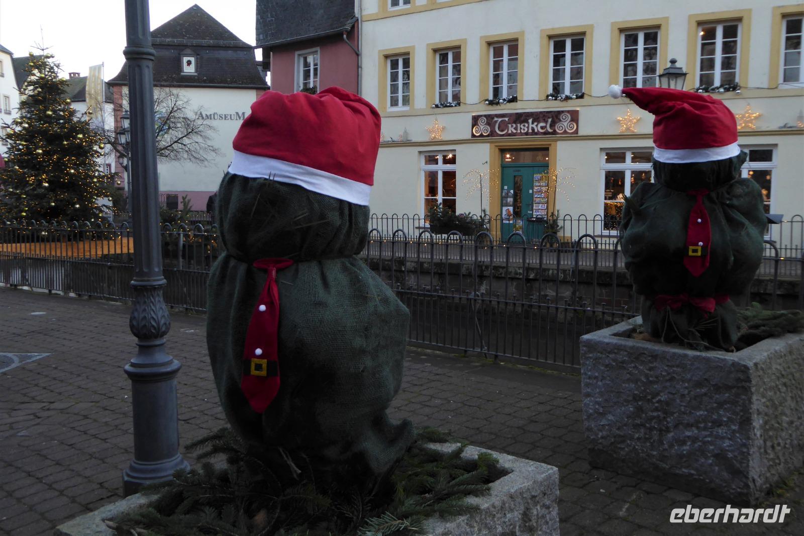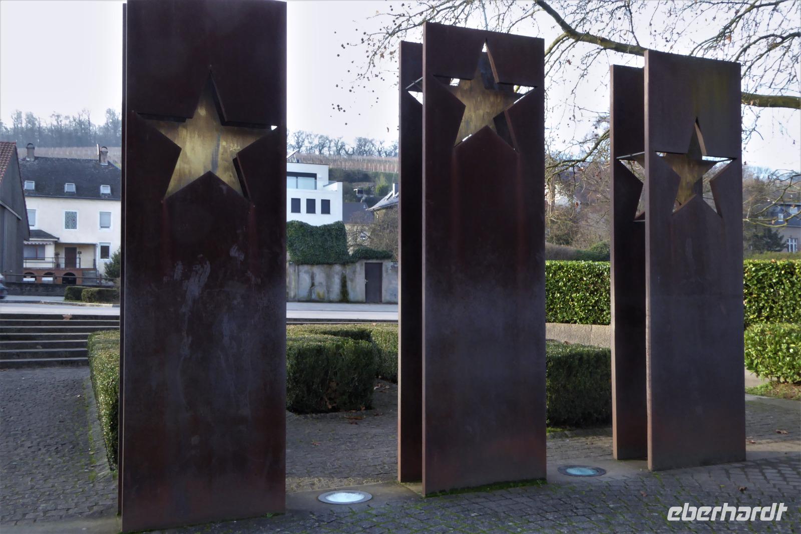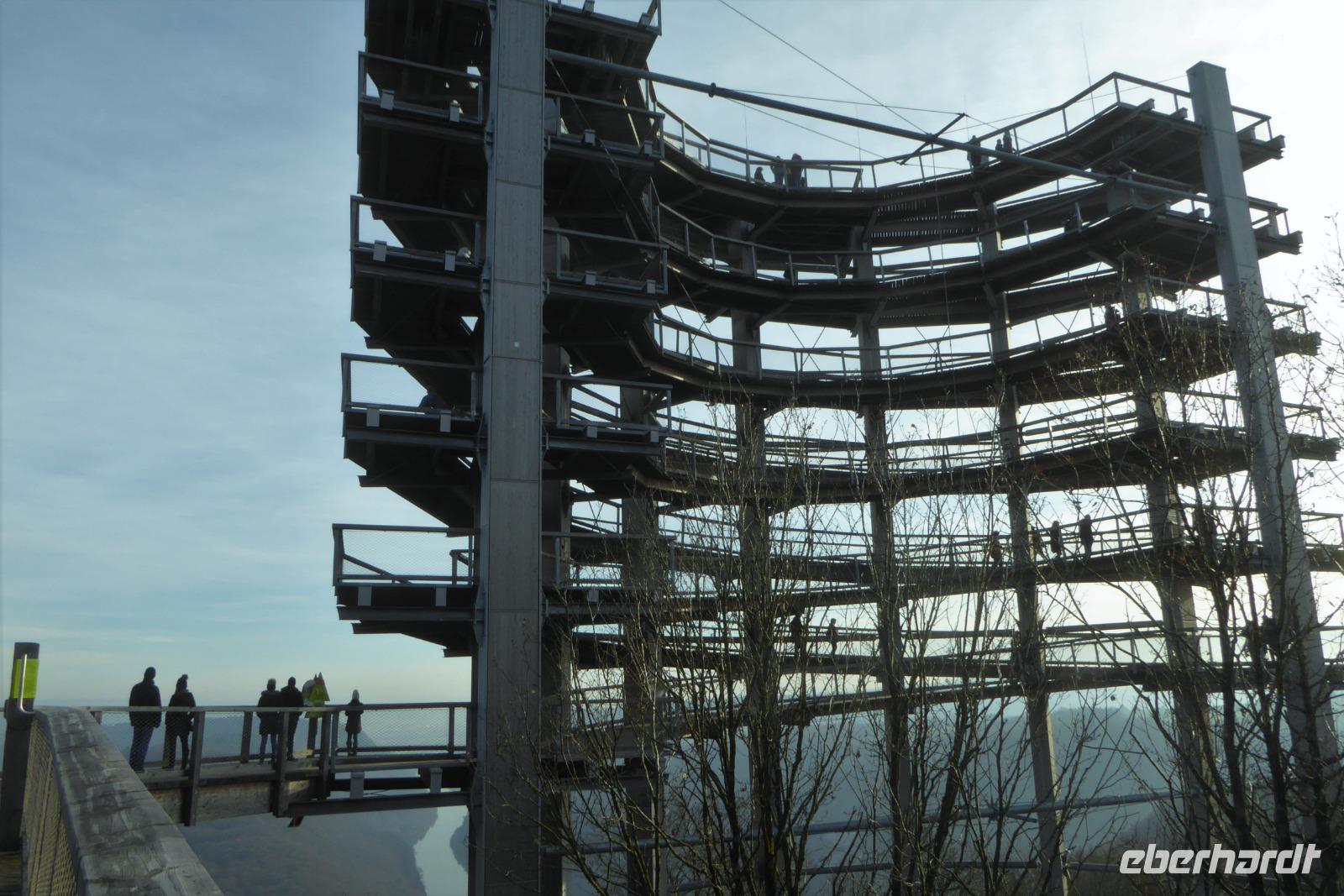 Das schöne Wetter nutzend machten wir noch eine kleine Rundfahrt über den Petrisberg und bestaunten das Welterbe Römische Baudenkmäler, Dom und Liebfrauenkirche von oben. Und schon hieß es wieder Abschied nehmen von Trier. Entlang der Mosel fuhren wir nach Konz, wo die Saar in die Mosel mündet und folgten Saar aufwärts der Route durch die herrliche Weingegend der unteren Saar bis Saarburg. Dort thront die alte Burg von Siegfried dem Ardennengrafen, der im Jahre 963 Luxemburg gründete, stolz über dem Tal. Gemeinsam machten wir uns an den steilen Aufstieg zur Burgruine und kletterten auf den über zwanzig Meter hohen Turm, um die herrliche Aussicht auf das Städtchen und die sonnenbeschienene Flusslandschaft zu genießen. Die Besonderheit des Ortes ist der kleine Leukbach, der raffiniert umgeleitet, einen 18 Meter hohen Wasserfall inmitten des Ortskerns bildet. Mit dem Wasser wird bis heute Strom erzeugt. Früher wurden mithilfe der Wasserkraft die Stadtmühlen betrieben. Drei hintereinander gestaffelte Mühlräder trieben die Mahlwerke an. Der Ort zeigte sich uns noch weihnachtlich verspielt und die hübschen Cafés am Buttermarkt verführen mit ihren Leckereien. Die frühlingshaft anmutende linde Luft verführte sogar manchen von uns noch zu einem letzten Eis im alten Jahr. Am Abend stellte uns Frau Linzmann vom Hotel bei einer kurzweiligen interessanten Weinprobe feine Weine der Region von Saar, Mosel und Nahe vor.31.12.2019 Europa grenzenlos erleben: von der Saar an die MoselAm nächsten Morgen starten wir mit einer kommentierten Rundfahrt entlang der Saar, vorbei an den Industriestandorten Saarbrücken, Klarenthal, Völklingen, Saarlouis, Dillingen und Merzig bis nach Mettlach. Gespannt lauschten wir den Geschichten über das Saarland, die Sonderstellung des Landes in den fünfziger Jahren bis zur kleinen Wiedervereinigung, den Jahren des Aufschwungs und dem Ende des Bergbaus 2012 an der Saar und die damit verbundenen Chancen und Probleme des kleinsten Flächenlandes der Bundesrepublik. Saarlouis, die Stadt, die von Ludwig XIV zur Sicherung seines Reiches von seinem Festungsbaumeister Sébastien Le Prestre de Vauban in einem Saarknie errichtet wurde, ist heute eine lebendige Stadt, mit einer Unzahl kleiner Kneipen und Restaurants. Im Dillinger Hafen hält man vergebens Ausschau nach Viermastern und Ozeanriesen. Hier werden nur die großen Frachtkähne mit überseeischer Kohle für die Dillinger Hütte gelöscht, wo bis heute Roheisen hergestellt wird. Im Merziger Hafen schaukeln kleine Freizeitboote auf den Wellen. Dann sehen wir die ausgedehnten Streuobstwiesen: das ist die Heimat des "Viez", des Apfelweins. Und die Heimat von Oskar Lafontaine, der mit seiner vierten Ehefrau Sahra Wagenknecht in Merzig-Silwingen lebt.MettlachIn Mettlach, der Stadt von Villeroy & Boch besuchten wir zuerst das Museum in der alten Benediktinerabtei, wo sich seit über zweihundert Jahren der Firmensitz von V&B befindet, deren Geschichte sogar bis ins Jahr 1748 zurück reicht. Wir sahen einen interessanten Film zur Entwicklung des Unternehmens und zur Herstellung des edlen Porzellans. Die Produktpalette reicht bis heute von feinem Tafelgeschirr bis zu Sanitärkeramik. Oberste kirchliche und weltliche Würdenträger weltweit schmückten und schmücken ihre Tafeln mit edlem Porzellan von der Saar. Papst Franziskus jedoch lehnte das Angebot des erlesenen Geschenkes der Firma ab und verweigerte die Verwendung seines päpstlichen Wappens für die Herstellung eines Tafelservices! Für die Kollektion NewWave wurde die Firma 2004 mit dem Innovationspreis der deutschen Wirtschaft ausgezeichnet. Mit einem Blick in den Nachbau der Pfundschen Molkerei in Dresden, das Original wurde im Dresdner V&B Werk 1892 hergestellt, beendeten wir unseren Rundgang, denn die schön gedeckten Tische in der Ausstellung machen Lust auf einen Einkauf im V&B Outlet. In der ausgedehnten Parkanlage steht neben dem Alten Turm, dem ältesten sakralen Bauwerk des Saarlandes, eine moderne Kunstinstallation, die bei der EXPO 2000 in Hannover Furore machte: der Erdgeist von André Heller, umrahmt von farbenfrohen Bildtafeln des Künstlers Stefan Szczesny: ein Appell an alle Menschen aller Kontinente im Einklang mit der Natur und ihren Geschöpfen friedvoll zusammen zu leben.BaumwipfelpfadBei herrlichem Sonnenschein fuhren wir zur Saarschleife nach Orscholz. Ein kleiner Mittagsimbiss am Bus tröstete uns über die am Silvestertag geschlossenen Restaurants hinweg und wir ließen uns heiße Würstchen und Glühwein schmecken, bevor wir zum Baumwipfelpfad Marathon aufbrachen. Kaum dass wir den Eingang passierten, stürmten die Ersten schon über den Holzplankenweg hinauf zur Plattform. Und dann kann man sie sehen, die Saarschleife. Ein Umlaufberg aus hartem Taunusquarzit zwingt den Fluss zu einem Umweg von zehn Kilometern und bietet so ein unvergleichliches Naturschauspiel. Danach geht es noch weiter hinauf in luftige Höhe: Auf dem 42 Meter hohen Aussichtsturm wird man mit einer herrlichen 360° Aussicht belohnt! Deutschland, Luxemburg und Frankreich treffen hier aneinander und Wanderwege laden zum grenzenlosen Erkunden der Regionen ein. SchengenVon der Saar an die Mosel sind es nur wenige Kilometer und so führte unsere Rundreise von Orscholz weiter nach Schengen, einem kleinen Moselstädtchen in Luxemburg. Hier in diesem Winzerstädtchen mit damals gerade mal knapp 400 Einwohnern wurde 1985 mit dem ersten Schengener Abkommen europäische Geschichte geschrieben. Der luxemburger Stararchitekt Francois Valentiny gestaltete das Denkmal und die Säulen der Nationen mit den Ländersternen aller Länder, die das Abkommen bis heute unterzeichnet haben. Ein unterhaltsam-informativer Spaziergang durch die Geschichte Europas und seiner Länder beendete den abwechslungsreichen Ausflugstag ins Drei-Länder-Eck. Im Hotel freuten wir uns alle auf einen schönen gemeinsamen Jahresausklang. Feierlich gestimmt trafen wir alle wieder im festlich dekoriert