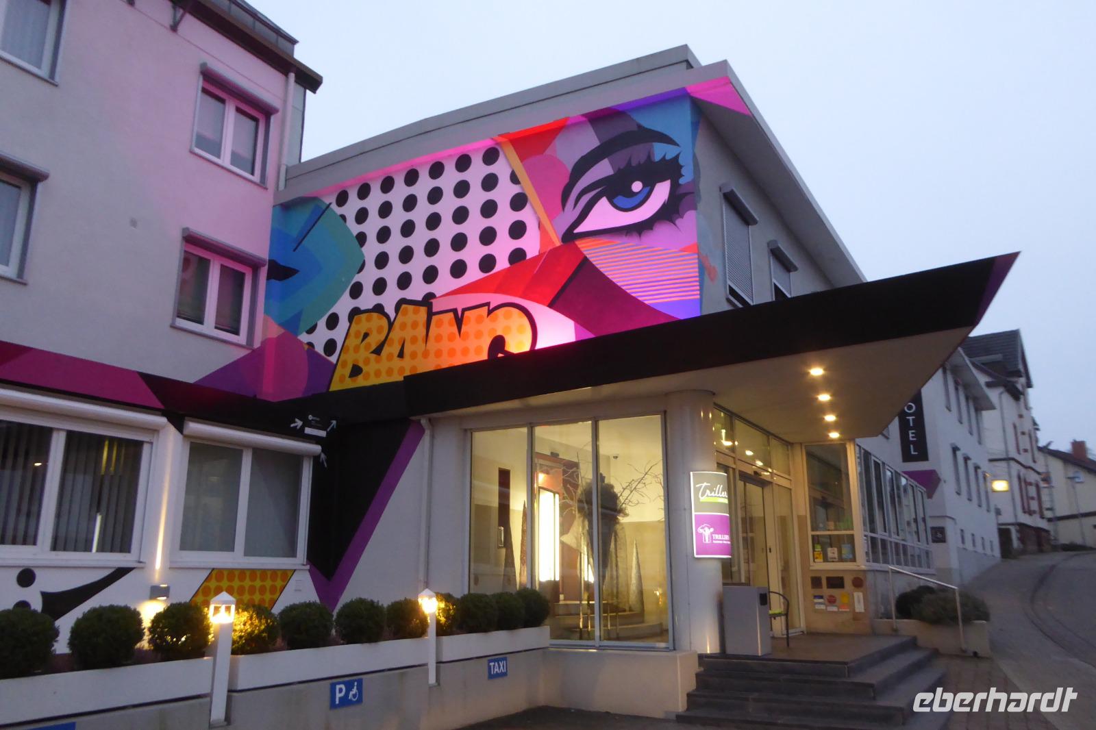 Mit wirbelnden Schneeflocken verabschiedete sich Dresden am letzten Samstag des Jahres und wir machten uns auf, zu unserer Rundreise einmal quer durch die Bundesrepublik. Um die Mittagszeit in Neudietendorf war unsere Reisegruppe mit 40 Gästen dann komplett und ich erzählte die ersten Geschichten über das unbekannte Land an der Saar. Bekannte Politiker stammen von dort: Annegret Kramp-Karrenbauer, Heiko Maas, Peter Hartz, ja, der mit Hartz IV- Gesetzen, Peter Altmaier, Oskar Lafontaine und nicht zuletzt der ehemalige Staatsratsvorsitzende Erich Honnecker sind waschechte Saarländer. Und nein, französisch sprechen die Menschen dort nicht, waren sie doch in ihrer Geschichte immer mehr der deutschen Seite zugetan, egal welche politischen Fahnen gerade wehten. Mit der kleinen Wiedervereinigung im Jahre 1957 ist Ruhe eingekehrt, das Saarland wurde vollwertiges Mitglied der Bundesrepublik, auch wenn zu dieser Zeit die offiziellen Zahlungsmittel noch Saarfranken und französische Francs waren. Erst reichlich zwei Jahre später bekamen die Saarländer dann die begehrte D-Mark. Mit einem bequemen Panoramabus der Firma Braunmiller, mit dem Fahrer Dirk Fischer am Steuer, führte unsere Rundreise bei stets besser werdendem Wetter durch die wunderschönen abwechslungsreichen Landschaften Deutschlands. Wir passierten bekannte Städte mit Geschichte: Chemnitz, Gera, Jena, Erfurt und Eisenach sowie Fulda, Frankfurt, Ludwigshafen sowie Kaiserslautern und überquerten bekannte und weniger bekannte Flüsse, fünf innerdeutsche Ländergrenzen und den römischen Limes, bis wir schließlich nach 650 Kilometern in Saarbrücken unser Ziel erreichten.Nach einem herzlichen Willkommen und dem Check-in im Hotel am Triller blieb uns noch etwas Zeit für die Betrachtung der witzigen Zimmergestaltung: Die Räume sind mit Figuren und Geschichten des saarländischen Zeichners Bernd Kissel und mit farbenfrohen Pop-Art Kunstwerken des in New York lebenden puertorikanischen Künstlers Sen2 dekoriert.
