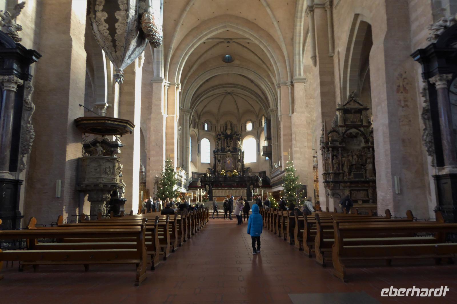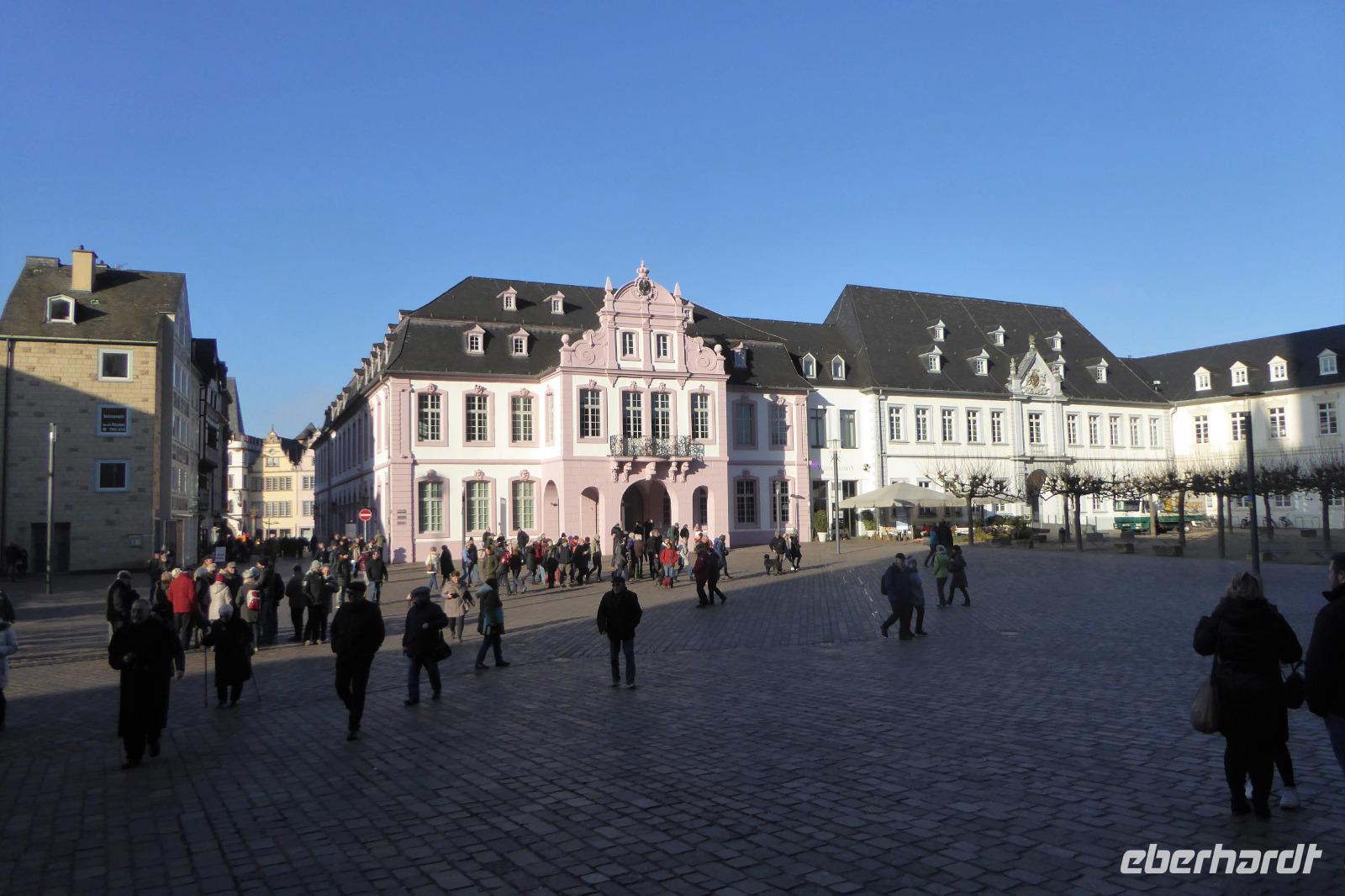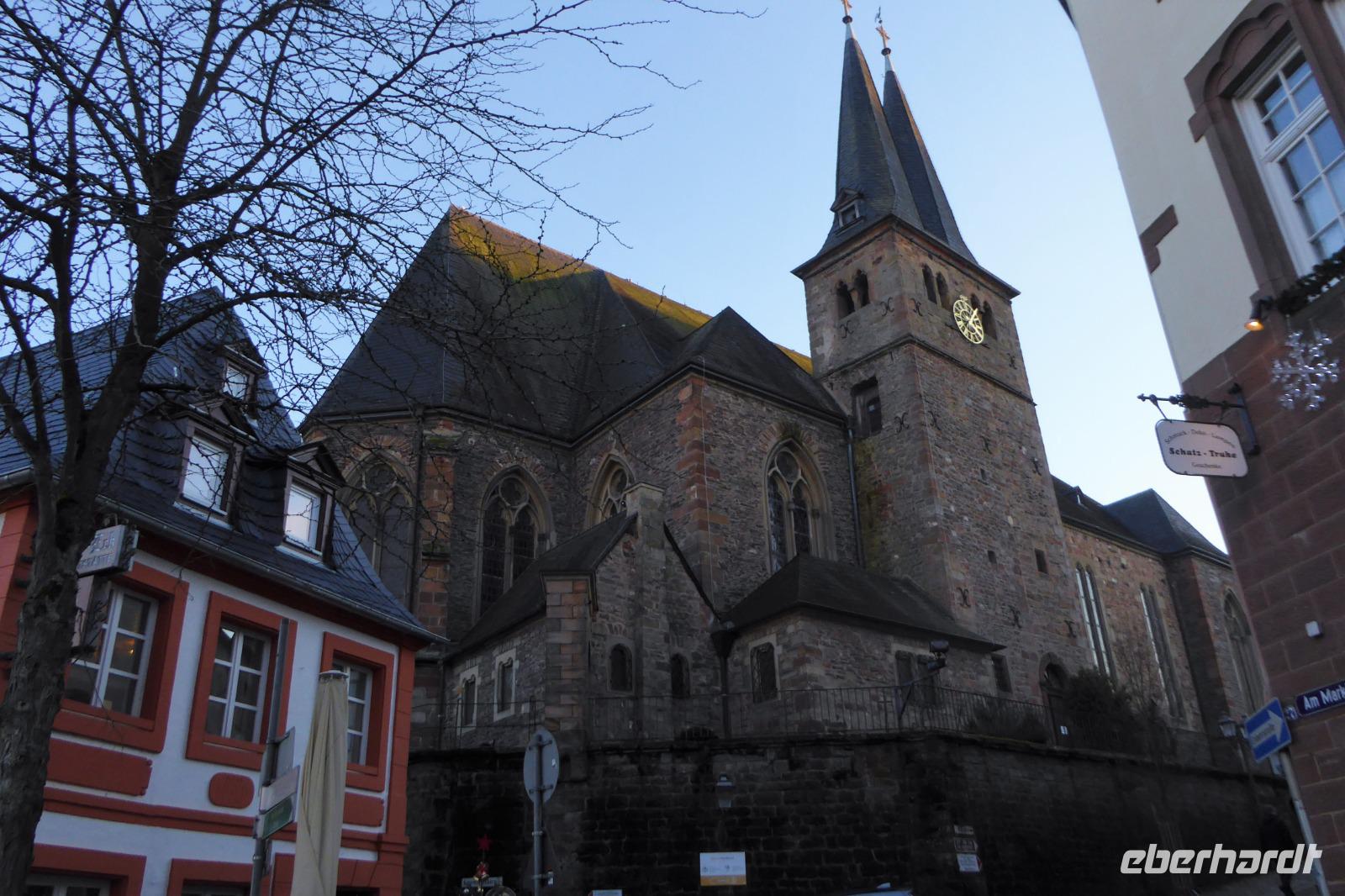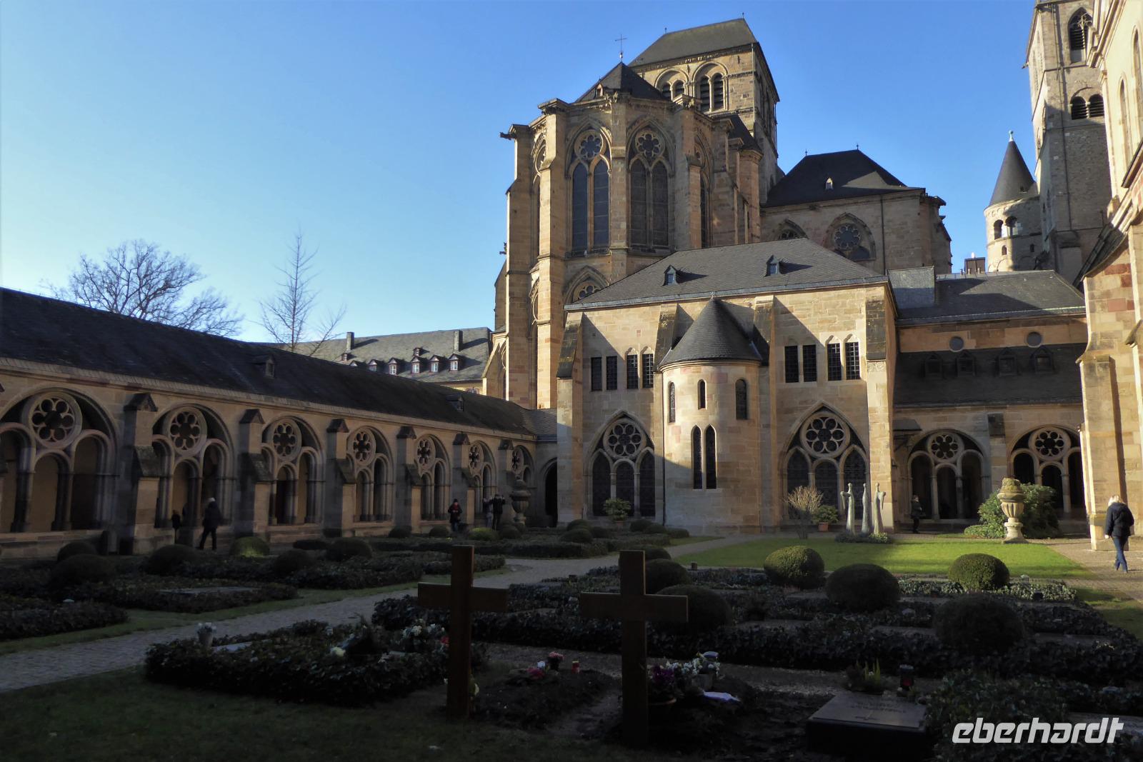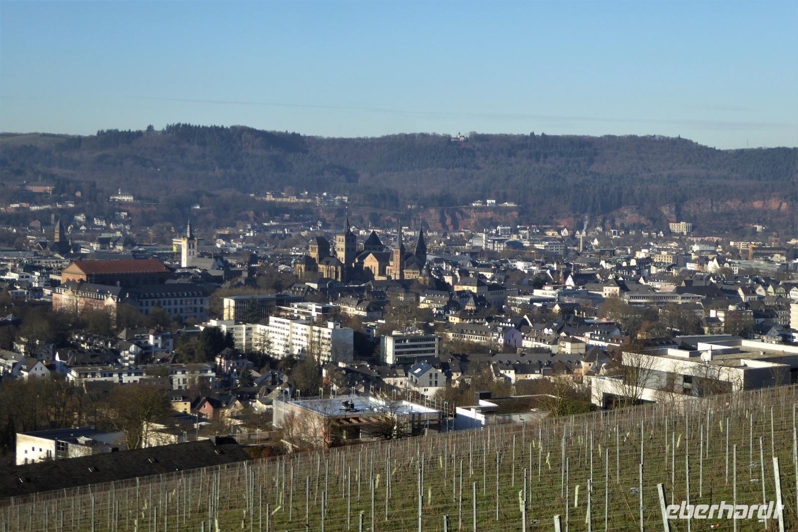 Über die A1 erreichten wir in einer guten Stunde den Rastplatz Moselblick. Die vermeintlich älteste Stadt Deutschlands, Trier, lag noch im dichten Morgennebel, der erst langsam einen Blick auf die Weinberge der Mosel gestattete, die sich bis an die Stadtgrenze Triers ausdehnen. Vorbei an der Römerbrücke, den Ausgrabungen an der Barbara Therme, der mittelalterlichen Stadtmauer, der Synagoge, den Resten der gewaltigen Konstantin Therme und dem Rheinischen Landesmuseum erreichten wir die imposante Porta Nigra. Sie war eines der fünf Stadttore in der fast sechseinhalb Kilometer langen, von fünfzig Türmen bewehrten römischen Stadtmauer. Gleich daneben steht seit Mai 2018 die Statue von Karl Marx. Das 5.50 Meter hohe Bronzestandbild des Künstlers Wu Weishan ist ein Geschenk der Volksrepublik China an die Stadt Trier zum zweihundertsten Geburtstag des deutschen Philosophen, Ökonomen, Gesellschaftstheoretikers und politischem Journalisten Karl Marx, der in der Brückenstraße 10 geboren wurde. Ein Stadtspaziergang führte uns zum Judenviertel, zum Hauptmarkt und zum Domfreihof. Vor dem Dom liegt der Domstein, um den sich teuflische Legenden ranken. Der Dom steht auf den Fundamenten des Palastes der Helena, der Mutter Konstantin des Großen. Sie war es auch, die den Heiligen Rock nach Trier brachte. Der Heilige Rock, im Trierer Dom aufbewahrt, ist eine Reliquie, die vermeintlich Fragmente der Tunika Jesu Christi enthält. Die nächste Wallfahrt soll im Jahre 2033 stattfinden, als ein lebendiges Zeichen des Glaubens. Im Inneren des gewaltigen Gebäudes zeigen sich die Spuren der Bautätigkeit durch die Jahrhunderte. Eindrucksvoll hängt die Schwalbennestorgel des Orgelbauers Johannes Klais aus Bonn von 1974 mit ihren 5602 Orgelpfeifen und einem Gewicht von über 30 Tonnen, im Schiff über den Häuptern der Gläubigen. Die wärmende Wintersonne lockte uns wieder ins Freie und wir spazierten durch die belebte Innenstadt zur Konstantinbasilika, der ursprünglich römischen Palastaula des 4. Jahrhunderts. Sie misst 71 x 32,6 Meter bei einer Höhe von 36 Metern und ist somit das größte erhaltene Bauwerk aus der Römerzeit. In ihrem Inneren hätte die Porta Nigra drei Mal Platz! Das daran angebaute Kurfürstliche Palais glänzte in seiner barocken Pracht in der Sonne.