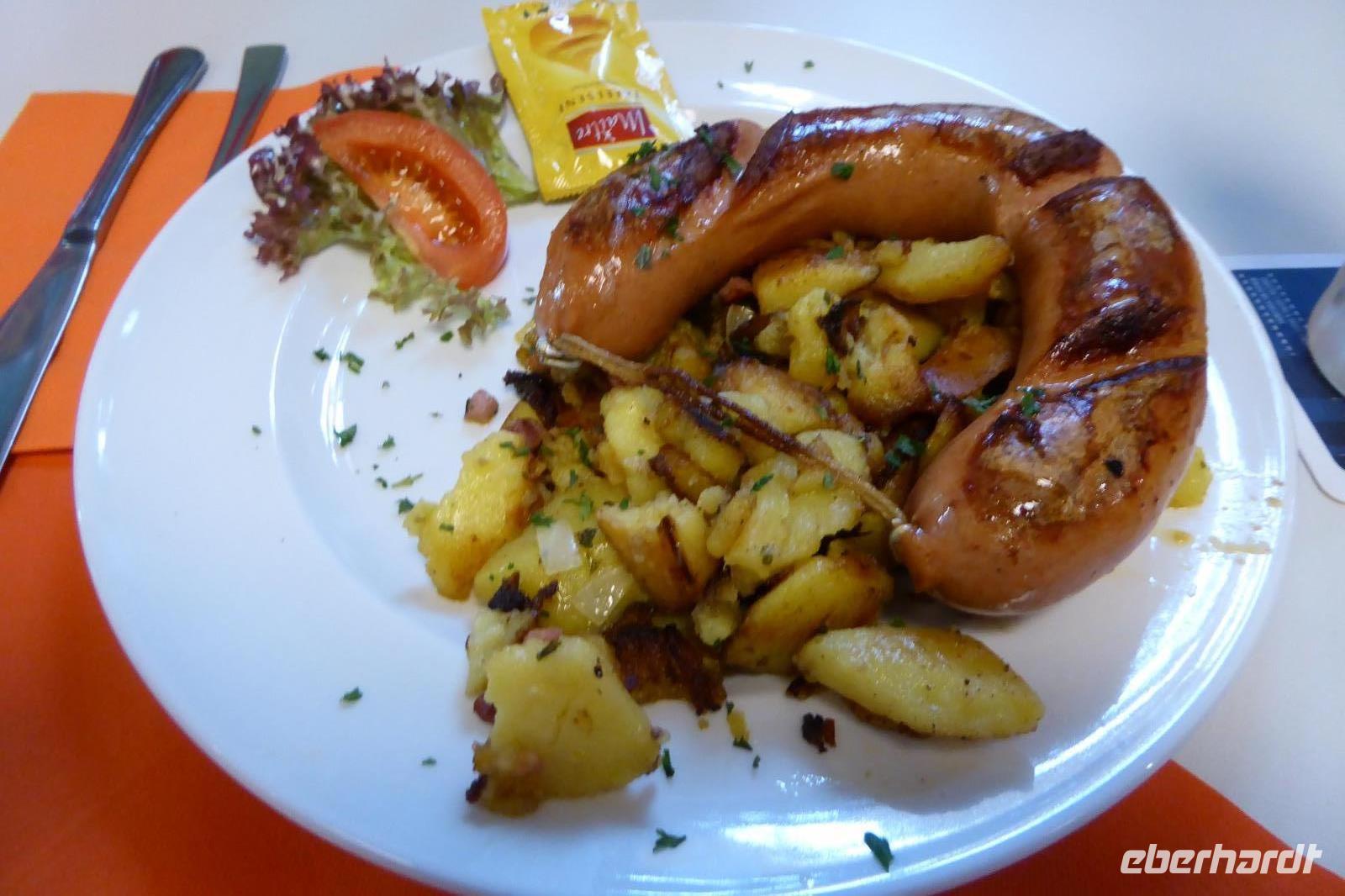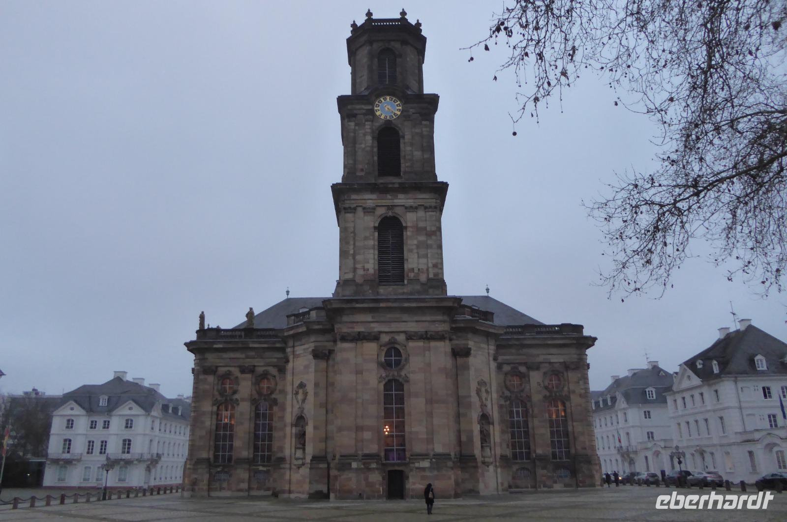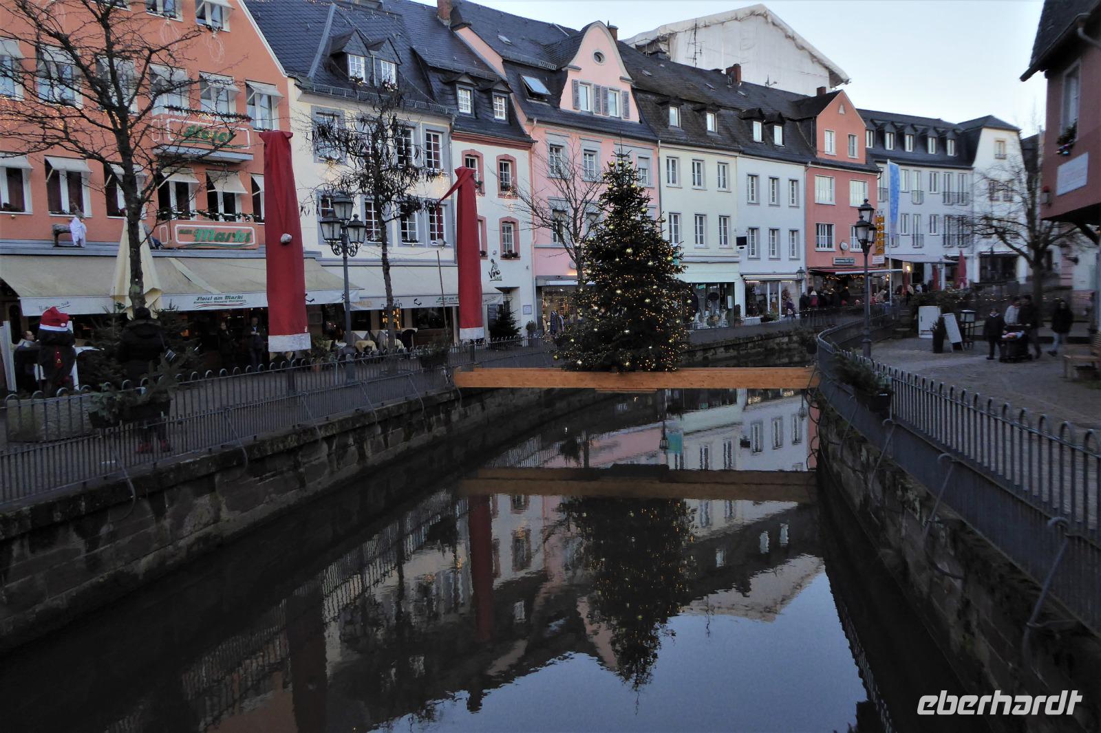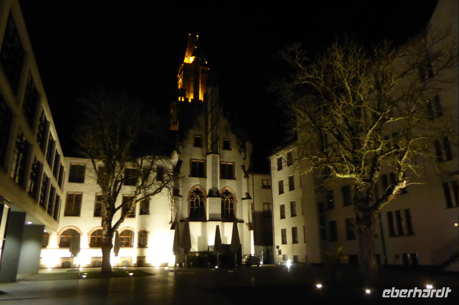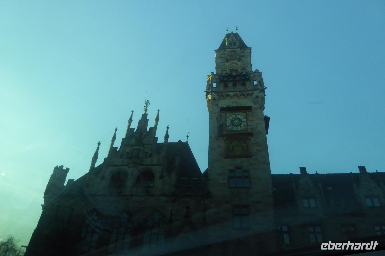 Kurz nach unserer Ankunft machten wir uns auf den Weg zu einem kulinarischen Stadtrundgang durch das nächtliche noch weihnachtlich erleuchtete Saarbrücken. Die Bewegung tat uns allen nach der langen Fahrt gut und die Temperaturen im unteren Plus Bereich waren nicht unangenehm. Bei unserem Spaziergang gab es viel über die wechselvolle Geschichte der Stadt an der Saar zu erzählen, die aufgrund ihres Reichtums an Bodenschätzen bei so vielen Staatsmännern Begehrlichkeiten weckte. Unsere erste Station war dann auch im Ratskeller, einem Traditionslokal im Kellergewölbe des in der Zeit Kaiser Wilhelm II gebauten Rathauses der Schwesterstadt Saarbrückens: St. Johann. Der Name der Stadt Saarbrücken kommt übrigens nicht von den Brücken über die Saar, sondern von der Burg, die hoch über der Saar auf einem Sandsteinfelsen thronte: "Sara Brocca": Brocken, Fels, in der Saar. Seit 1909 gibt es Saarbrücken, wie wir es heute kennen: erst in der Kaiserzeit wurden die beiden Städte vereint. Zur Hauptspeise und zum Dessert waren wir im Lokal Blini zu Gast und wurden freundlich bewirtet. Da die Temperaturen merklich in die Minusgrade sanken, hatte ich es schwer, noch jemand für die Pracht der Ludwigskirche zu begeistern. Am späten Abend erreichten wir wieder unser Hotel und sanken müde in die Betten.