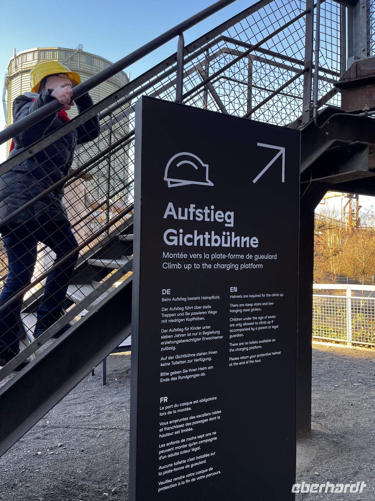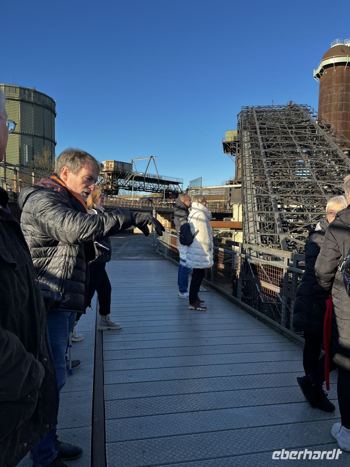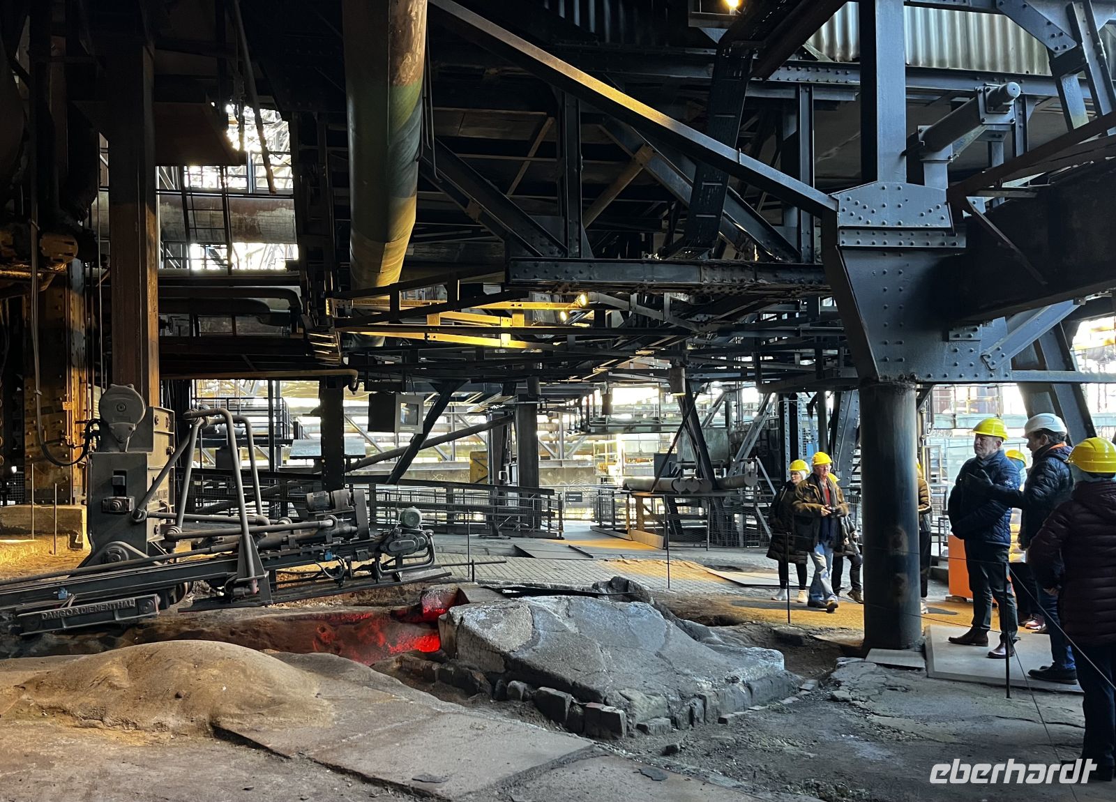 Nach einem umfangreichen Frühstück starten wir 9:30 entlang der Mosel zur Völklinger Hütte. Im Bus verteile ich die Saarlandcard. Unseren waschechten Saarländer Hüttenguide treffen wir pünktlich, und er bietet eine sehr gelungene Führung durch das Industriedenkmal an. Ein beeindruckendes Erlebnis, bei der Turmbesteigung gibt es dann sogar Helme! Super Aussicht über das gesamte Gelände, man ahnt, was für eine Wolke damals über der Gegend lag. Wer die Treppen nicht gehen kann/will, kann aber auch wieder zurückgehen und sich den kleinen Film anschauen. WC und kleines (gutes) Bistro sind im Haus, im Anschluss an die Führung machen wir dort eine kleine Mittagspause.