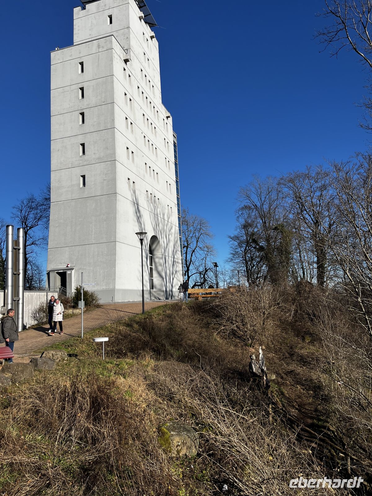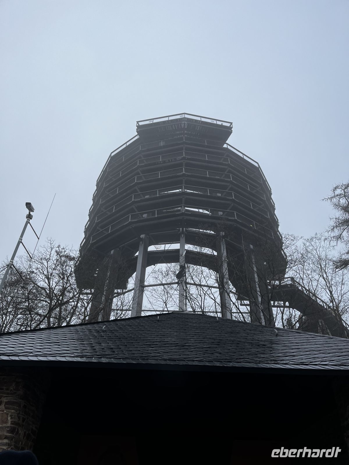 14 Uhr geht es weiter Richtung Tholey zum Schaumbergturm, während der Fahrt genießen wir die schöne Hügellandschaft. Der Fußweg vom Busparkplatz zum Turm beträgt noch ca. 50m bergauf. Vom dortigen Aussichtspunkt ist ein herrlicher Ausblick bis in die Vogesen möglich, und das Wetter meint es gut mit uns! Die Museen und der Turm selbst sind geschlossen, aber wir nutzen das Drehkreuz (1€ ) und besteigen den Turm doch noch (es gibt auch einen Fahrstuhl) Diese Aussicht von etwa 560m Höhe lohnt sich auf jeden Fall! Wieder unten besuchen wir das "höchstgelegene Restaurant im Saarland"; die im urigen Alpenstil gehaltene Location auf der Plattform ist geöffnet und die dortige Toilette können wir nutzen. Im Bus gibt es dann noch ein paar Infos zum Turm, der ja sehr eng mit der deutsch-französischen Geschichte verbunden ist.