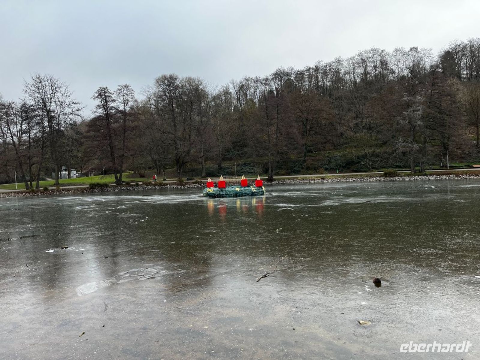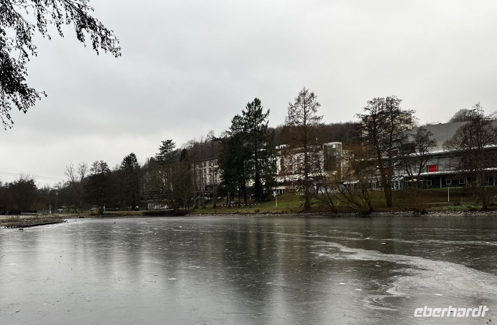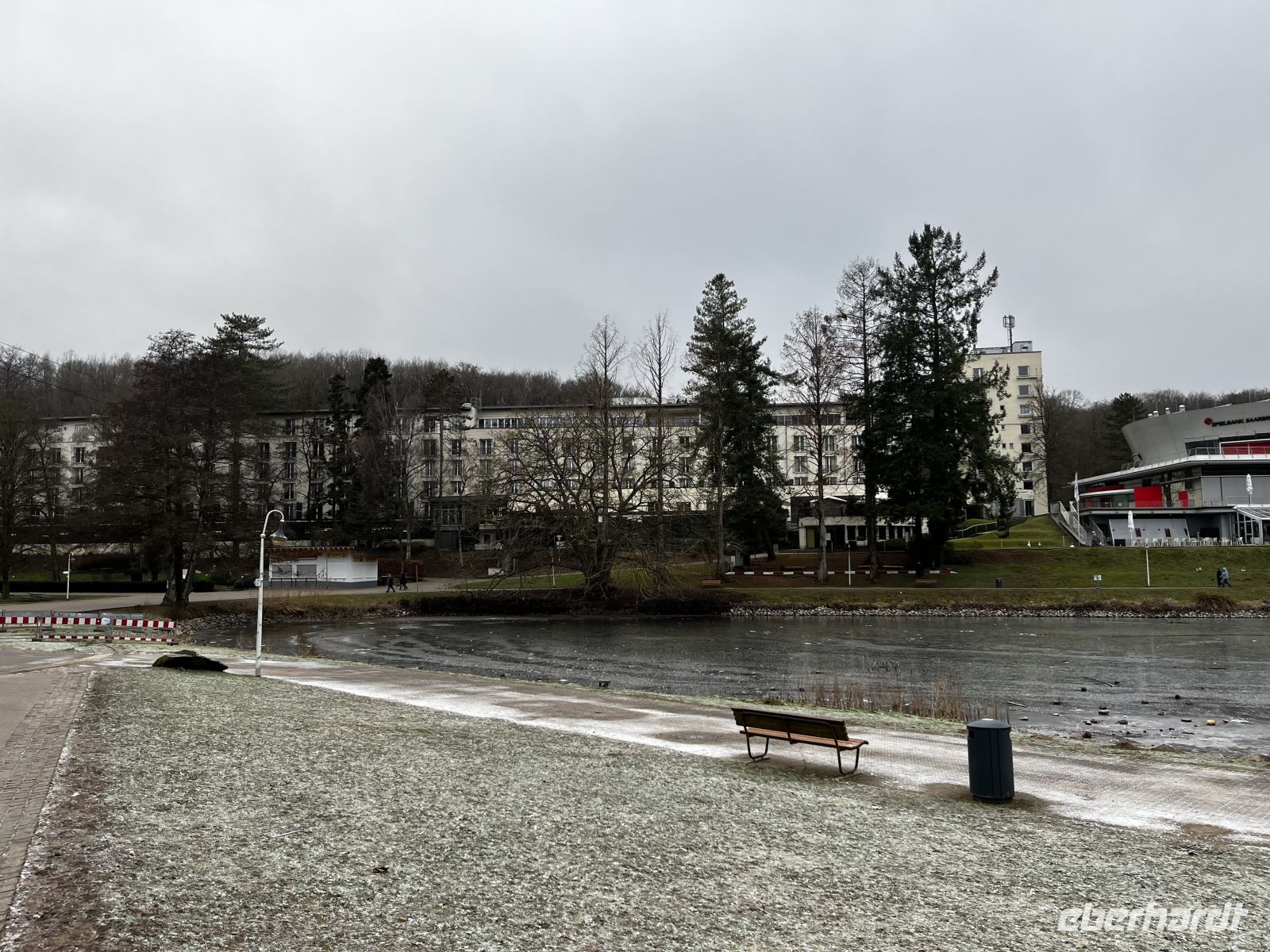 Von der doch recht langen Reise sind die meisten etwas müde. Einige Gäste kommen noch in den kleinen extra Salon auf einen von mir angebotenen Begrüßungsdrink, andere gehen doch schon auf ihre Zimmer. Diese sind sehr geräumig, sauber, mit viel Stoff und üppiger Dekoration. Die eine Seite hat Blick auf den See hinter dem Hotel, welcher tatsächlich fast zugefroren ist. Das Hotel liegt etwas außerhalb vom Zentrum Saarbrückens, man kann aber mit dem Linienbus fahren, wenn man individuell in die Stadt möchte.