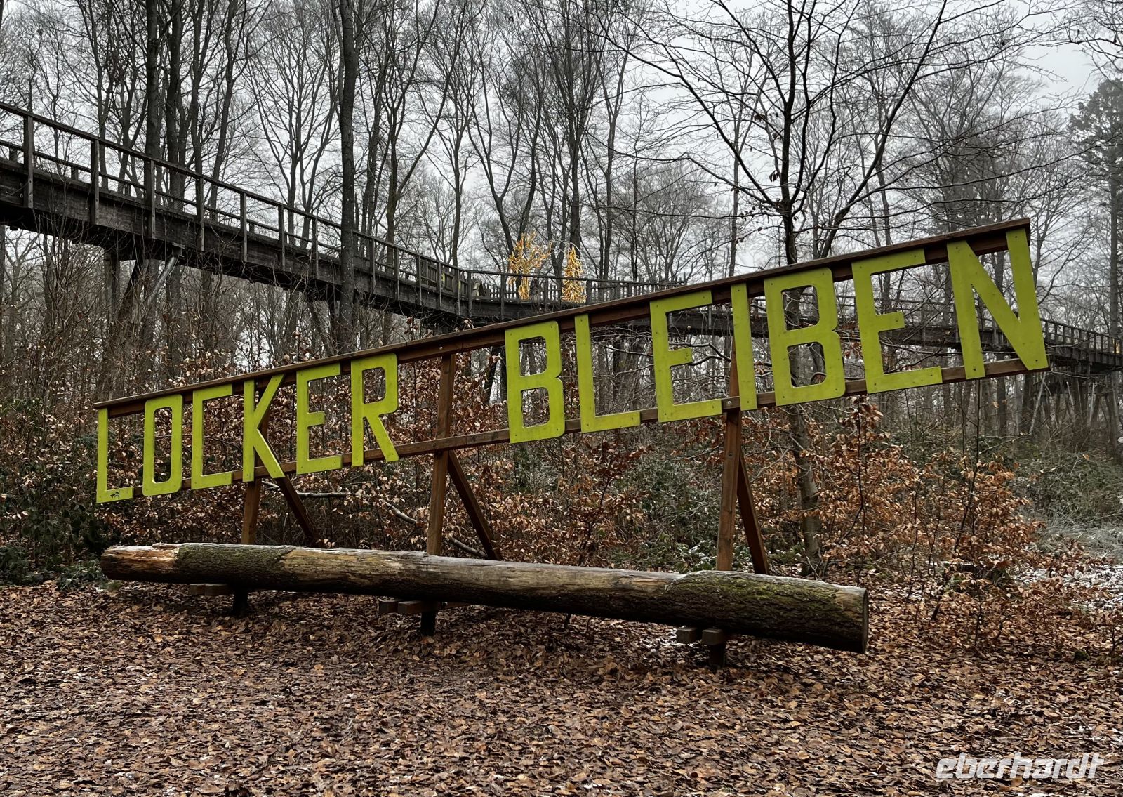 Als nach etwa 45 min alle wieder zurück sind, gibt es Würstchen im Bus, ein lustiges Silvestergedicht von mir, und als WOW einen kleinen (am Vortag mitgebrachten) Mirabellenbrand oder -likör von der Destillerie Melanie. Das kam als Überraschung super an! Das alte Jahr mit Wunderkerzen zu verabschieden müssen wir leider canceln, weil wir wegen des Regens lieber im Bus bleiben. Das Motto für das neue Jahr haben wir aber schon auf dem Weg zur Saarschleife gedunden: "Locker bleiben" ;-)