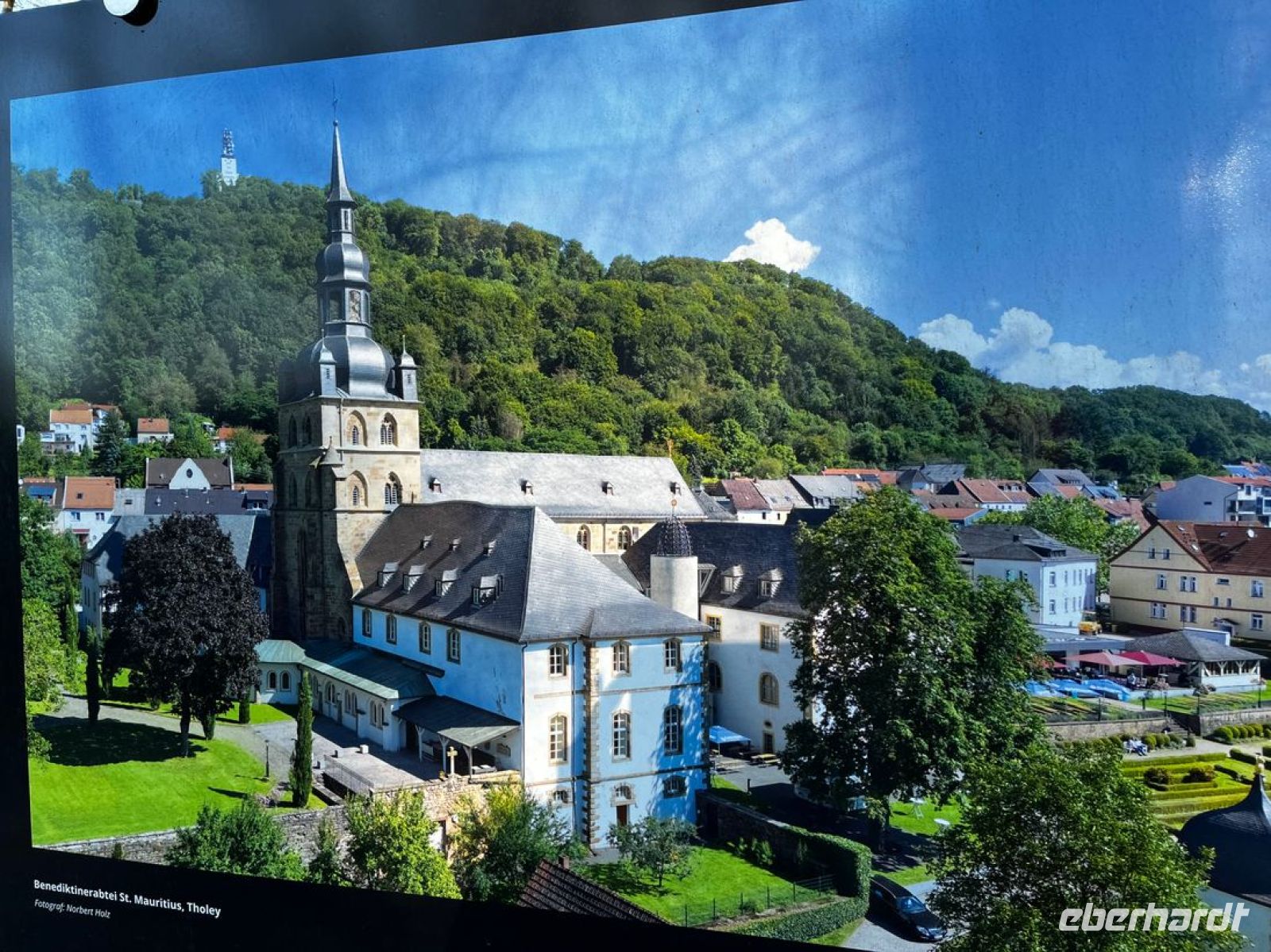 Jetzt geht es ins Benediktiner-Kloster Tholey mit den berühmten Glasfenstern von Gerhard Richter. Der Parkplatz ist ca. 150m vom Kloster entfernt. Ich erläutere den Gästen vorab im Bus schon einiges zur Abtei, um den Blick auf die wichtigsten Details in dem Gebäude zu lenken. Ein Gespräch mit einem Bruder im Kloster selbst offenbart dann noch einiges über die aktuelle Situation des bis heute aktiven Klosterlebens. Sehr beeindruckend! Eine geöffnete Toilette befindet sich auf dem Weg zwischen P und Kloster.