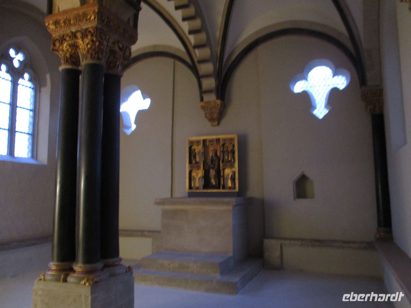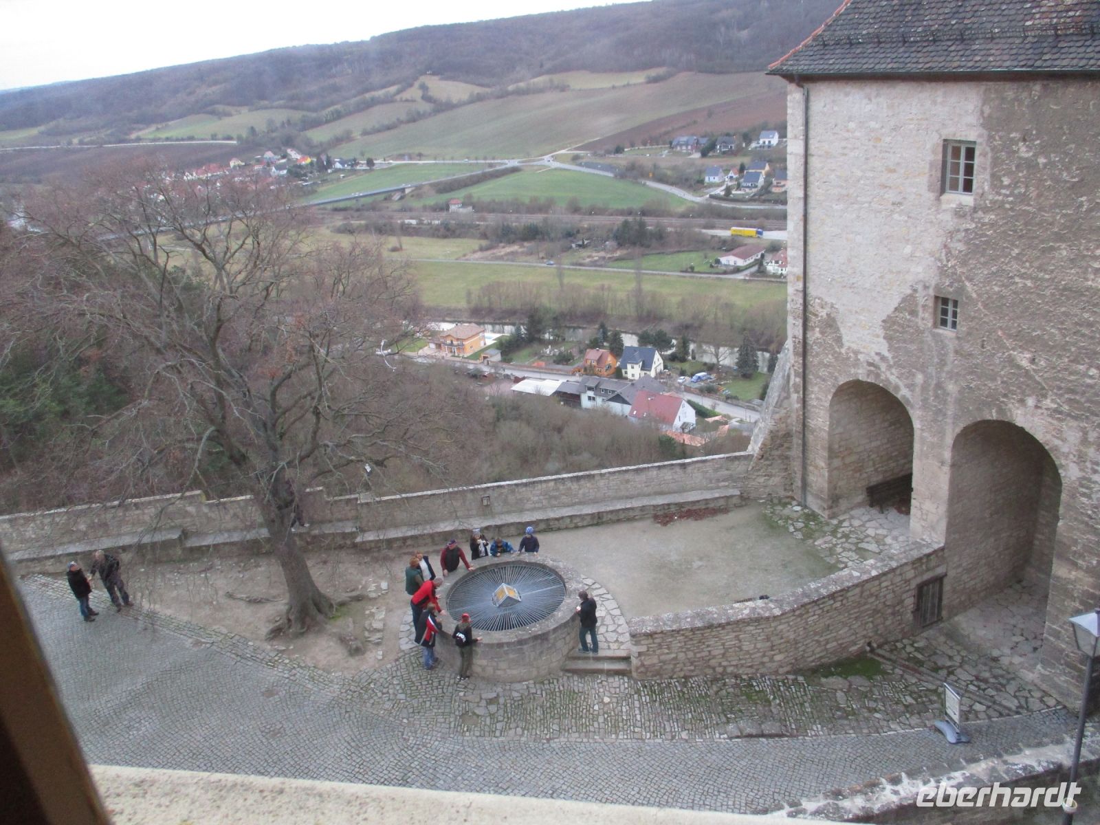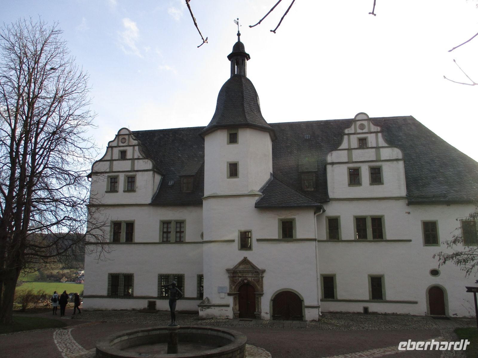 Zur Mittagszeit machen wir es uns am Würstchenstand mit Thüringer Bratwurst gemütlich.Es ist tatsächlich richtig"urig", da dort auch ein Männerchor das neue Jahr feiert und uns gut unterhält.Frisch gestärkt fahren wir den Berg hinauf zum Schloß Neuenburg.Es ist die größere Schwester der Wartburg und sehr beeindruckend.Während der Führung durch die verschiedenen Räume erfahren wir skurrile Geschichten und