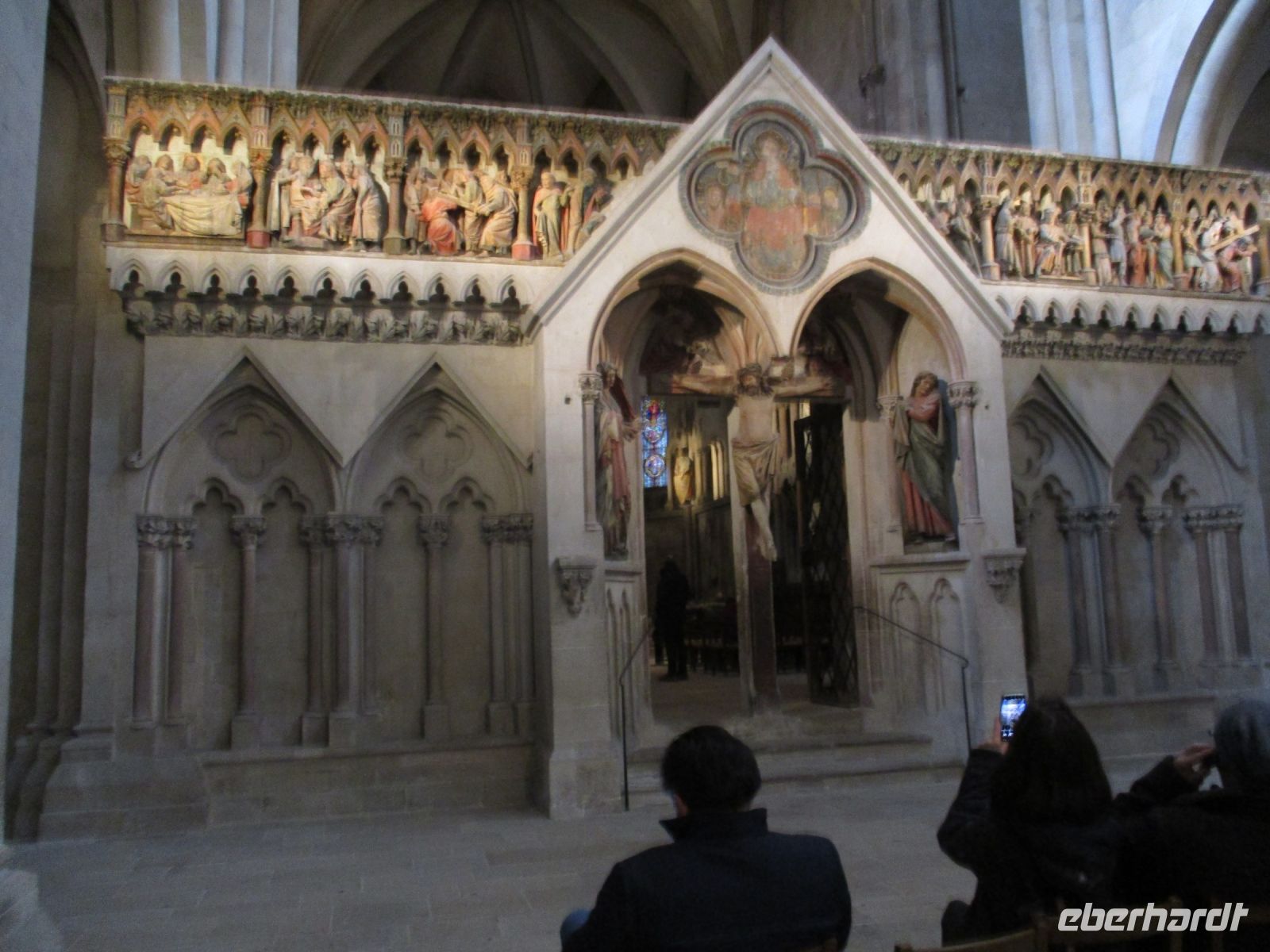 Nachdem wir uns am reichhaltigen Frühstücksbüffet gestärkt haben, gilt unser Interesse der Domstadt Naumburg, die seit 2018 zum Weltkulturerbe zählt.Unser Stadtführer weiß sehr interessant über die Entstehung der beiden verschiedenen Stadtteile und historische Hintergründe zu erzählen. Anschließend erfreut uns eine Führung durch den Dom mit seinen bekannten Stifterfiguren- besonders Ekkehardt und Uta begeistern immer wieder- und den prächtigen Glasfenstern. Die anschließende Freizeit nutzen wir für die,am Silvestertag nicht ganz einfache Suche nach einer geöffneten Gaststätte.In einem gemütlichen Caffe finden wir uns schließlich bei Eis oder Torte wieder. Auch, die Tipps unseres Stadtführers nutzend, erkunden wir die historische Altstadt auf individuellen Wegen weiter.Am Kloster Schulpforta vorbei geht es weiter nach Bad Kösen .