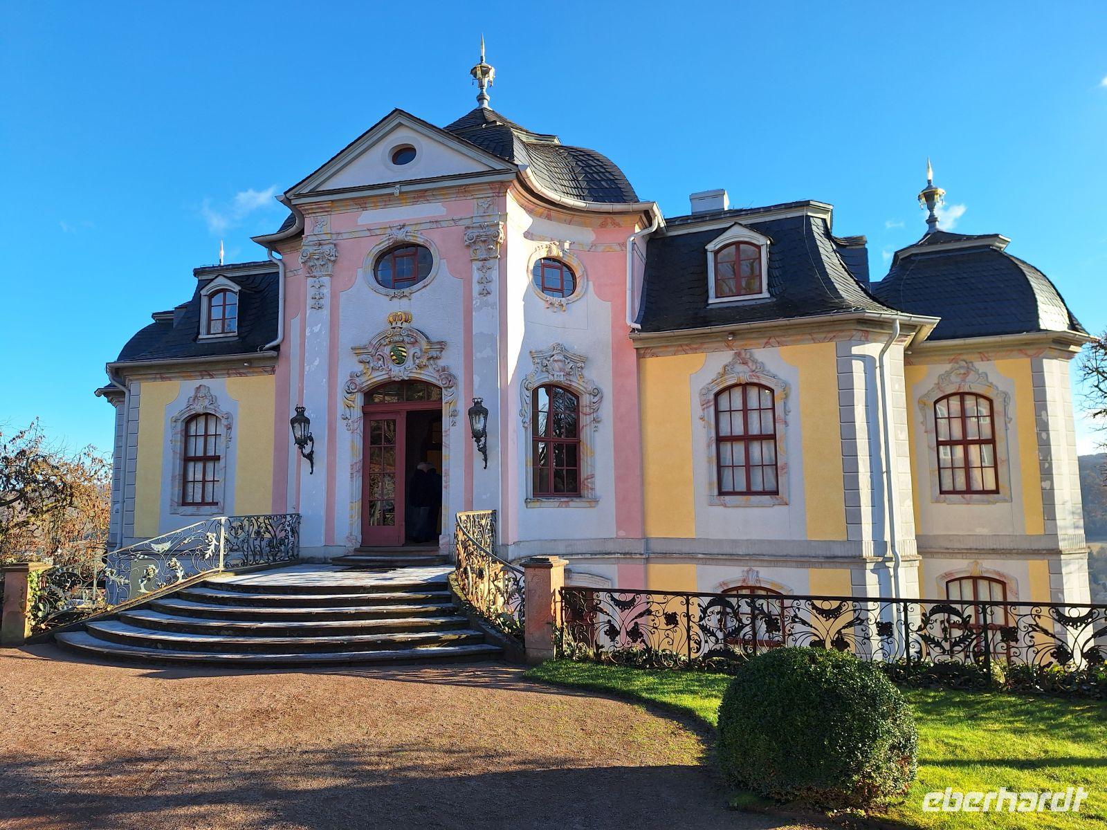 Nach Begrüßung aller Eberhardt Travel Reisegäste ging es bei Schneegestöber über Jena weiter entlang des Saaletals Richtung Dornfelder Schlösser unserem ersten Besichtigungspunkt.