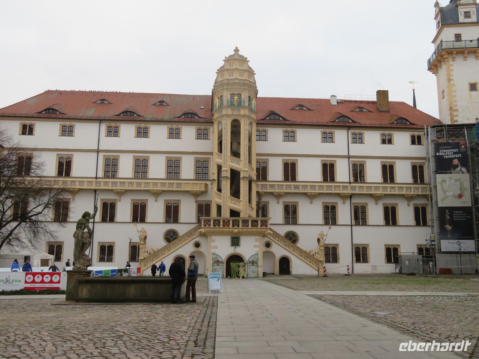 Unser erster Treffpunkt am heutigen Morgen 09:00 Uhr ist der Flughafen Dresden, wo Jörg, Jens und ich unsere ersten Stammkunden begrüßen. Da unser behindertengerechter Reisebus einige Tage vorab in einen Unfall verwickelt war, müssen wir kurzfristig auf einen Flixbus umsteigen, der allerdings mit einer Hebebühne ausgestattet ist. Somit haben wir die Gelegenheit, all unsere Rollstuhlfahrer in das Innere des Busses zu bringen. Nachdem Gepäck verstaut und der Rollstuhl verankert ist, setzt Jens den Bus in Bewegung. Unser nächstes Ziel ist der Flughafen Leipzig, den die restliche Gruppe als Zustieg gewählt hatte. Auch hier ist die Begrüßung herzlich. Nachdem alle Gäste zugestiegen sind, beginnt unsere "Fahrt ins Grüne" dann endgültig. Wir nehmen das Ziel Torgau ins Vesier. Hier sind wir zu einer Stadtführung angemeldet. Die Stadtführerin treffen wir an der Touristinformation, die im Rathaus untergebracht ist. Der Rundgang führt uns zunächst an den Markt, der z.Z. die Heimat des Weihnachtsmarktes ist. Wir bestaunen den hiesigen Brunnen und spazieren weiter vorbei an der Kirche ohne Glockenturm bis zum Schloss und lauschen den Geschichten zu Torgau und der Frau Luther. Im Schlosshof angekommen, erfahren wir die Tradition zu längst vergangenen Festen und Hochzeiten hier. Zum Schluss der Führung besuchen wir noch die Schlosskapelle - das ist auch ganz günstig, um uns ein wenig von den kalten Dezembertemperaturen aufzuwärmen. Wir verabschieden uns von unserem Guide und rollen zurück zum Weihnachtsmarkt, wo wir uns bei Bratwurst stärken und beim Glühwein erwärmen. Da die Kälte dennoch ziemlich anzieht, entscheiden wir, zum Bus zurück zu kehren und in Richtung Traumhaus in Herzberg weiter zu reisen. Die kleine Gemeinde, ca. 26 Kilometer von Torgau entfernt, ist sehr klein und wirkte in den frühen Abendstunden schon sehr verlassen. Am Ende der Stadt finden wir dann endlich das Traumhaus, unser Hotel für die kommenden zwei Nächte und checken ein. Das Haus ist komplett barrierfrei und sehr gut auf die Anforderungen unserer Gäster mit Rollstuhl vorbereitet. Das Abendessen nehmen wir im Restaurant Blauhaus ein. Am Abend rücken wir dann noch die Tische zusammen um zusammen in Erinnerungen zu schwelgen, die letzte Reisesaison auszuwerten als auch zukünftige Reiseideen zu sammeln.