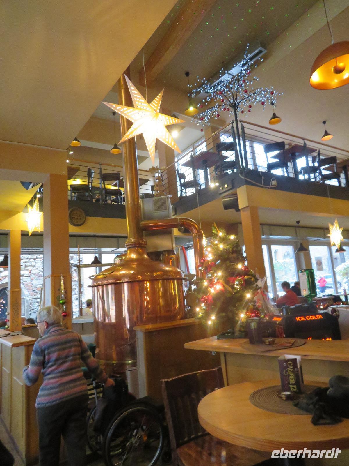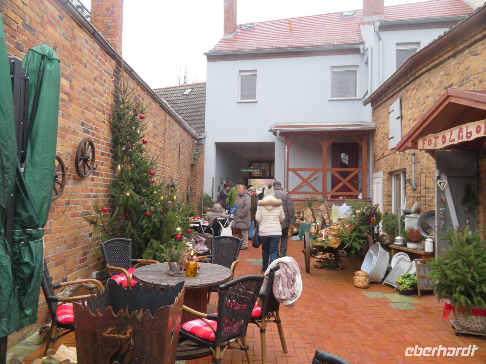 Zum Früshstück treffen wir uns wieder im Brauhaus und danach setzt der Bus sich dann auch in Bewegung in Richtung Spreewald. Unsere Fahrt durch das "weihnachtlich geschmückte" Herzberg ist schon sehr spannend - viele Münder stehen offen während sie die neue Flixbuslinie Herzberg - London bestaunen. Wir lassen das kleine Städtchen hinter uns. Jörg, unser Reiseleiter hat eine geniale Idee und so halten wir an Schloss Lilliput, ein Geheimtipp der seinesgleichen sucht. Ein etwas sehr verrückter Mensch hat sein Haus, sein gesamtes Grundstück inklusive Umzäunung mit Tellern, Tassen, Nägel und diversen anderen Materialien bemalt, beschmückt, gestaltet. Natürlich klicken hier unsere Fotoapperate wie verrückt. Danach fahren wir weiter durch die stillen, kleinen Dörfer Brandenburgs bis wir zu unserem Ziel, Lübbenau, näher kommen. Am Parkplatz angekommen, wird sich erst einmal an einem Glas Hochprozentigen erwärmt. Wir rollen und spazieren gemeinsam weiter zur Lübbenauer Hafenweihnacht, wo sich Holzbuden mit Würstchen, Glühwein, Fisch- und Fettbemmen als auch Handwerkskunst befinden. Mit einigen Gästen verbringen wir eine lustige Zeit in einem der Hinterhöfe und haben viel zu lachen. Andere Gäste wiederum wärmen sich am offenen Feuer mit einem Glas Glühwein. Am Nachmittag steht dann unser letzter Programmpunkt für heute auf dem Plan: wir besuchen die Spreewood Destillers, eine Destillerie, die vor rund einem Jahr von drei jungen Herren aus dem Berliner Raum übernommen wurde. Die nette Dame erklärt uns, wie die Anlage funktioniert, welche gesetztlichen Bestimmungen beachtet werden müssen. Das Fasslager können leider nur die "Fußgänger" besichtigen. Zwischendurch erhalten wir immer wieder ein kleines Pröbchen von den Likören.
