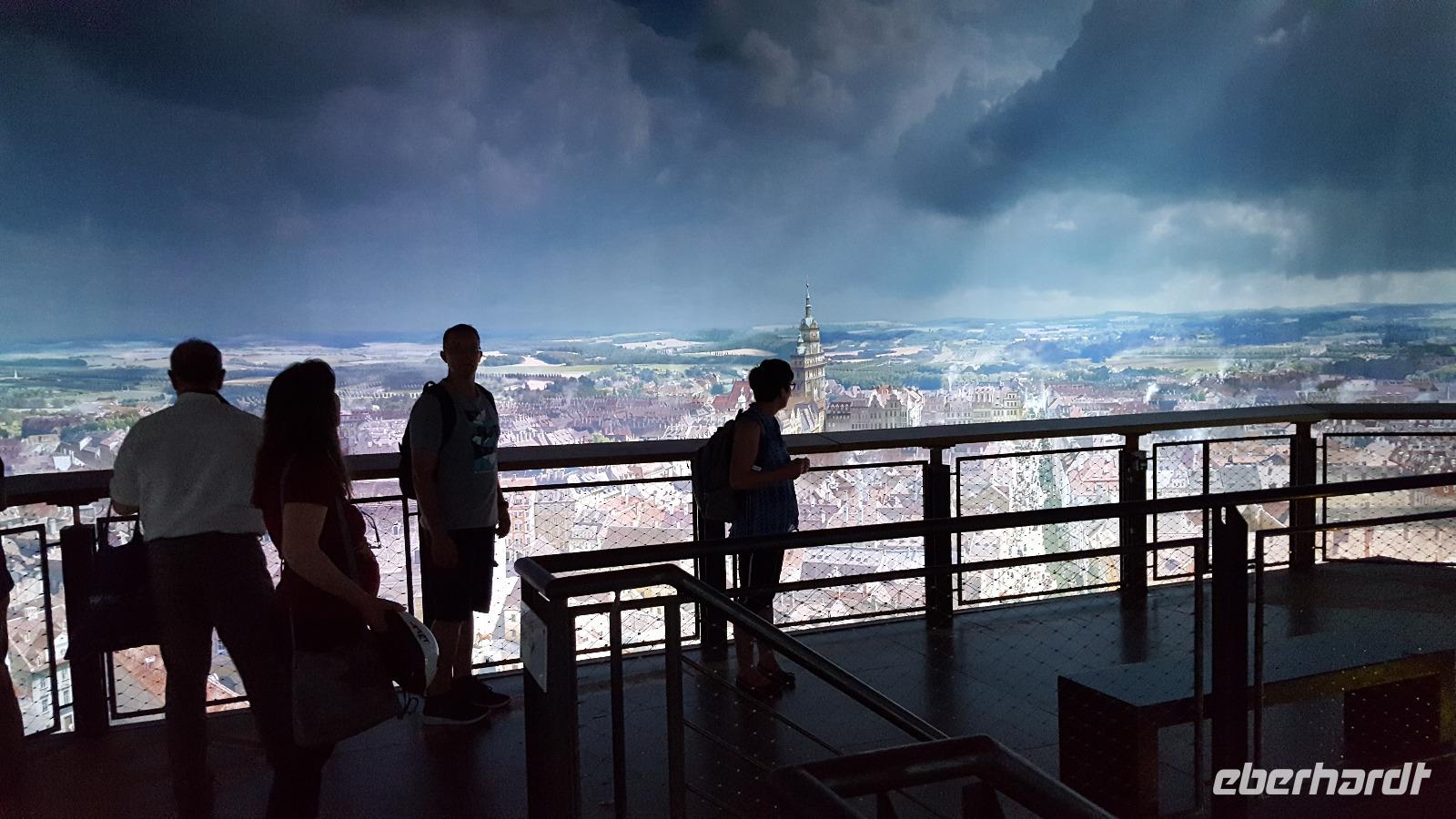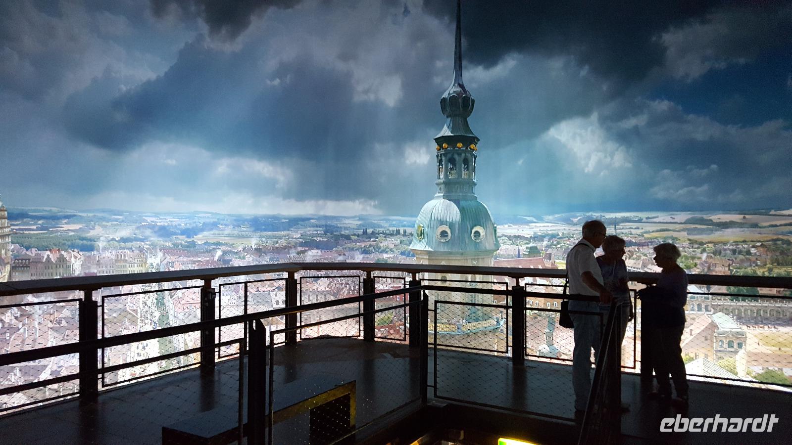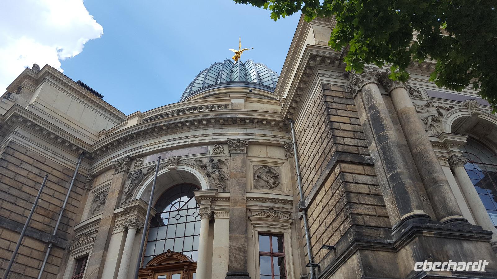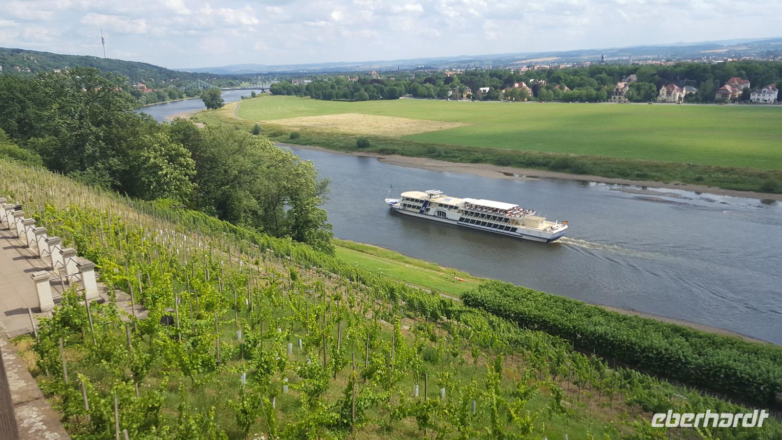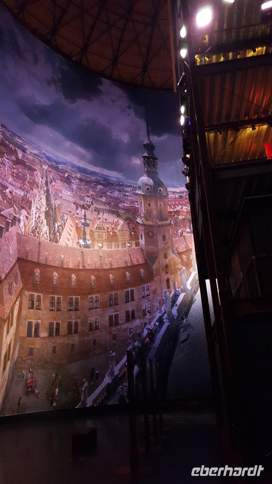 Der Samstag steht für eigene Erkundungen, zum Shoppen, zum Besuch der zahlreichen Museen und Kunstsammlungen in Dresden zur Verfügung - oder zur Teilnahme an einem geführten Fahrradausflug ins Dresdner Elbtal. Einige Gäste unserer Gruppe entscheiden sich sogar für den Besuch einer Vorstellung in der Semperoper. Wir haben Glück und bekommen die letzten verfügbaren Karten für Mozarts Zauberflöte! Ein Großteil unserer Reisegruppe hat sich aber für die Radtour entschieden. Gemeinsam mit Eberhardt-Reisebegleiterin Kristin geht es zum Radverleih direkt in der Dresdner Altstadt, wo die Fahrräder und E-Bikes bereits vorbestellt sind. Für jeden wird das Fahrrad individuell eingestellt und wir starten gegen 10 Uhr per Rad in Richtung Süden. Wir radeln aus der Altstadt heraus zu den weitläufigen und schattigen Grünanlagen des Großen Gartens. Wir legen einen Stopp am Carolaschlösschen ein, einem beliebten Ausflugslokal mit schöner Art Deco Einrichtung und gemütlichem Biergarten. Hier sehen wir auch, wie ein Minizug der Dresdner Parkeisenbahn in den kleinen Bahnhof einfährt. Vom Großen Garten geht es weiter zum Panometer Dresden, wo einige eine Pause im Grünen machen und die anderen das beeindruckende Panoramabild Yadegar Asisis bestaunen. Zum Thema "Dresden im Barock" bekommen wir einen realistischen Eindruck vom damaligen Stadtbild und fühlen uns fast in die Zeit Augusts des Starken zurückversetzt! Das sollte man sich nicht entgehen lassen!