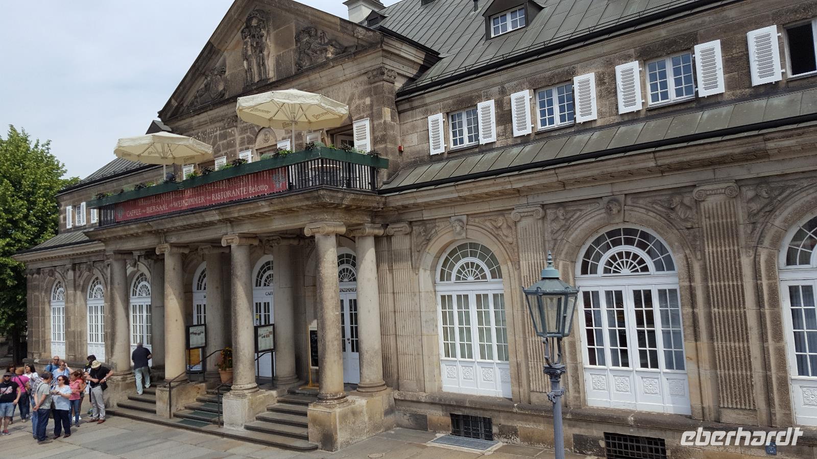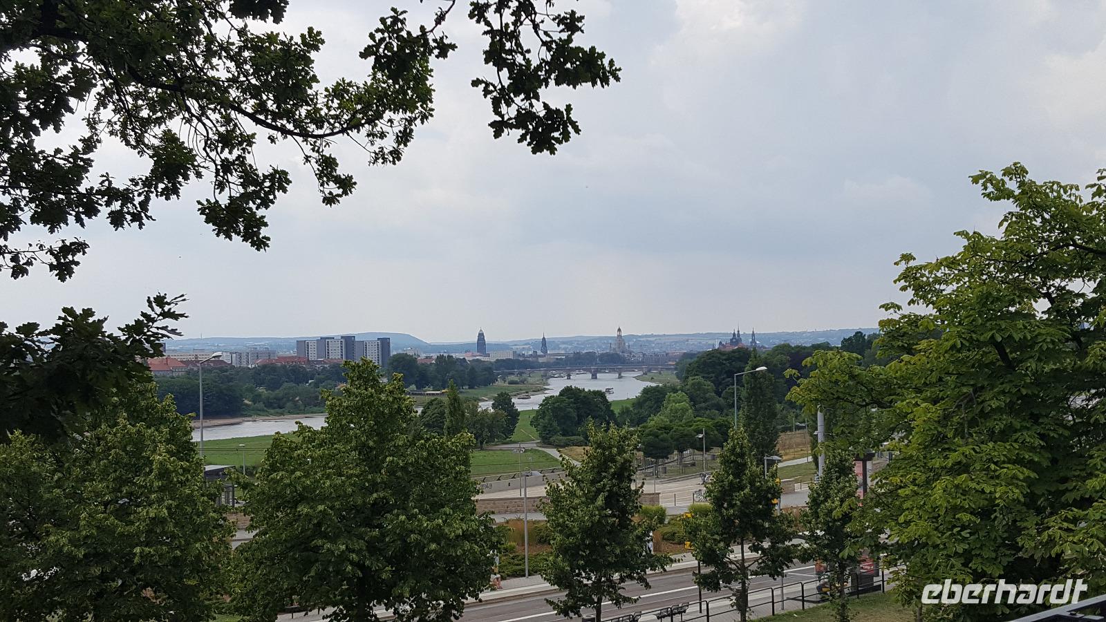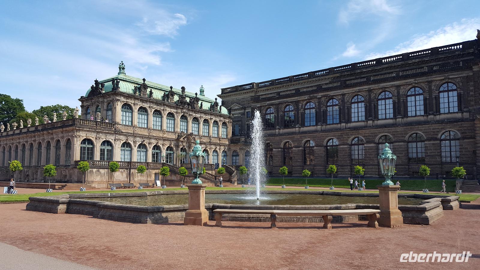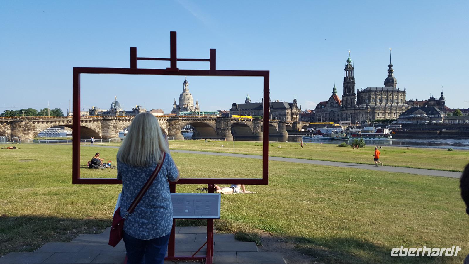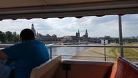 Da wir bei dieser Singlereise abends immer lange gemeinsam aus sind, starten wir die Tagesprogramme erst zwischen 9 Uhr und 9.30 Uhr. Kristin holt uns nach dem Frühstück am Ibis-Hotel ab und wir gehen gemeinsam in Richtung Altstadt, wo wir die anderen Gäste unserer Reisegruppe treffen. Zusammen spazieren wir zum Dresdner Zwinger, wo heute unsere Stadtbesichtigungstour beginnt. Das Wetter könnte schöner nicht sein und wir starten mit einer Führung im bekannten Dresdner Zwinger. Unser örtlicher Fremdenführer Bart führt uns in den Innengarten des Zwingers und erzählt uns allerlei Wissenswertes zur Geschichte dieses barocken Bauwerkes, zu den Festlichkeiten in der Zeit August des Starken und zu Zerstörung und Wiederaufbau nach dem zweiten Weltkrieg. Zwischendurch hören wir auch das Glockenspiel der Meißner Porzellanglöckchen im barock-verzierten Glockentor des Zwingers. Nach diesem Ausflug in die Geschichte besteigen wir den Hop on - hopp off Bus und beginnen unsere Erlebnis-Stadtrundfahrt in Dresden. Zunächst fahren wir vom Zwinger, vorbei an Yenidze, Sächsischem Landtag und Semperoper durch die historische Altstadt mit Taschenbergpalais, Katholischer Hofkirche, Dresdner Schloss und Brühlscher Terrasse. Dann geht es im Bus aus der Innenstadt heraus zum Großen Garten, der größten Parkanlage und grünen Lunge der Stadt. An der Gläsernen VW Manufaktur steigen wir aus (Hop off) und spazieren gemeinsam vorbei am Wochenmarkt und dem Dynamo-Stadion ein Stück durch den Großen Garten bis zum Palais und dem Palaisteich. Im Schatten der Alleen lässt es sich hier gut aushalten und wir genießen die Blicke in die grüne Umgebung mit Blumenbeeten, Springbrunnen, Skulpturen und natürlich der niedlichen Parkeisenbahn, die mit hellem Gebimmel ab und an zu hören und zu sehen ist. An der nächsten Haltestelle steigen wir wieder in den nächsten Bus (Hop on) und fahren ein Stück weiter in Richtung Elbe. Im Bus erfahren wir immer wieder Wissenswertes zu den Sehenswürdigkeiten und Gebäuden, an denen wir vorbei kommen. Vorbei an der Universitätsklinik und mit Blick auf die drei Elbschlösser am anderen Ufer der Elbe erreichen wir den grünen Stadtteil Dresden Blasewitz im Süden der Stadt, der mit sehenswerten Gründerzeit-Villen der wohlhabenden Bevölkerung aufwartet. Hier ist unser nächster Ausstiegspunkt am Schillerplatz. Es ist Mittagszeit und so kehren wir in einen der bekanntesten und ältesten der Dresdner Biergärten ein, den Schillergarten. Unter großen Bäumen und Sonnenschirmen sitzen wir draußen mit direktem Blick auf das berühmte Blaue Wunder - die Loschwitzer Brücke über die Elbe. Hier soll einst auch der deutsche Schriftsteller Friedrich Schiller geweilt haben! Nach der Mittagspause bei gutem Essen und kühlen Getränken spazieren wir gemeinsam über das Blaue Wunder zum Körnerplatz und zur nächsten Haltestelle unserer Stadtrundfahrt. Mit dem Bus geht es weiter aus dem Elbtal durch den Loschwitzer Grund nach oben in den grünen Stadtteil Weißer Hirsch, der direkt an das große Waldgebiet der Dresdner Heide grenzt. Entlang der Bautzner Landstraße geht es stadteinwärts. Unser nächster Ausstiegspunkt sind die Dresdner Elbschlösser, die wir bereits von unten und der anderen Elbseite bewundert haben. Wir spazieren zum mittleren der drei Schlösser, dem Lingner-Schloss. Es wurde um 1850 als Villa Stockhausen erbaut und erhielt im Volksmund den Namen Lingner-Schloss nach seinem zwischenzeitlichen Besitzer. Lingner hatte einst das Odol-Mundwasser erfunden und war so zu Reichtum gekommen, welchen er im Lingner-Schloss und als großzügiger Stifter des Dresdner Hygiene-Museums auch der Stadt zu Gute kommen ließ. Nach seinem Tod vermachte er das Lingner-Schloss der Stadt Dresden, unter der Auflage, dass der Park und das Schloss der Öffentlichkeit zugänglich bleiben und dass eine Gastronomie mit erschwinglichen Preisen eingerichtet werden sollte. Heute zählen die Lingner-Terrassen zu den schönsten Ausflugslokalen und Biergärten Dresdens, denn man genießt einen fantastischen Blick über das Elbtal und die Stadt. Was kann es im Sommer schöneres geben, als bei einem Kaffee oder Bier draußen zu sitzen, den Ausblick zu genießen, die Elbe-Raddampfer unter sich tuten zu hören und mit netten Menschen unterwegs zu sein?