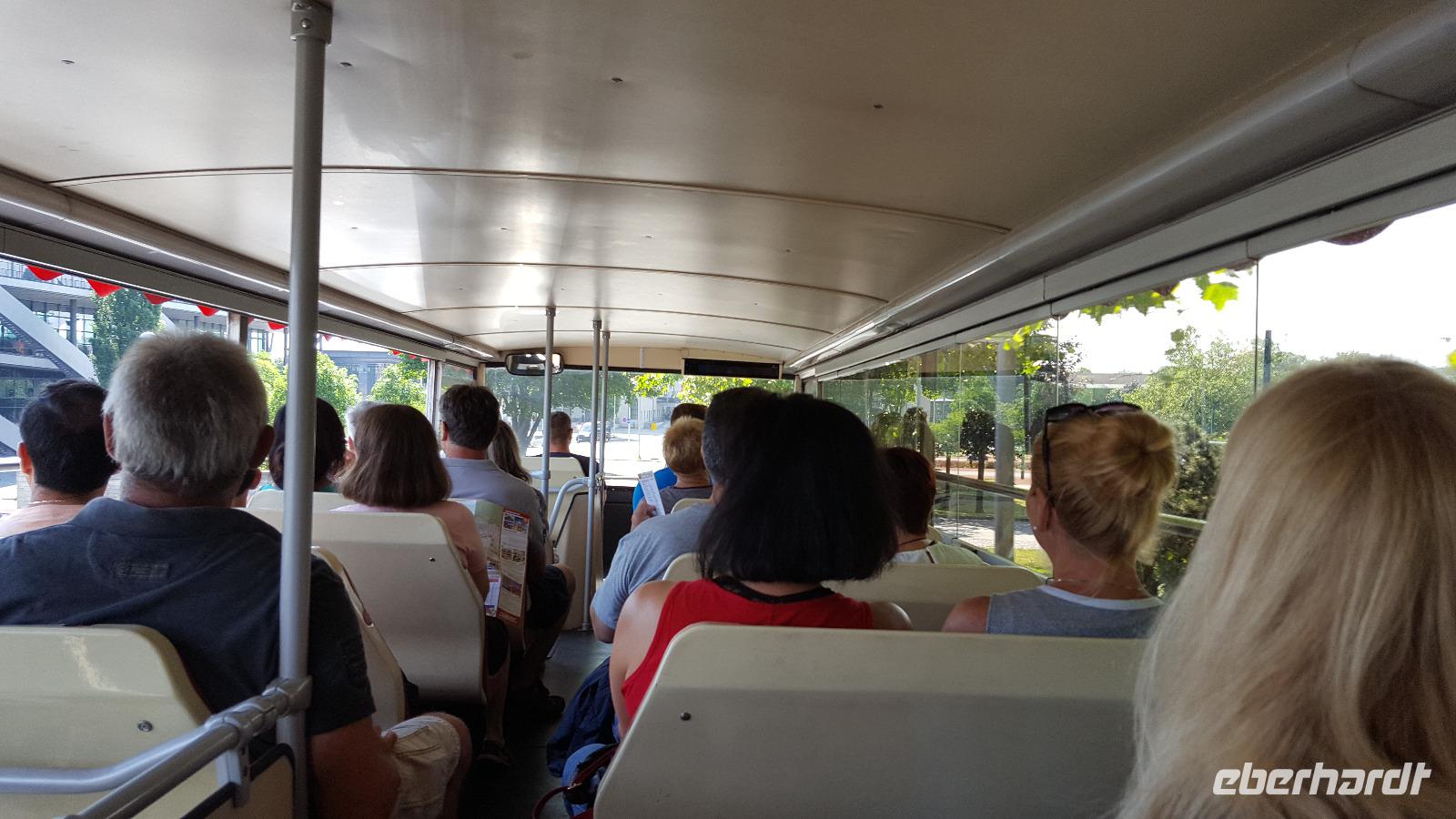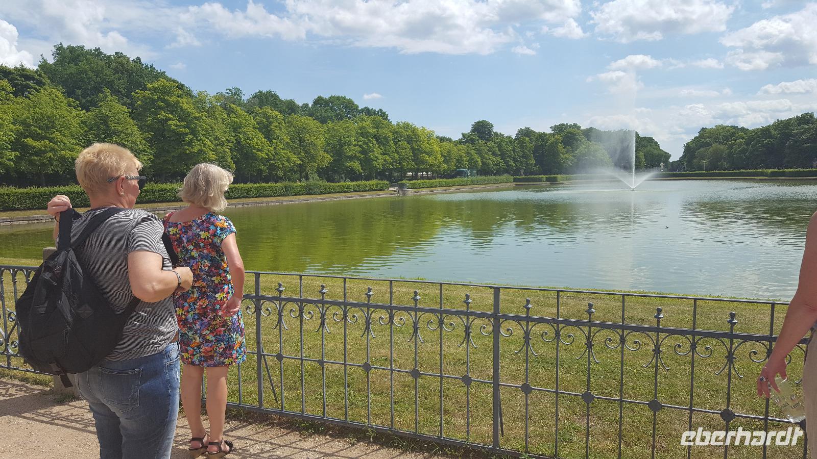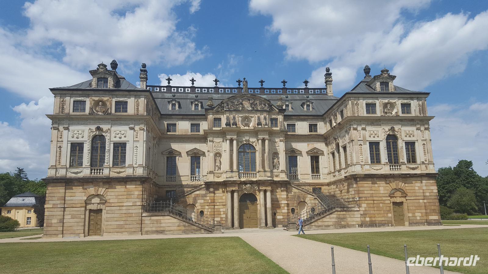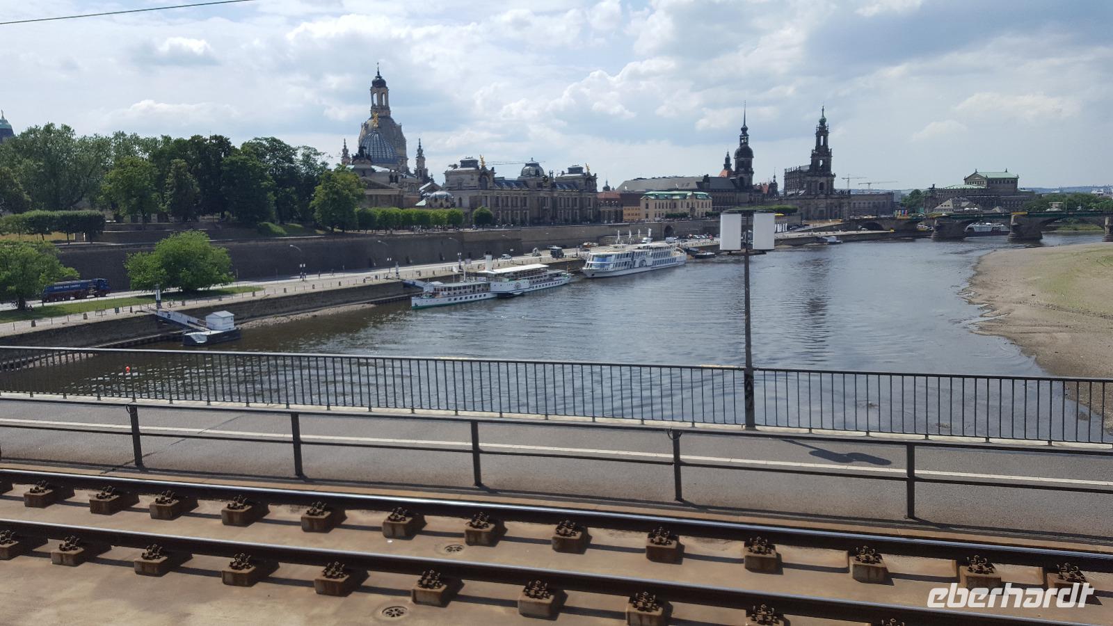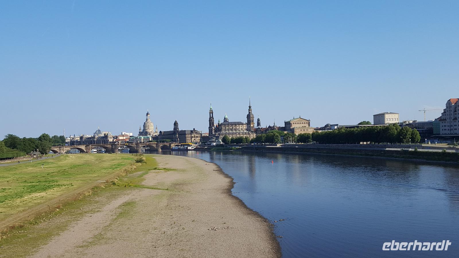 Da wir bei dieser Singlereise abends immer lange gemeinsam aus sind, starten wir die Tagesprogramme erst zwischen 9 Uhr und 9.30 Uhr. Kristin holt uns nach dem Frühstück am Ibis-Hotel ab und wir gehen gemeinsam in Richtung Altstadt, wo wir die anderen Gäste unserer Reisegruppe treffen. Zusammen spazieren wir zum Dresdner Zwinger, wo heute unsere Stadtbesichtigungstour beginnt. Das Wetter könnte schöner nicht sein und wir starten mit einer Führung im bekannten Dresdner Zwinger. Unser örtlicher Fremdenführer Bart führt uns in den Innengarten des Zwingers und erzählt uns allerlei Wissenswertes zur Geschichte dieses barocken Bauwerkes, zu den Festlichkeiten in der Zeit August des Starken und zu Zerstörung und Wiederaufbau nach dem zweiten Weltkrieg. Zwischendurch hören wir auch das Glockenspiel der Meißner Porzellanglöckchen im barock-verzierten Glockentor des Zwingers. Nach diesem Ausflug in die Geschichte besteigen wir den Hop on - hopp off Bus und beginnen unsere Erlebnis-Stadtrundfahrt in Dresden. Zunächst fahren wir vom Zwinger, vorbei an Yenidze, Sächsischem Landtag und Semperoper durch die historische Altstadt mit Taschenbergpalais, Katholischer Hofkirche, Dresdner Schloss und Brühlscher Terrasse. Dann geht es im Bus aus der Innenstadt heraus zum Großen Garten, der größten Parkanlage und grünen Lunge der Stadt. An der Gläsernen VW Manufaktur steigen wir aus (Hop off) und spazieren gemeinsam vorbei am Wochenmarkt und dem Dynamo-Stadion ein Stück durch den Großen Garten bis zum Palais und dem Palaisteich. Im Schatten der Alleen lässt es sich hier gut aushalten und wir genießen die Blicke in die grüne Umgebung mit Blumenbeeten, Springbrunnen, Skulpturen und natürlich der niedlichen Parkeisenbahn, die mit hellem Gebimmel ab und an zu hören und zu sehen ist. An der nächsten Haltestelle steigen wir wieder in den nächsten Bus (Hop on) und fahren ein Stück weiter in Richtung Elbe. Im Bus erfahren wir immer wieder Wissenswertes zu den Sehenswürdigkeiten und Gebäuden, an denen wir vorbei kommen. Vorbei an der Universitätsklinik und mit Blick auf die drei Elbschlösser am anderen Ufer der Elbe erreichen wir den grünen Stadtteil Dresden Blasewitz im Süden der Stadt, der mit sehenswerten Gründerzeit-Villen der wohlhabenden Bevölkerung aufwartet. Hier ist unser nächster Ausstiegspunkt am Schillerplatz. Es ist Mittagszeit und so kehren wir in einen der bekanntesten und ältesten der Dresdner Biergärten ein, den Schillergarten. Unter großen Bäumen und Sonnenschirmen sitzen wir draußen mit direktem Blick auf das berühmte Blaue Wunder - die Loschwitzer Brücke über die Elbe. Hier soll einst auch der deutsche Schriftsteller Friedrich Schiller geweilt haben! Nach der Mittagspause bei gutem Essen und kühlen Getränken spazieren wir gemeinsam über das Blaue Wunder zum Körnerplatz und zur nächsten Haltestelle unserer Stadtrundfahrt. Mit dem Bus geht es weiter aus dem Elbtal durch den Loschwitzer Grund nach oben in den grünen Stadtteil Weißer Hirsch, der direkt an das große Waldgebiet der Dresdner Heide grenzt. Entlang der Bautzner Landstraße geht es stadteinwärts. Unser nächster Ausstiegspunkt sind die Dresdner Elbschlösser, die wir bereits von unten und der anderen Elbseite bewundert haben. Wir spazieren zum mittleren der drei Schlösser, dem Lingner-Schloss. Es wurde um 1850 als Villa Stockhausen erbaut und erhielt im Volksmund den Namen Lingner-Schloss nach seinem zwischenzeitlichen Besitzer. Lingner hatte einst das Odol-Mundwasser erfunden und war so zu Reichtum gekommen, welchen er im Lingner-Schloss und als großzügiger Stifter des Dresdner Hygiene-Museums auch der Stadt zu Gute kommen ließ. Nach seinem Tod vermachte er das Lingner-Schloss der Stadt Dresden, unter der Auflage, dass der Park und das Schloss der Öffentlichkeit zugänglich bleiben und dass eine Gastronomie mit erschwinglichen Preisen eingerichtet werden sollte. Heute zählen die Lingner-Terrassen zu den schönsten Ausflugslokalen und Biergärten Dresdens, denn man genießt einen fantastischen Blick über das Elbtal und die Stadt. Was kann es im Sommer schöneres geben, als bei einem Kaffee oder Bier draußen zu sitzen, den Ausblick zu genießen, die Elbe-Raddampfer unter sich tuten zu hören und mit netten Menschen unterwegs zu sein?