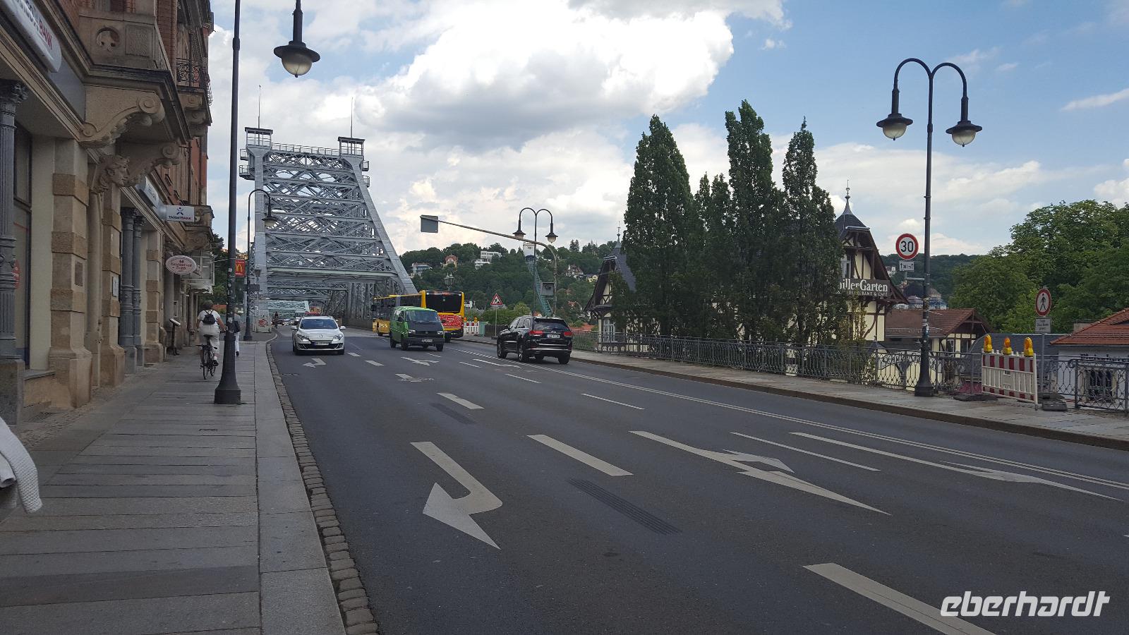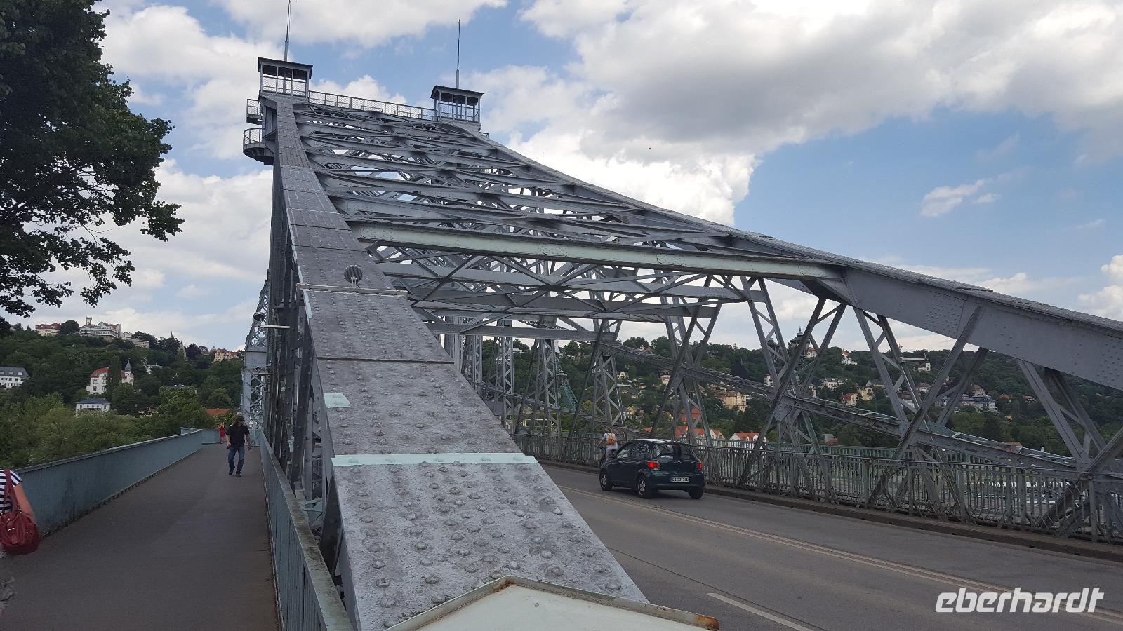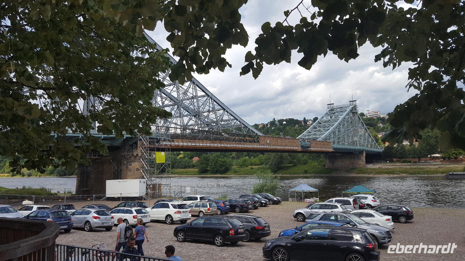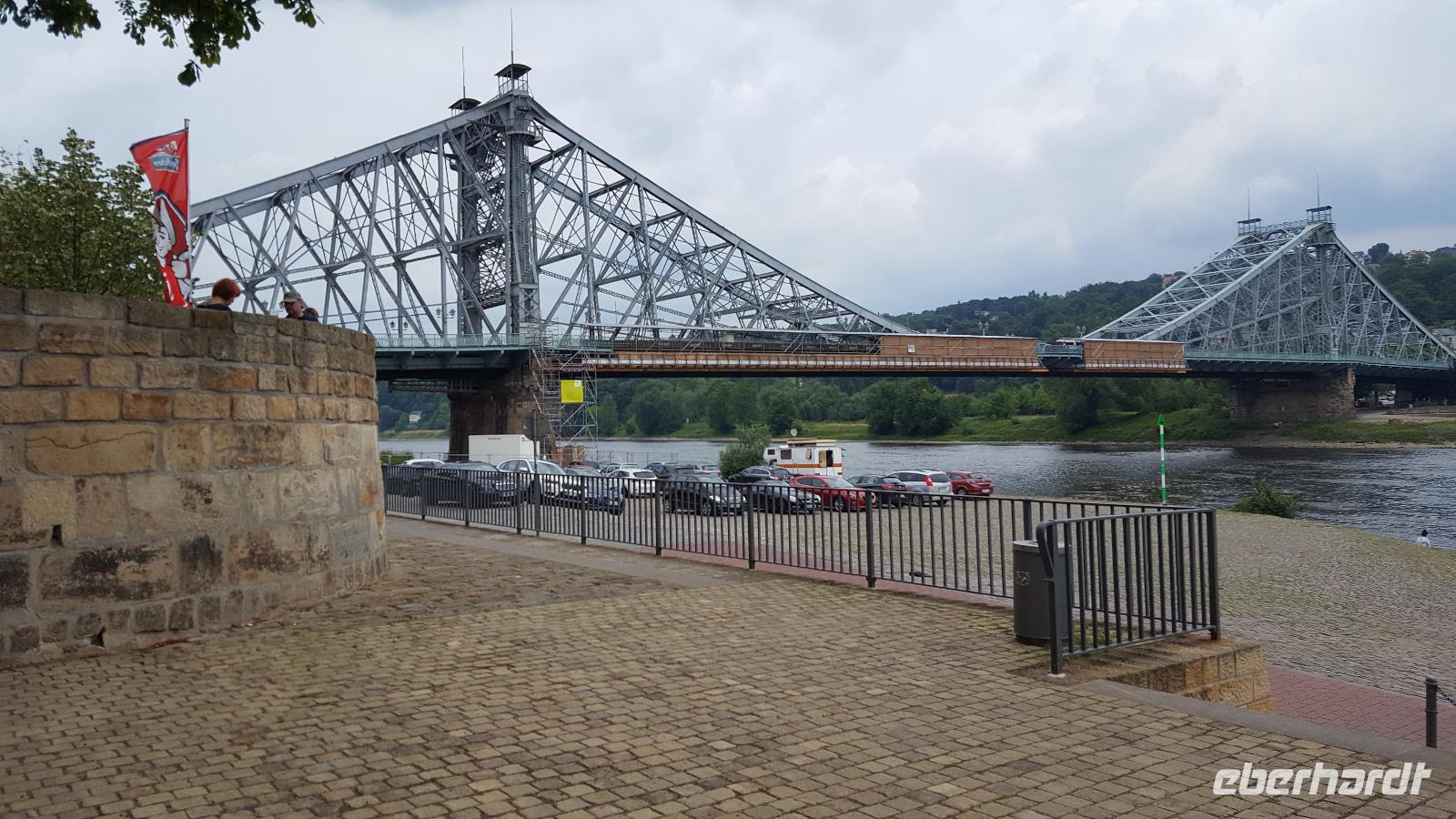 Nach dem Besichtigungsstopp geht unsere Radtour weiter durch den Stadtteil Dresden Tolkewitz in Richtung Elbe. Hier erreichen wir den Elbe-Radweg am linken Elbufer und radeln bis zum Biergarten im Schillergarten direkt am Blauen Wunder. Nach einer Erfrischungspause geht es heute per Rad über die Loschwitzer Elbbrücke, das Blaue Wunder. Rechtselbisch führt uns die Radtour vorbei am Körnergarten, am Schillerhäuschen, den Elbschlössern und am ehemaligen Wasserwerk Saloppe auf dem Elbe-Radweg zum Waldschlösschen. Hier legen wir noch eine Mittagspause im Biergarten über der Elbe ein, bevor wir über die Carolabrücke zurück in die Innenstadt radeln.