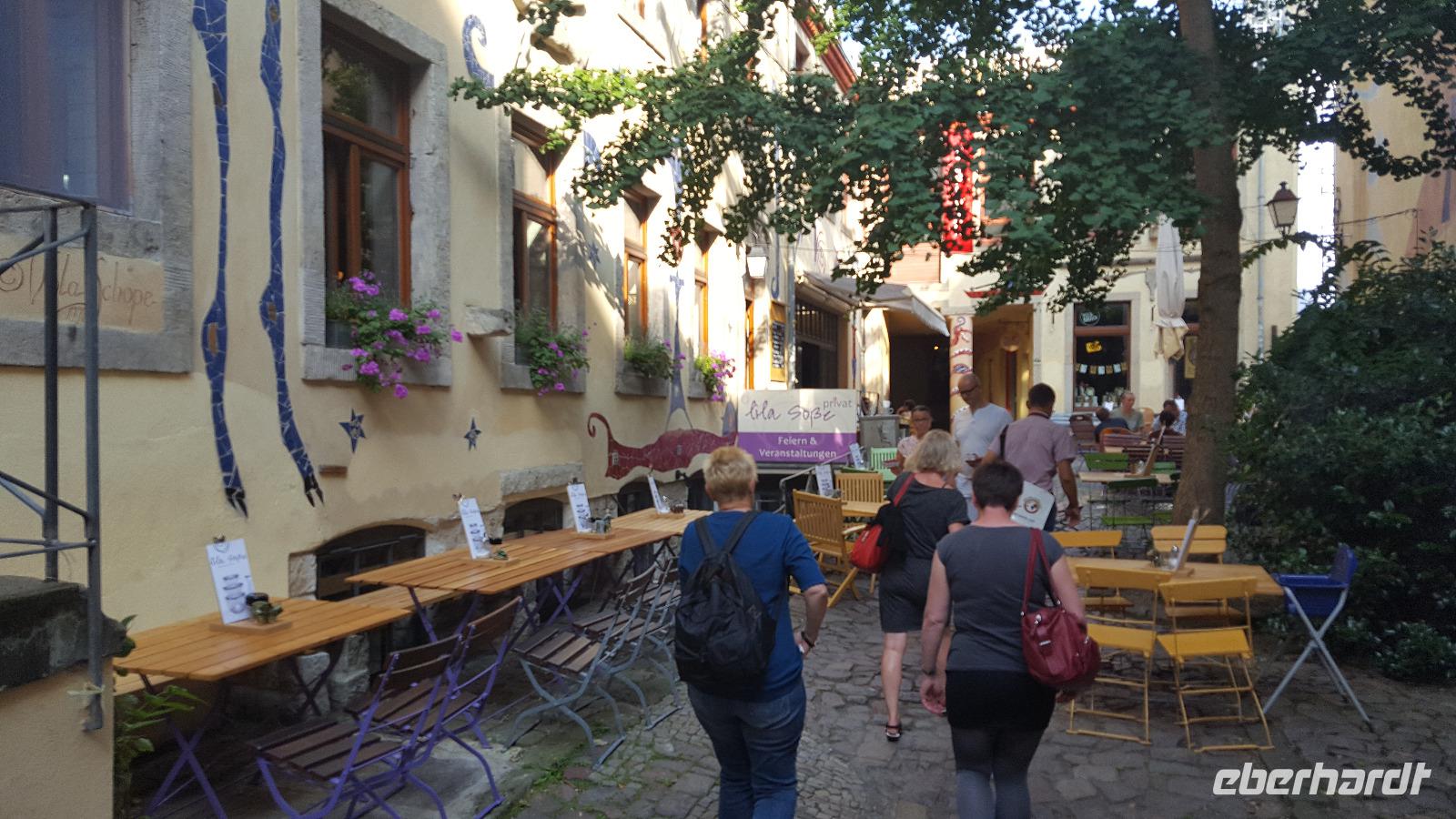 Es bleibt etwas Zeit zum Frischmachen im Hotel, bevor es am späten Nachmittag per Straßenbahn in die Dresdner Neustadt geht. Hier werden wir von einem örtlichen Guide zu einem Stadtrundgang der anderen Art erwartet. Wir lernen das Stadtviertel Äußere Neustadt mit seinen mehr als 280 Restaurants und Kneipen bei einem kulinarischen Rundgang kennen. Dabei erfahren wir Wissensertes zum Gründerzeitviertel, zu prägenden Persönlichkeiten und Industriellen, zur Kunst und Kultur. Dazu werden uns in drei typischen Lokalen kleine Kostproben der dortigen Spezialitäten gereicht - vom Cupcake über italienische Antipasti bis zu russischen Pelmenis. Selbst Dresden-Kenner können hier noch den ein oder anderen Geheimtipp erfahren! Nach der Führung lassen wir den Abend im gemütlichen, kleinen Biergarten des Restaurants Planwirtschaft bei gutem Essen, Wein, Bier und guter Stimmung ausklingen. Per Straßenbahn geht es gegen Mitternacht zurück zum Hotel und wir verabschieden uns.