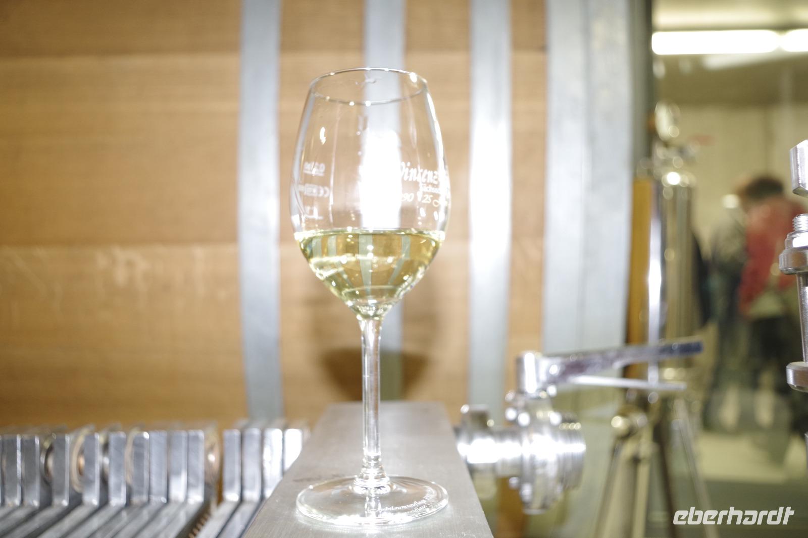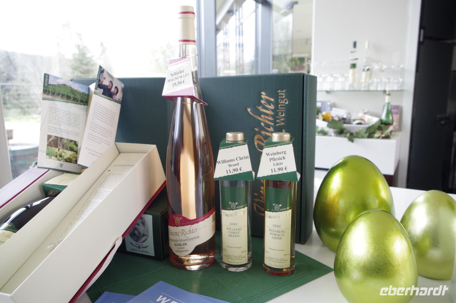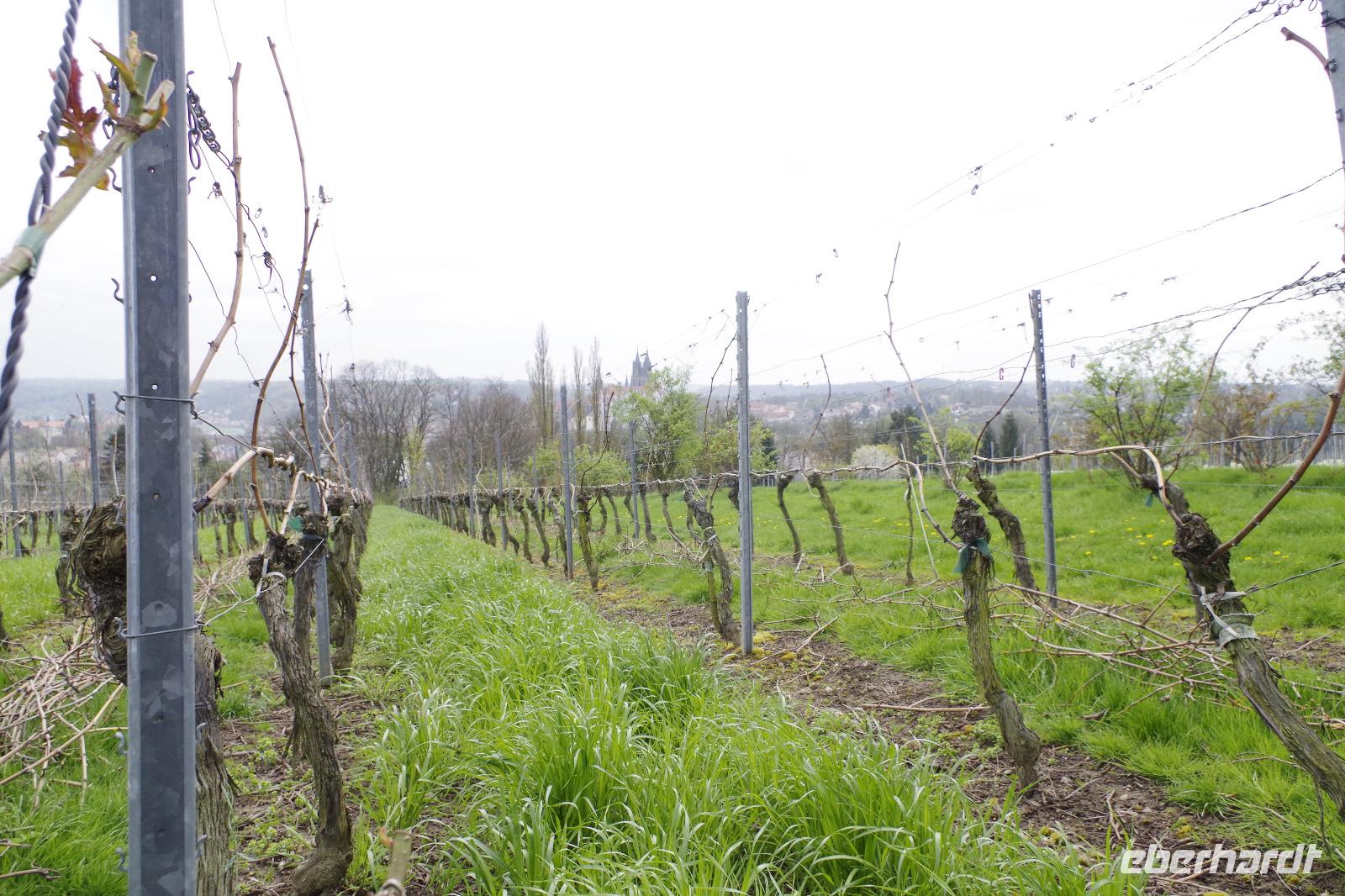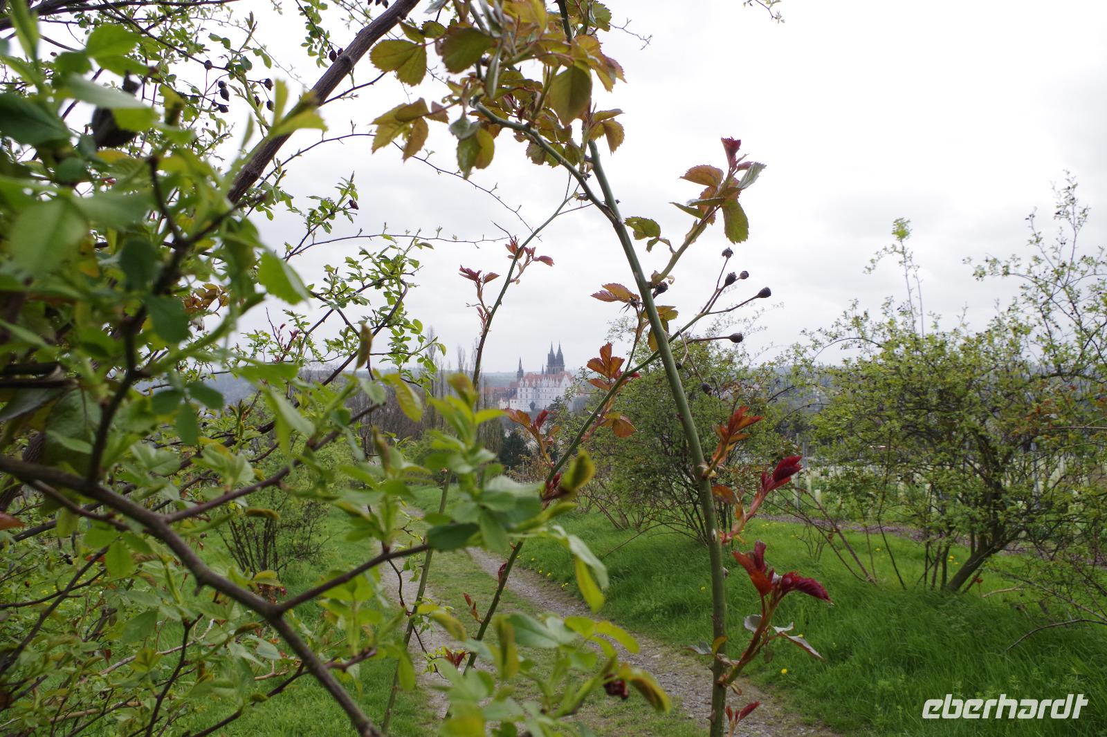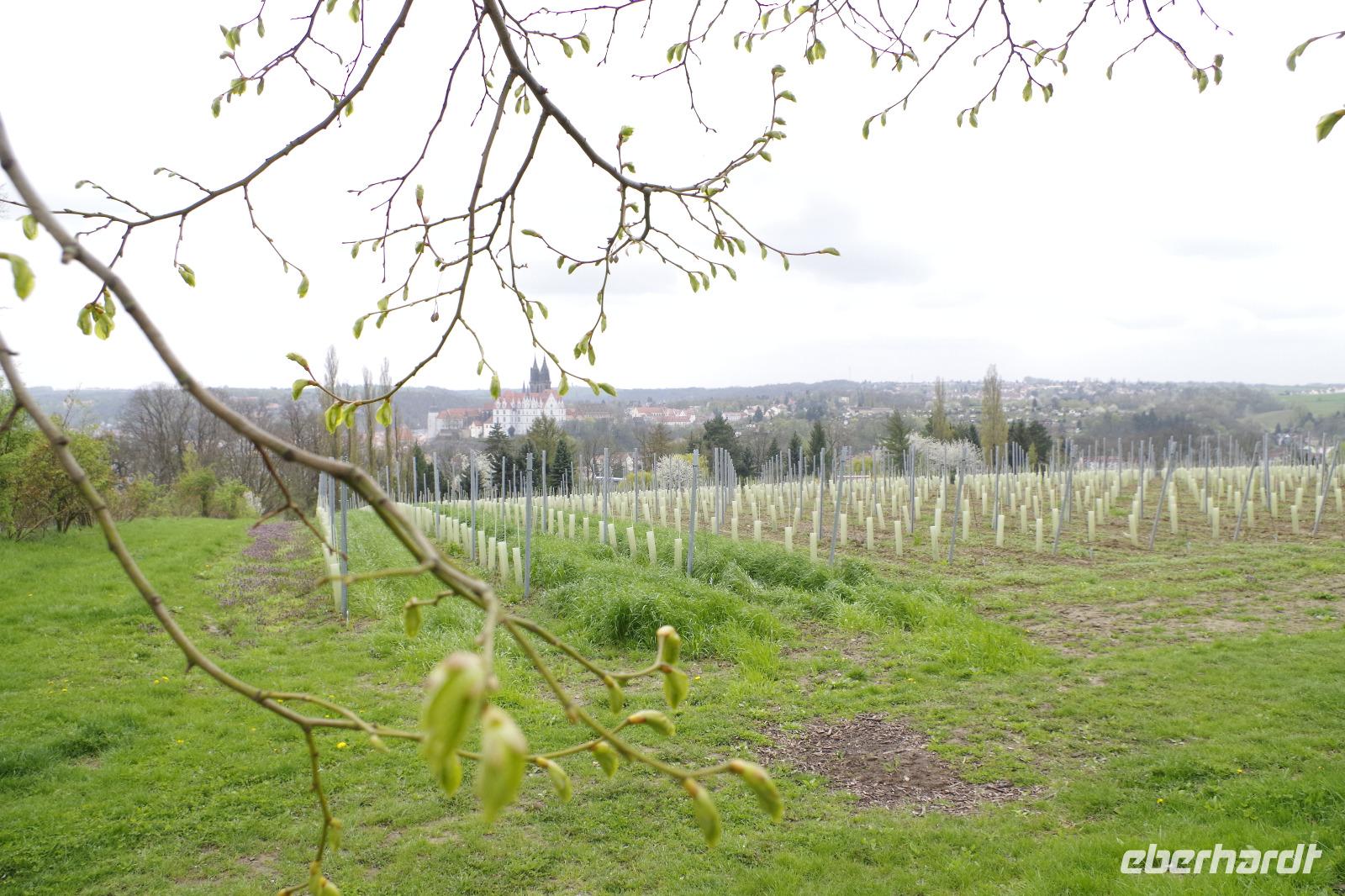 In Meißen begann anschließend unsere Bus-Rundfahrt entlang der Sächsischen Weinstraße. Zunächst fuhren wir im frühlingshaften Elbtal in die Weinorte rund um Diesbar-Seußlitz. Blühende Kirschbäume und Mandelbäumchen säumten den Weg und die Sonne brach ab und an durch den bewölkten Himmel. Unser nächstes Ziel war Schloss Proschwitz und die umliegenden Weinhänge, von denen wir einen wunderschönen Blick auf Meißen und das Elbtal genießen konnten. Dazu probierten wir einen Weißwein von Prinz zur Lippe, den unsere örtliche Gästeführerin mitgebracht hatte. Nach einem kleinem Rundgang durch den Garten des Schlosses Proschwitz ging unsere gemeinsame Rundfahrt weiter entlang der Elbe nach Sörnewitz. Hier waren wir zu einer Weinverkostung im Weingut Vincenz Richter eingeladen und erfuhren viel Wissenswertes zum Weinanbau und zur Weinverarbeitung im Sächsischen Elbland.
