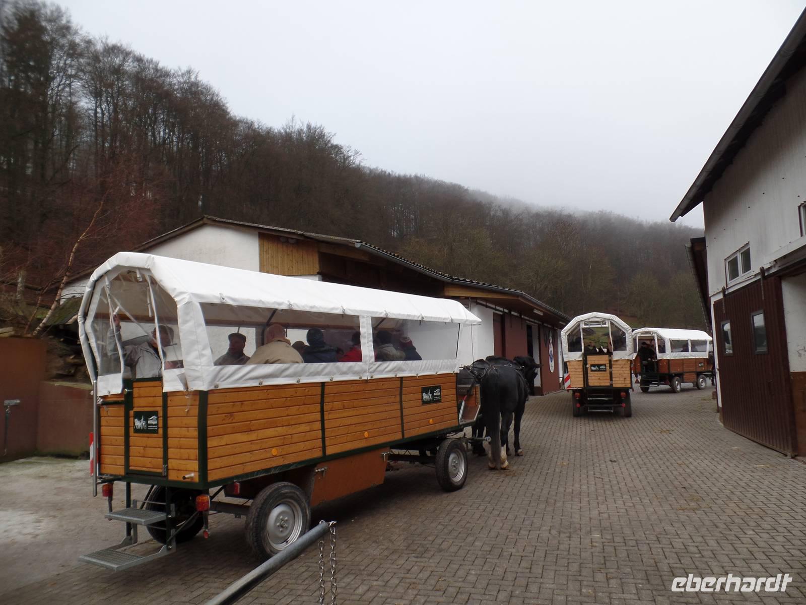 Unsere Kutschfahrt führte uns ins Hochheidegebiet "Osterkopf", hier wärmten sich alle Gäste erst einmal mit Glühwein auf.