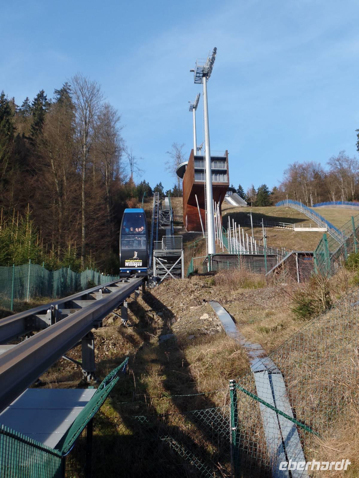 Mit der Standseilbahn ging es dann hinauf in das "Herz" der Skispringer.