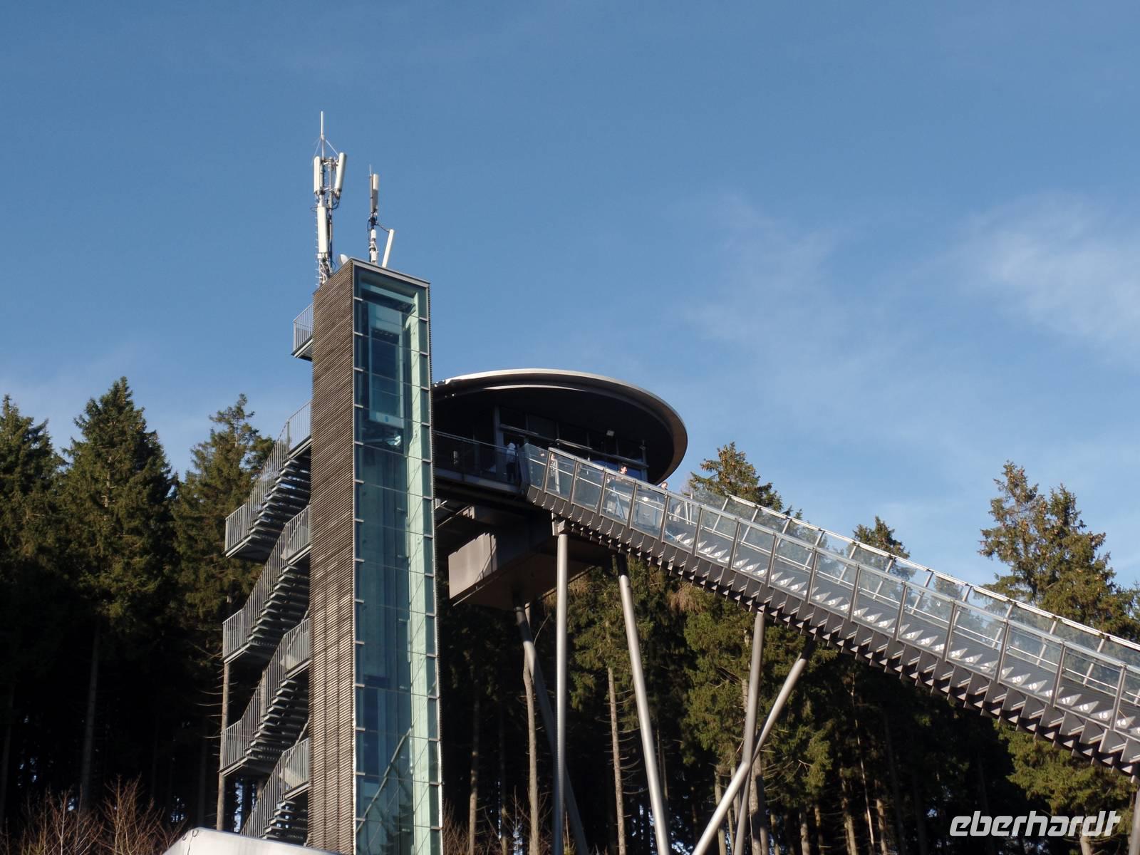 Bob- und Rennrodelsports, sowie als Wintersportort sahen wir das Skiliftkarusell, die Bobbahn, die St.-Georg-Schanze, kleinere Skisprungschanzen, sowie die Panorama-Erlebniss-Brücke, ein einzigartiges Brückenprojekt in Deutschland.