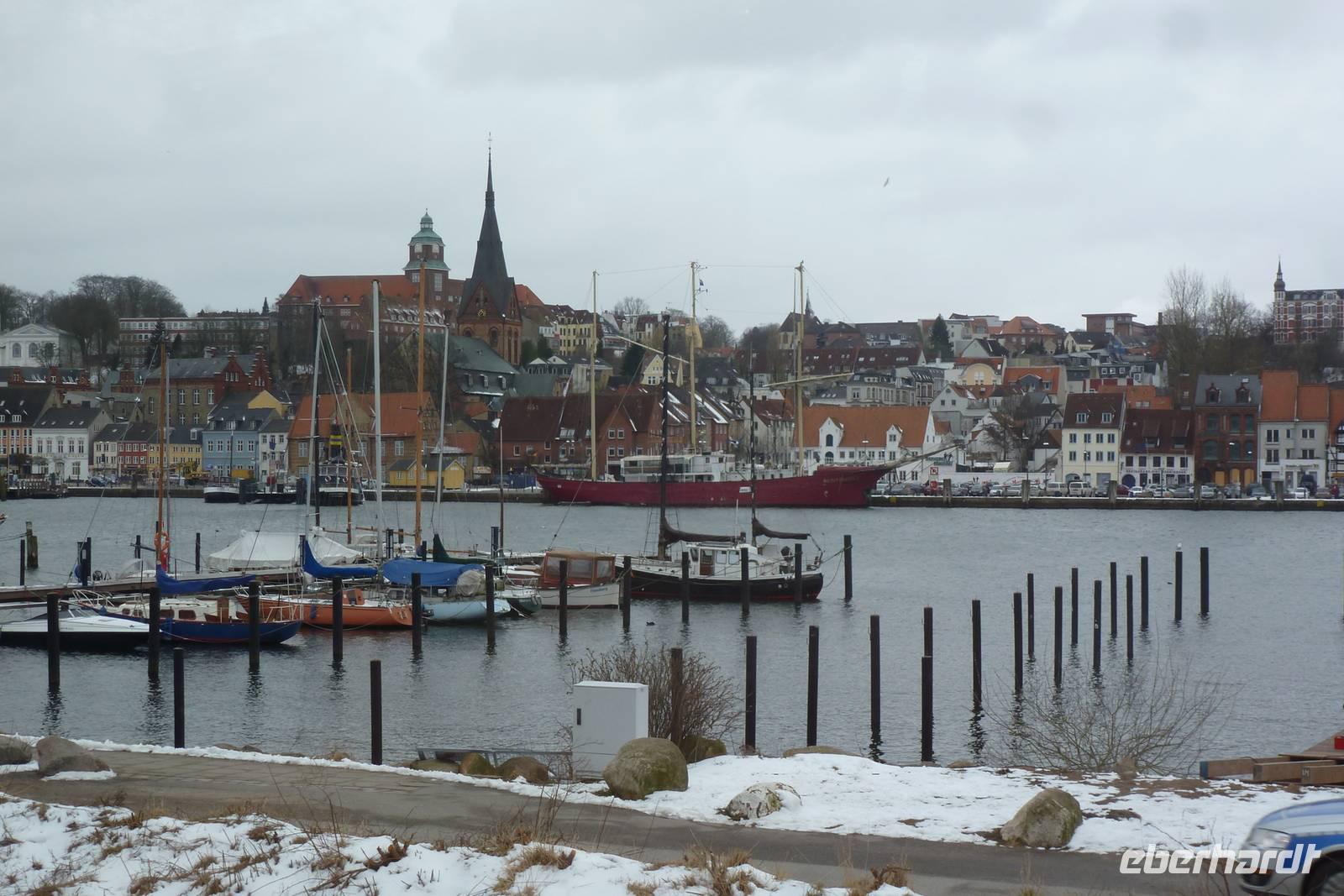 Heute ging es über die Hüttener Berge auf nach Flensburg! Am Vormittag besuchten wir die Flensburger Brauerei, bekannt für sein herbes „Flens". Dort wurden wir durch die Produktions - und Lagerhallen geführt und haben schließlich im Salon „geploppt" und ein gutes Flens probiert. Es gab auch einen sehr guten Imbiss mit Schinken, Brot und Fisch - und ging es gut! Halb eins erwartete uns die wirklich tolle Gästeführerin Frau Rolke bereits bei der Brauerei. Sie zeigte uns Flensburg und erzählte uns mit ihrer lustigen und sehr netten Art viel Interessantes über die Stadt. Wir fuhren raus zum Schloss Glücksburg, weiter zum Hafen von Flensburg und schließlich bis nach Dänemark. Dort machten wir am Ostseestrand eine Pause - zum spazieren war es den meisten zu frisch draußen und so tranken wir viel lieber einen heißen Glühwein, Kaffee, Pharisäer oder eine „Tote Tante" im Bus. Und auf einmal fing die tolle Gästeführerin an zu singen, und die Gäste sangen mit! Das war eine klasse Stimmung im Bus - alle haben gesungen, sich gefreut - einfach schön! Na und dann fuhren wir zurück nach Flensburg, verabschiedeten uns von Frau Rolke und fuhren über die idyllische Landschaft von Angeln über Kappeln an der Schlei und Eckernförde zurück zu unserem Hotel. Es gab am Abend wieder ein schönes Abendessen und so ließen wir uns es wieder gut gehen nach diesem schönen Tag im Norden Deutschlands.