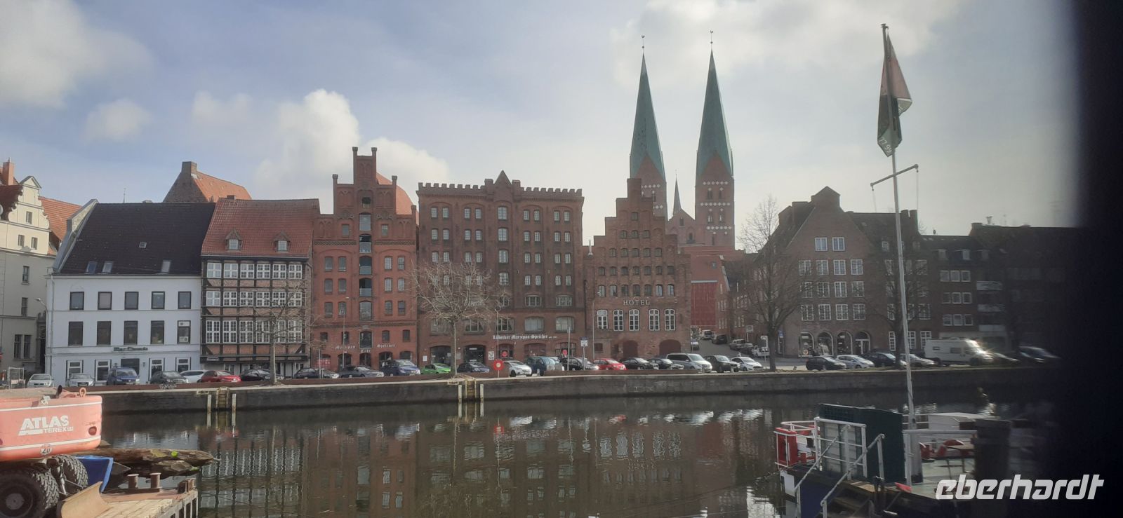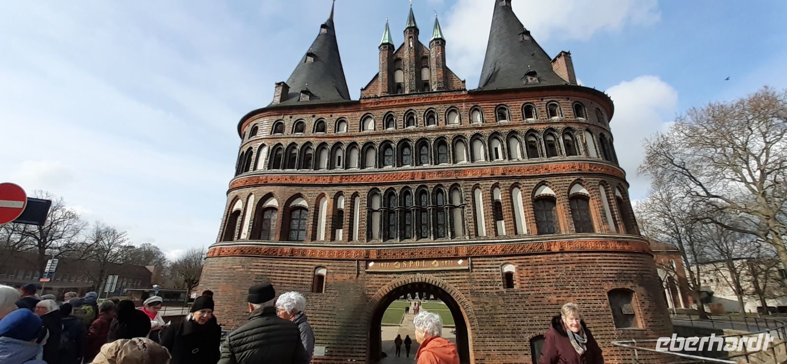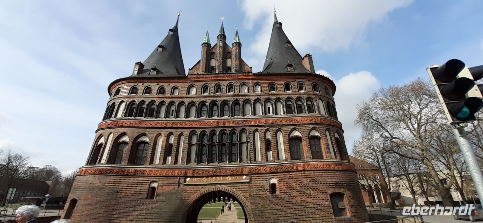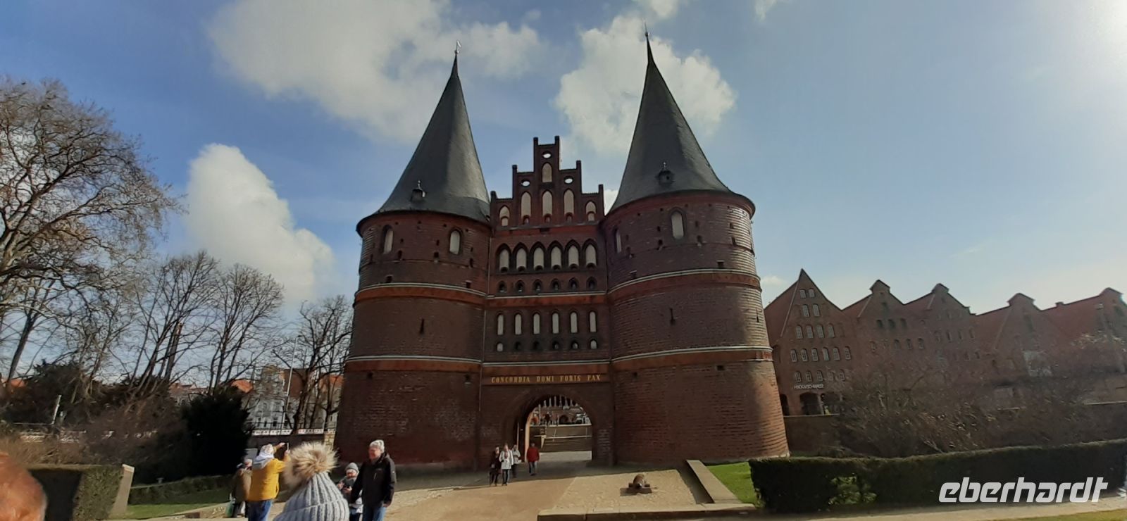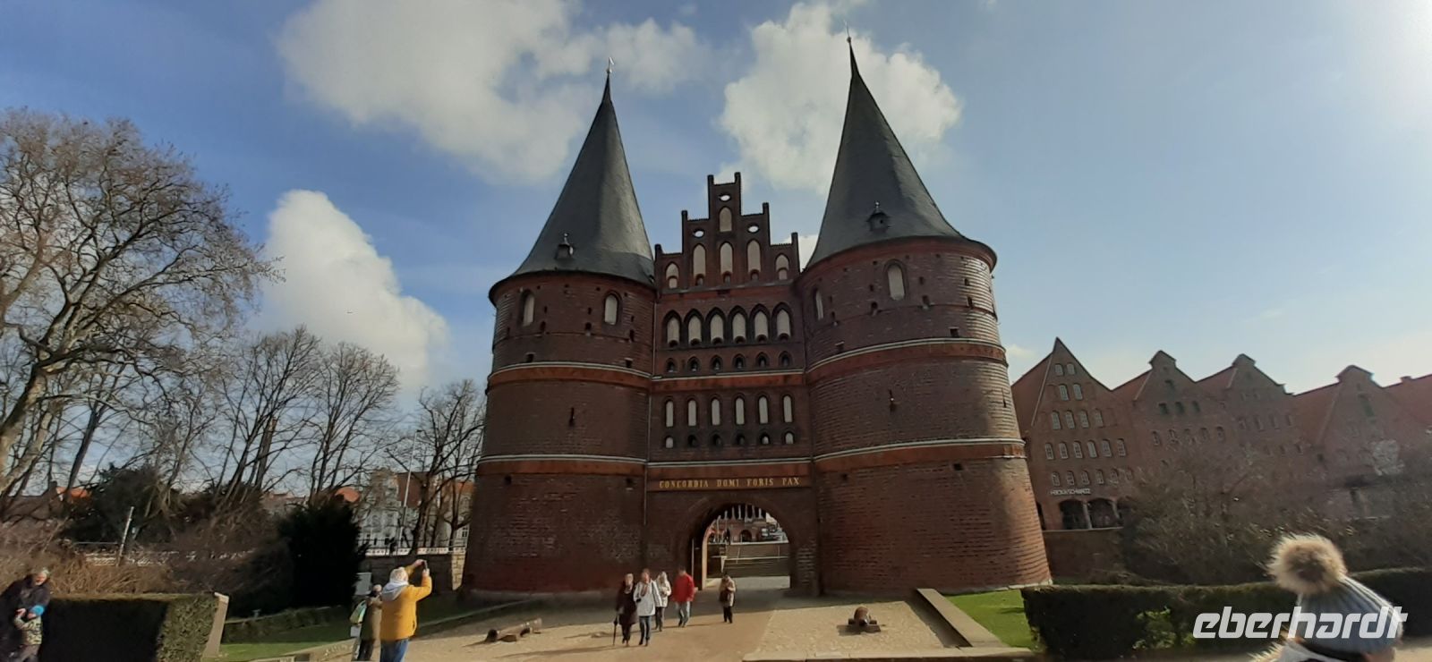 Auch am heutigen Tag schien die Sonne, und wir wollten die Hansestadt Lübeck entdecken. Unsere Gästeführerin Jana eine blonde Schwedin erwartete uns bereits. Sie zeigte Ihre Stadt und hatte auch die eine oder andere Geschichte im Gepäck. Mit Ihr erkundeten wir die Stadt. Lübeck. Sie steht komplett unter Denkmalschutz und gehört seit 1987 zum UNESCO Weltkulturerbe. Zuerst besuchten wir das Wahrzeichen von Lübeck das Holstentor. Der imposante Backsteinbau war ein eines von 4 Stadttore der Stadtbefestigung das die Altstadt vor Angreifern schützen sollte. Bevor wir die Altstadt liefen wir entlang der Trave und besuchten die verwinkelte Gänge und Stifthöfe an. Am Marktplatz mit dem schönen Rathaus und dem Thomas Mann Museum verabschiedenden wir uns von Jana. Es war gerade Markttag so das der Blick auf die Fassade etwas eingeschränkt war. Hinter dem Markplatz besuchten wir die Marienkirche. Davor sitzt der Teufel auf dem Teufelsstein. Er hatte unbewusst beim Bau der Kirche mitgeholfen, da er davon ausging das ein Gasthaus gebaut wurde. Um den Teufel zu besänftigen wurde danach der Ratskeller gebaut. Anschließend kehrten wir im Cafe Niederegger ein. Beim Anblick der verschiedenen Kuchen und Torten war die Verführung groß. Aber auch herzhafte Esser kamen auf ihre Kosten. Im Marzipan Museums waren die verschiedenen Persönlichkeiten, die natürlich aus Marzipan hergestellt wurden besonders beindruckend. Nachdem noch im Geschäft gestöbert wurde hatten wir noch etwas Freizeit für eigene Entdeckungen.