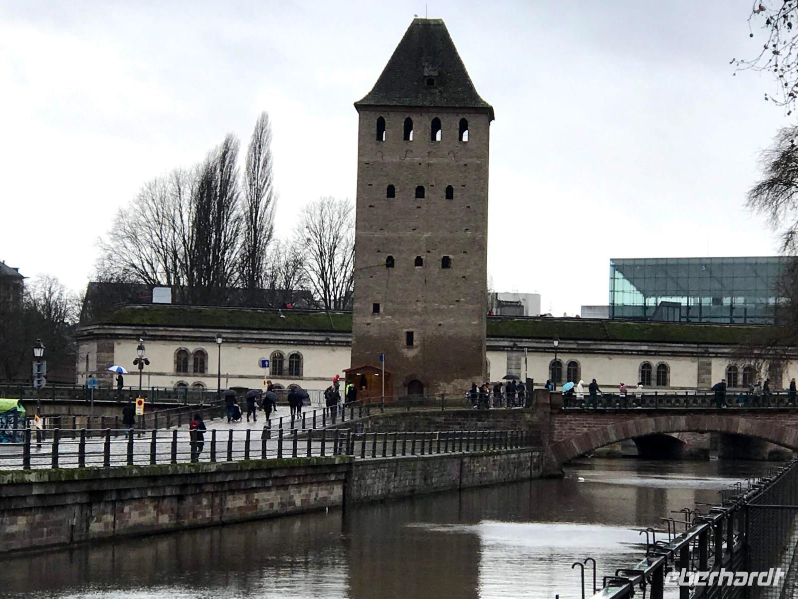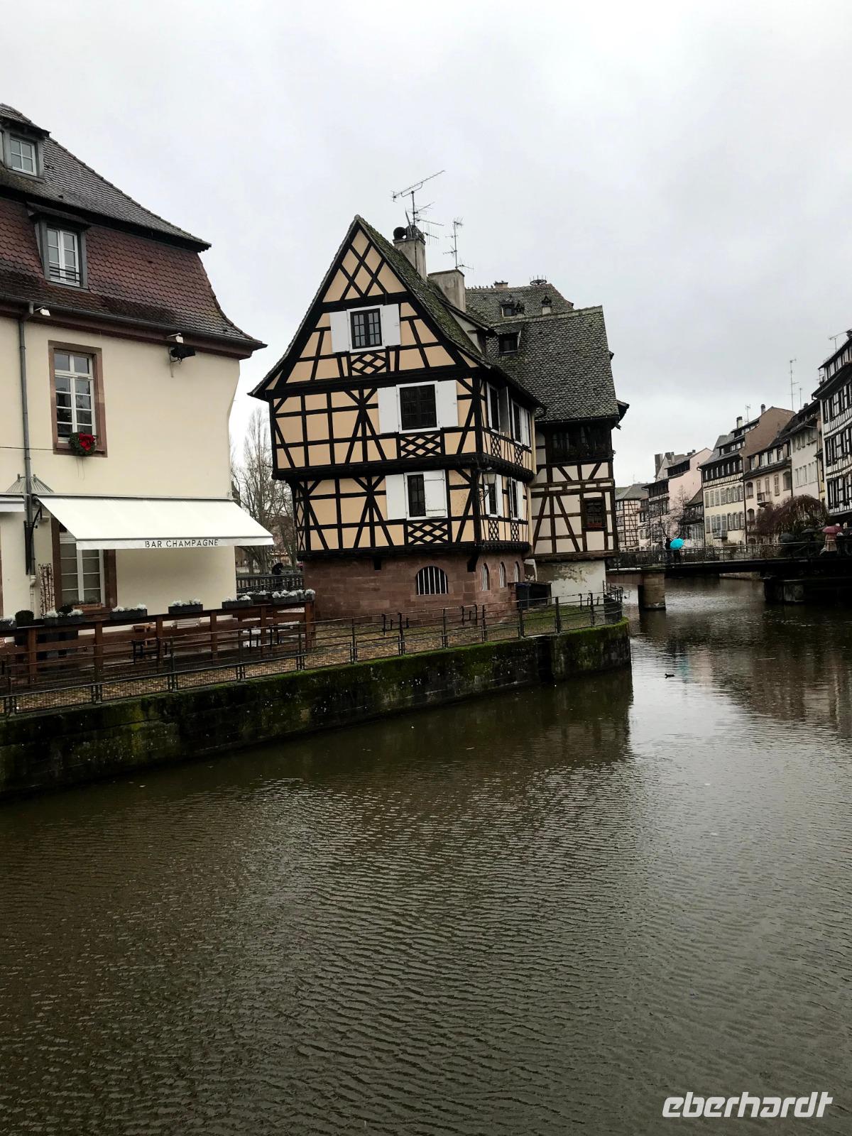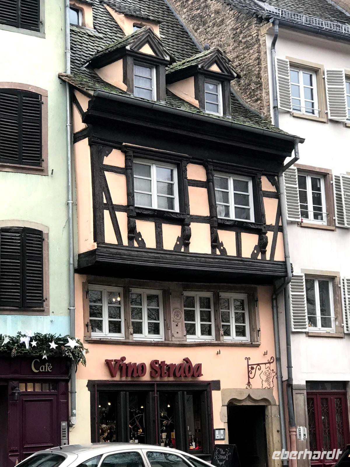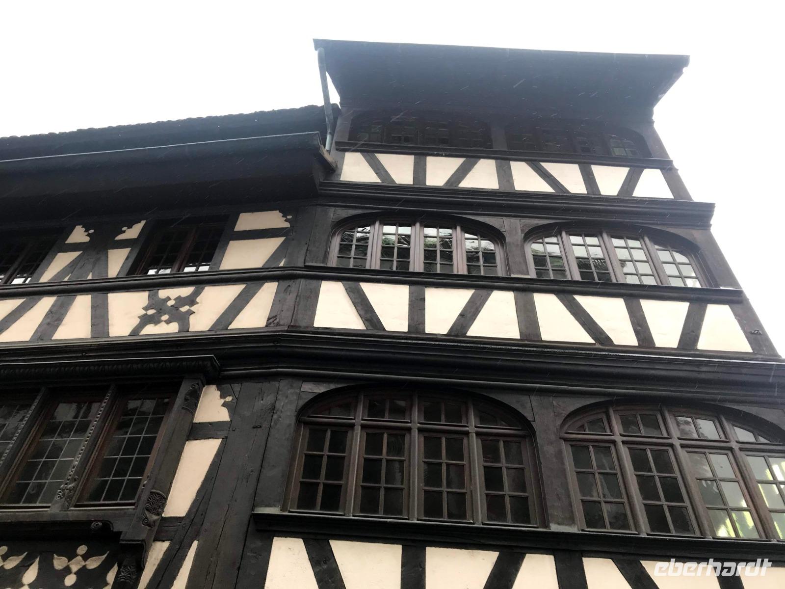 Natürlich bildet das sehenswerte gotische Münster mit seiner herrlich geschmückten Fassade den Mittelpunkt der Straßburger Altstadt! Auf dem Platz vor ihm tummelten sich trotz regnerischem Wetter auch die meisten Menschen auf dem größten der Festtagsmärkte. Hier gab es natürlich leckere Elsässer Spezialitäten und immer wieder Glühwein! Wir hatten Freizeit am Münsterplatz und auf dem Weihnachtsmarkt mit der Statue des Buchdruck-Erfinders Gutenberg, aber mit mir zogen einige Wetter-Unerschrockene noch zunächst auf einem Rundgang durch das als „Gerberviertel" bekannte Fachwerk-Areal von „Petite France". Hier gruppieren sich historische Häuser um kleinere Marktplätze, selbst zur Weihnachtszeit verkehren Ausflugsboote auf der Ill und man kann überall elsässische Spezialitäten wie etwa Flammekuchen, Sauerkraut oder „Knack" - einheimische, besonders gewürzte Knacker - probieren. Glühwein, aus Rot- oder Weißwein der Region ist natürlich ein Muss und man macht schnell die Erfahrung, dass der wirklich anders schmeckt als auf „unseren" Weihnachtsmärkten.