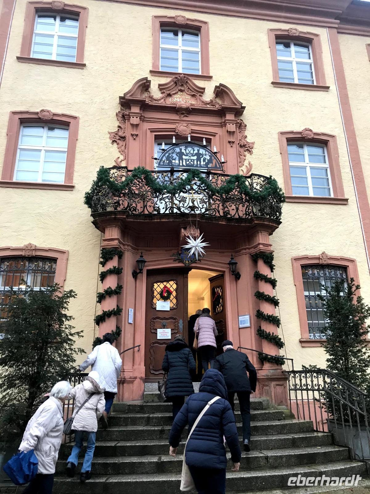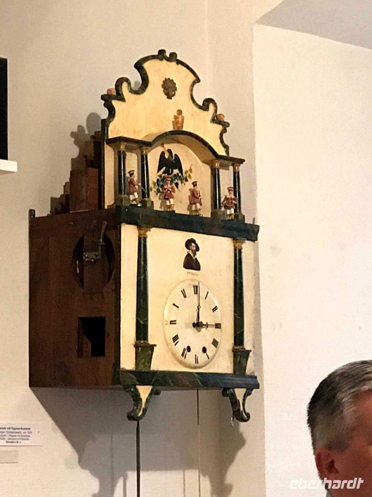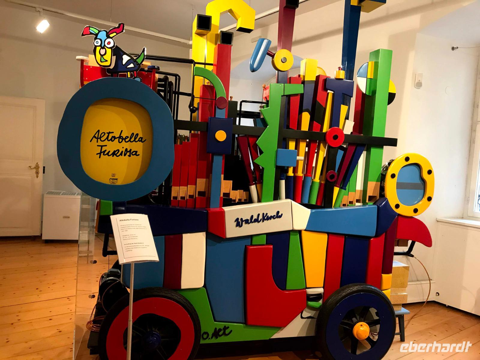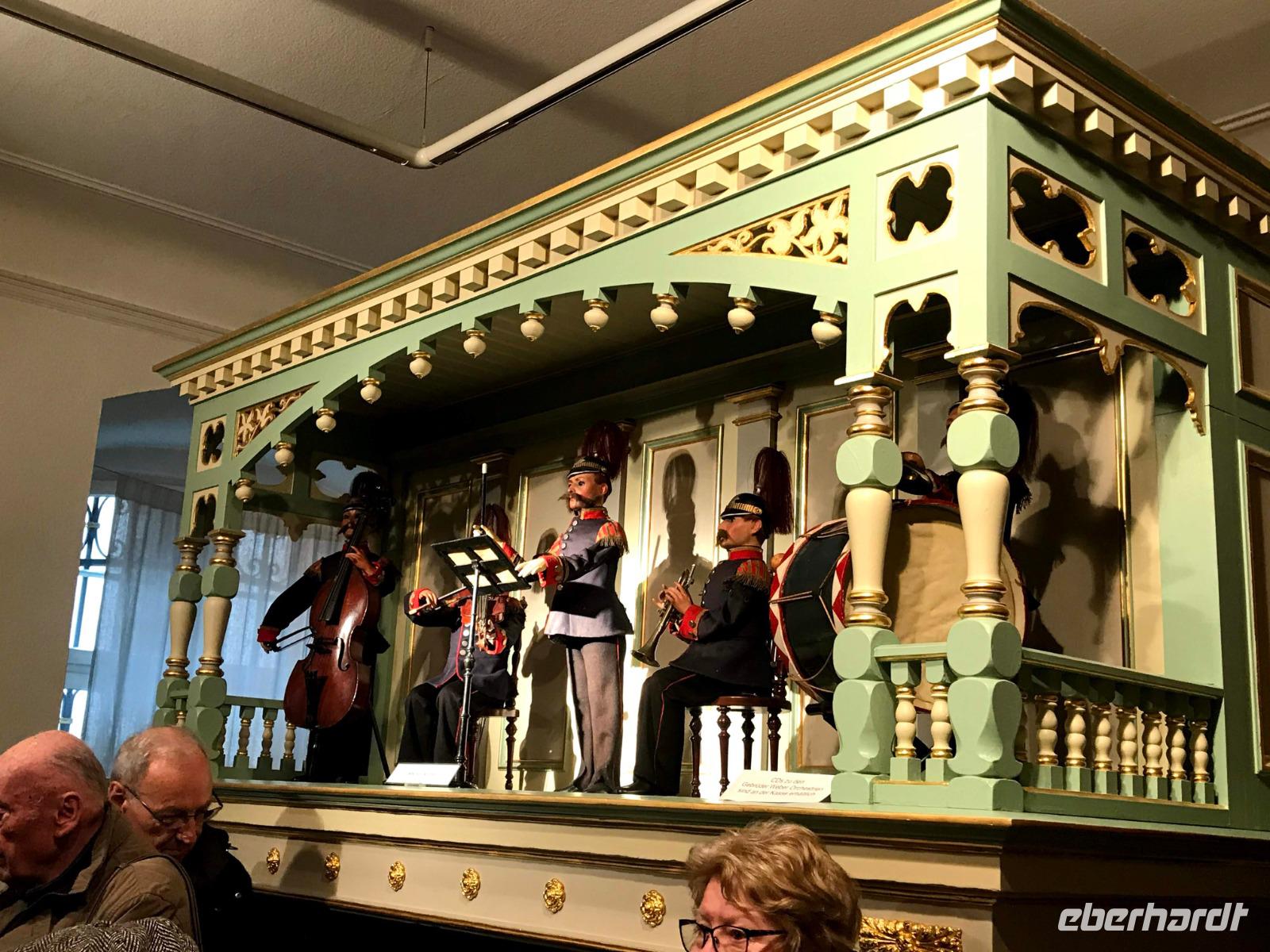 Das Programm an diesem ersten Weihnachtstag begann mit einem besonderen Höhepunkt, denn am Vormittag waren wir im Elztal-Museum in Waldkirch angemeldet. Die kleine Stadt im südlichen Schwarzwald, am Rheinzufluss Elz, besaß einst einen besonderen Ruf als Stadt der Uhrmacher, später einen Weltruf im Bau von Drehorgeln und Musikautomaten. Deren Produktion, begründet 1799 von Matthias Martin, hatte danach große Bedeutung für die Region und der Orgelbau wird bis heute von verschiedenen Firmen weiter geführt. Im Museum neben der Kirche gibt es eine beeindruckende Präsentation von Musikautomaten. Ein Mitarbeiter, Cedric, führte uns voller Leidenschaft und mit sehr viel auf uns übertragenen Enthusiasmus einige der hervorragend funktionierenden Flötenuhren, Dreh- und Strassenorgeln vor. Wir lernten - geräuschvoll, vergnügt und auch unerwarteterweise - wieviel derartige Musikautomaten zur Verbreitung von Musikkultur - auch klassischer Musik - beigetragen haben.
