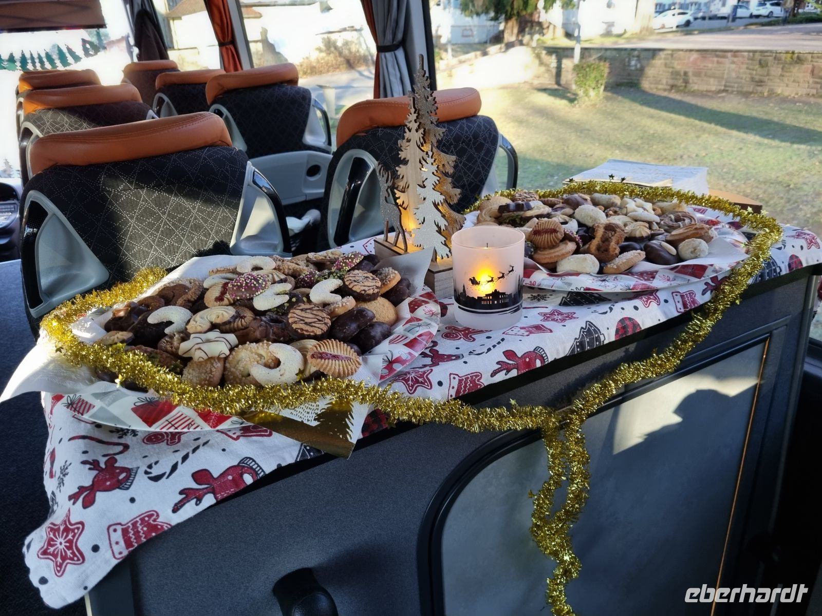 Nach einem ausgiebigen Frühstück machten wir uns voller Vorfreude auf den Heiligen Abend auf den Weg nach Baden-Baden, um den berühmten Christkindlmarkt zu besuchen, der zu den schönsten der Region zählt. Die Fahrt führte uns über die rund 60 Kilometer lange Schwarzwaldhochstraße, Deutschlands älteste Panoramastraße, in nördlicher Richtung. Zwischen Freudenstadt und Baden-Baden eröffneten sich normalerweise entlang der Strecke immer wieder kurze Ausblicke auf die Schwarzwaldtäler, das Rheintal sowie bis hinüber ins Elsass und zu den Vogesen. Bei uns heute nicht, denn wir hatten leider keine Sicht! Am Kniebis, einem langgestreckten Bergrücken in traumhaft verschneiter Landschaft, legten wir einen kurzen Halt ein, bevor wir weiter zum Mummelsee fuhren. Dort sorgte dichter Nebel zwar für eingeschränkte Sicht, doch die frische, klare Luft auf über 1.000 Metern Höhe war dennoch ein Genuss. Anschließend setzten wir unsere Fahrt fort und erreichten gegen Mittag Baden-Baden, Deutschlands mondäne Kurstadt, die seit 2010 gemeinsam mit weiteren europäischen Kurorten zum UNESCO-Weltkulturerbe „Great Spa Towns of Europe“ gehört. Der Christkindlmarkt im stimmungsvollen Kurgarten direkt vor dem festlich beleuchteten Kurhaus bot eine zauberhafte Kulisse. Neben liebevoll dekorierten Marktständen erwarteten uns eine Krippenausstellung in der Trinkhalle sowie die eindrucksvolle Kirchenfenster-Allee mit großformatigen, hinterleuchteten Glasmalereien. Bei Glühwein und regionalen Spezialitäten verbrachten wir hier die Mittagszeit, bevor wir am Nachmittag weiter nach Freudenstadt fuhren. Auch dort stand der Genuss im Mittelpunkt: Neben dem Besuch des größten Marktplatzes Deutschlands nahmen wir im traditionsreichen „Café Pause“ an einem besonderen Seminar teil. Da ein Aufenthalt im Schwarzwald ohne Schwarzwälder Kirschtorte unvollständig wäre, erfuhren wir zunächst Wissenswertes über ihre Geschichte und Herstellung, bevor wir das frisch zubereitete Meisterwerk schließlich selbst verkosten durften. Am späten Nachmittag kehrten wir in unser gemütliches Hotel zurück und stimmten uns auf den Heiligen Abend ein. Einige Gäste besuchten die Christvesper in der Klosterkirche Alpirsbach. Am Abend erwartete uns ein festliches Vier-Gänge-Weihnachtsmenü in geselliger Runde. Den Abschluss bildeten die von der Hotelchefin vorgetragene „Geschichte vom Lametta“ sowie kleine Aufmerksamkeiten zur Bescherung, die allen ein Lächeln ins Gesicht zauberten. Frohe Weihnachten!