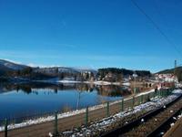 Als wir dort anlangen verwöhnt uns weiterhin die Sonne und wir können den Blick über das schöne Gewässer schweifen lassen, kein Wind stört die malerischen Spiegelungen der Berge im Wasser. Am nahe gelegenen Bahnsteig kommt gerade schnaufend eine Dampfbahn an, somit kommen auch noch die Bahnfreunde auf ihre Kosten. Über die Mittagszeit halten wir uns an diesem schönem Gewässer auf um dann kurz vor halb zwei einem weitern Höhepunkt entgegen zu fahren.