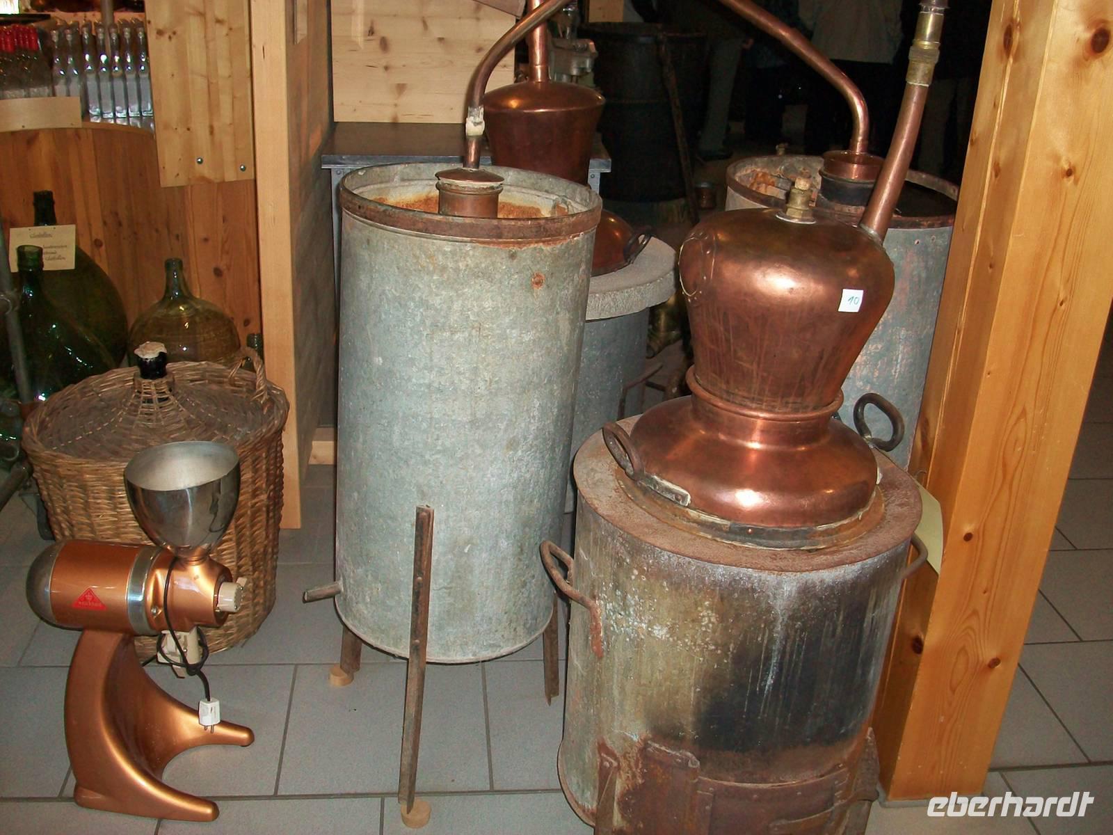 Dann besuchen wir das Schnapshäusle, das ist ein schön eingerichtetes Museum und hier erfahren wir auch noch etwas über das berühmte Kirschwasser, einer weiteren Tradition des Schwarzwaldes. Sehr launig führt uns Erich an den Exponaten vorbei die manchmal schon Ähnlichkeit mit einem Chemielabor haben. Am Ende des Rundganges können wir auch noch von den Bränden probieren die verlockend in den Regalen stehen und als Souvenir gut geeignet sind für die Lieben daheim mitgenommen zu werden.