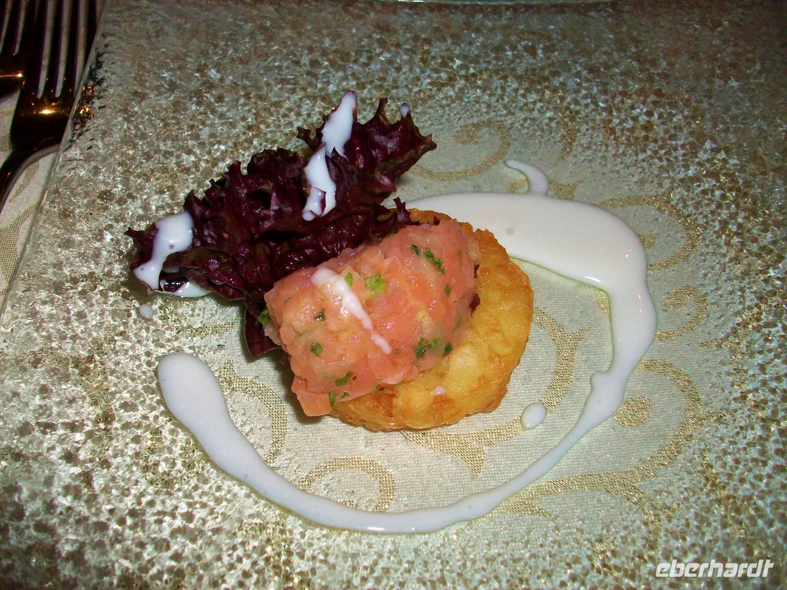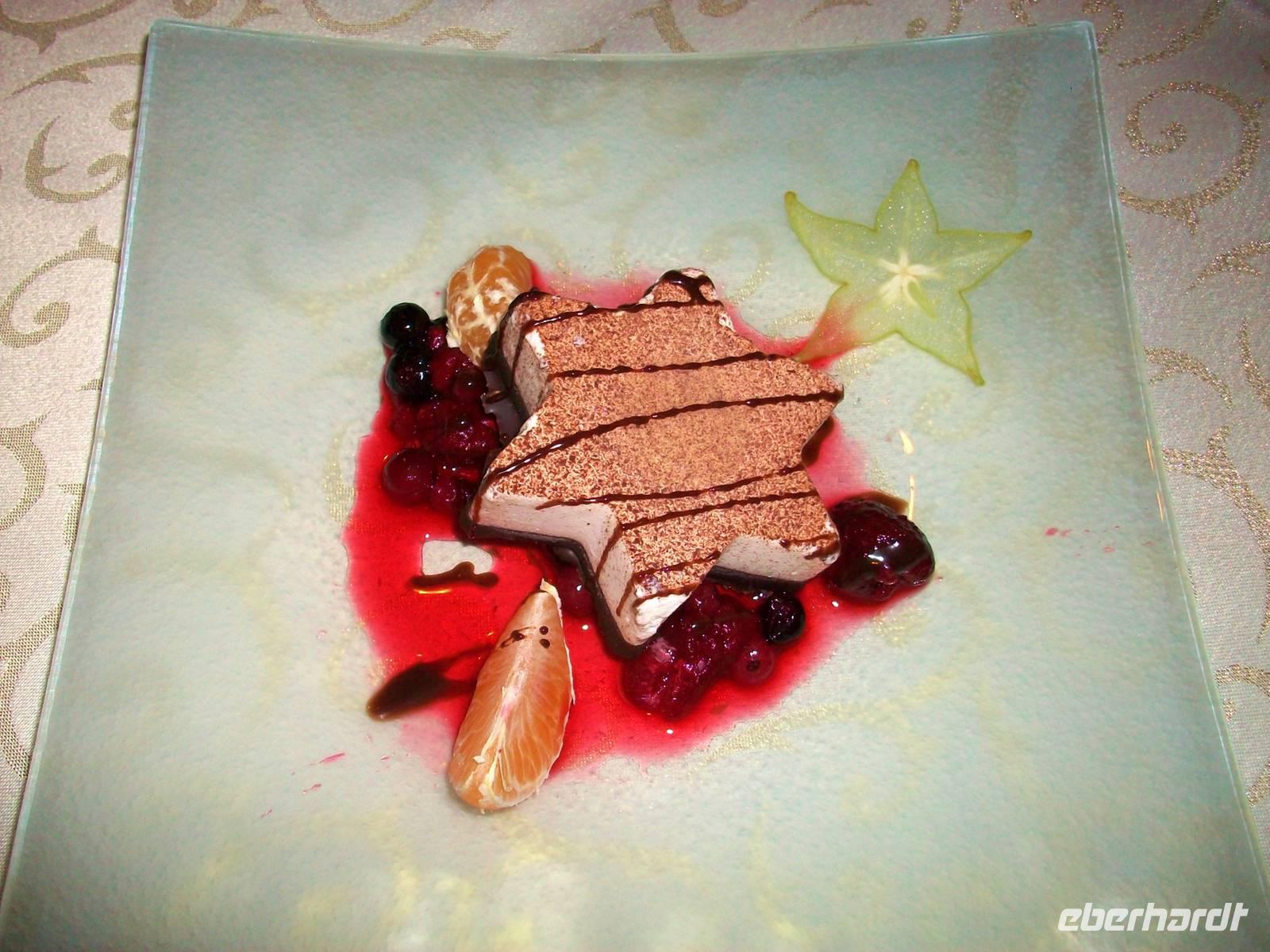 Zunächst wird es das festliche 4- Gang- Menü geben und damit alles reibungslos vonstatten geht, hat man sich Verstärkung bei der Bedienung geholt. Die Mitarbeiter sind, wie auch an den anderen Tagen, in die Tracht des Schwarzwaldes gekleidet und verleihen unserem Aufenthalt nicht zuletzt dadurch viel Authentizität.