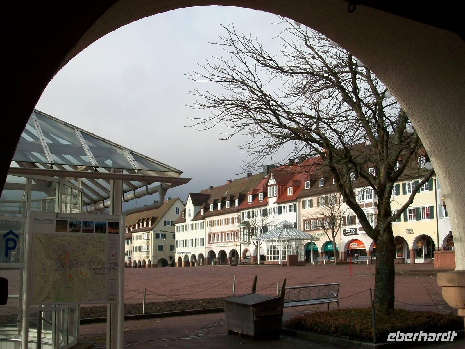 1.1.2014. Die Sonne ist längst aufgegangen und bescheint den Weg den wir nehmen um dem reizvollen Schwarzwaldstädtchen Freudenstadt einen Besuch abzustatten. Es ist kurz vor halb elf als wir auf dem großen Platz ankommen der in seinen Ausmaßen der Größte in Deutschland ist. Zu dieser Stunde ist hier noch alles ruhig, nur die Überreste vom Silvesterfeuerwerk fristen ein trauriges Dasein. Aber das stört uns nicht, hier in dieser gepflegten Stadt einen Bummel zu unternehmen. Dieser große Marktplatz ist umsäumt von malerischen Bürgerhäusern, das Erdgeschoss zieren schöne Arkaden und in diesen Laubegängen kann man den Platz umrunden- immer ein Genuss. Dabei hat sich die Sonne vorsichtig hervorgewagt und dieser Aufenthalt in himmlischer Ruhe tut uns sehr gut nach der stimmungsvollen Silvesterfeier. Überhaupt ist das heute ein ruhiger Tag; nach einer Stunde trifft sich unsere Reisegesellschaft wieder um einem neuen Höhepunkt entgegen zu fahren.