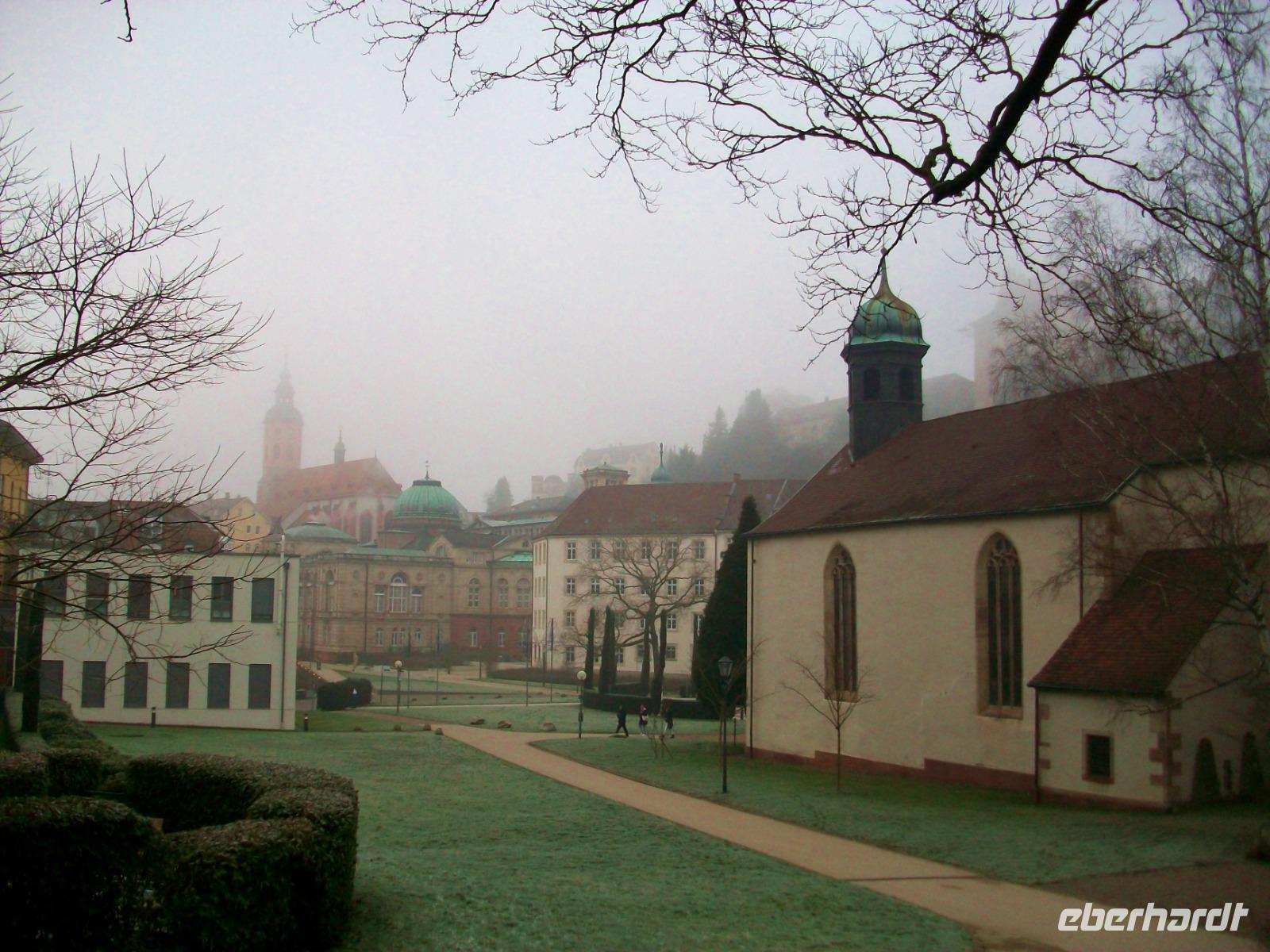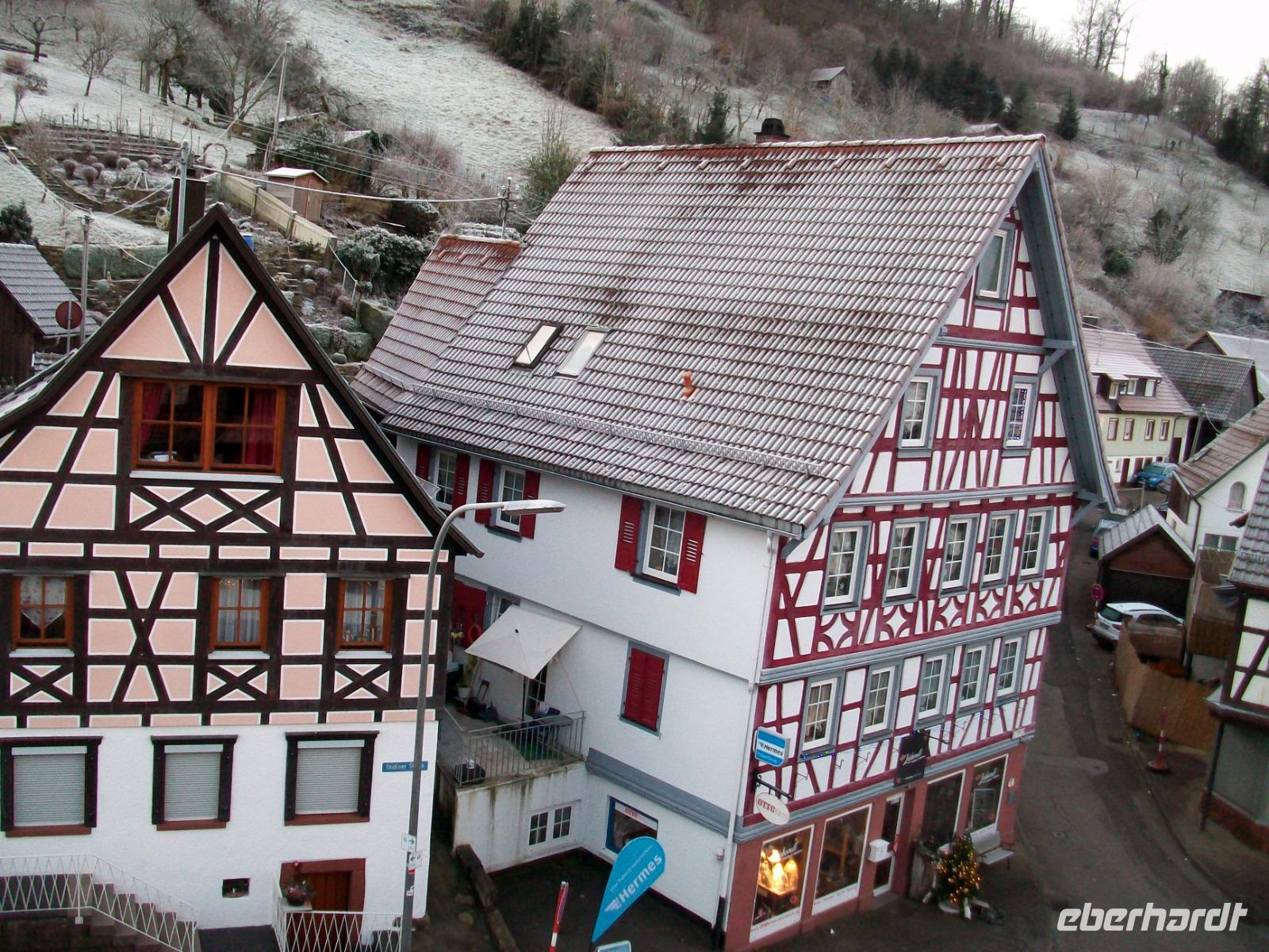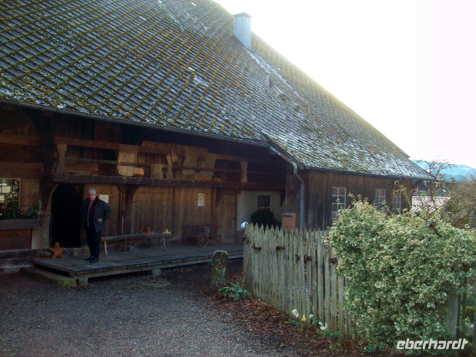 30.12.2019. Stille lag über dem Tal als wir uns im Reich der Träume befanden. Silberbereift glitzern Straßen und Häuser nach frostiger Nacht; der Anfang des Tages wird beim leckeren Frühstück gemacht. Gegen halb neun fährt Max, unser Chauffeur, den Bus vor das Hotel und wir können einsteigen; eine schöne Runde im Schwarzwald steht uns heute bevor. Vor der Ausgelassenheit des Jahreswechsels am morgigen Tag können alle, denen der Sinn danach steht, heute eine romantische Fahrt genießen, vor dem Feiern ist Schauen angesagt und da hat der Schwarzwald einiges zu bieten. Zunächst geht es durchs Kinzigtal weiter flussab, die Sonne hat es allerdings hier etwas schwer ihre Strahlen hineinzusenden. Die Bäume und Wiesen glitzern im Raureif, aber bald hinter Haslach geht es mit uns bergauf und gleichermaßen auf den Höhen der Sonne entgegen. Links und rechts lösen sich Natur und Kultur ab; viele sehenswerte Fachwerkshäuser säumen unsere Bahn und kurz vor Freiburg schwenken wir in das Glottertal ein. Man mag es bei diesem frostigen Wetter gar nicht glauben, aber am Talausgang sind Weinberge zu sehen!