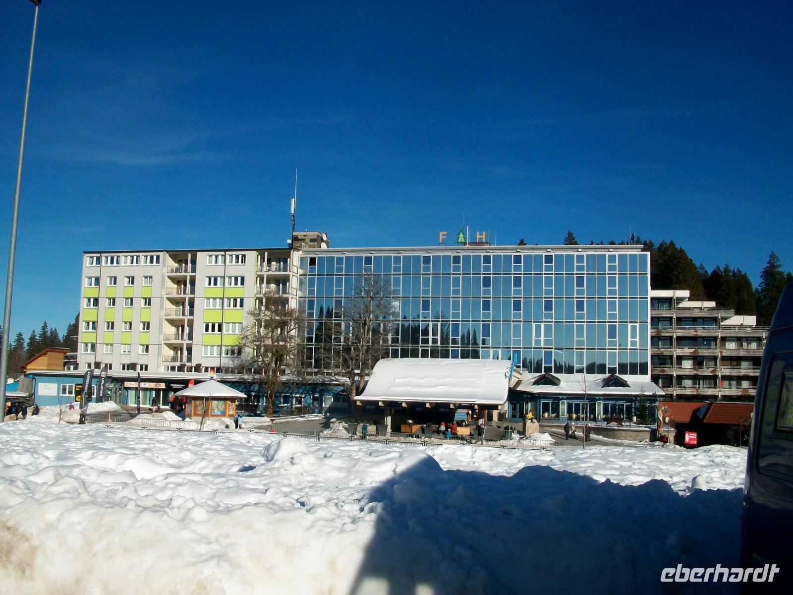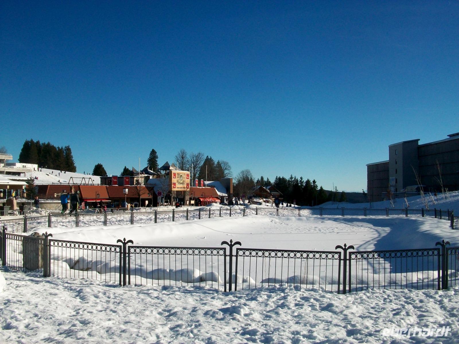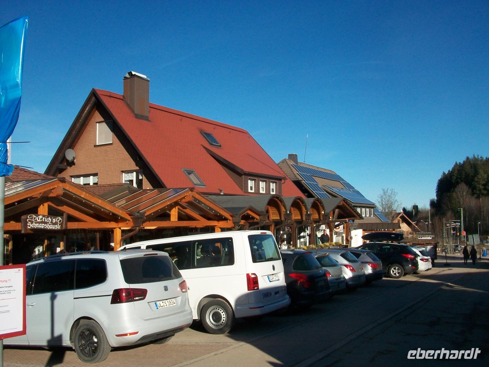 Die Zeit vergeht und die strahlende Nachmittagssonne sieht uns beim Besuch des Feldberges zu. Der Blick wird frei nach Süden und wir erkennen die Erhebungen der Schweiz während wir aufpassen müssen, dass wir hier oben nicht den Abfahrern und Snowboardern in den Weg geraten. Wie das hier schwirrt von den Wintertouristen, das ist Lebensfreude pur die uns auch mitreißt, wer soll da noch schlechte Laune haben?