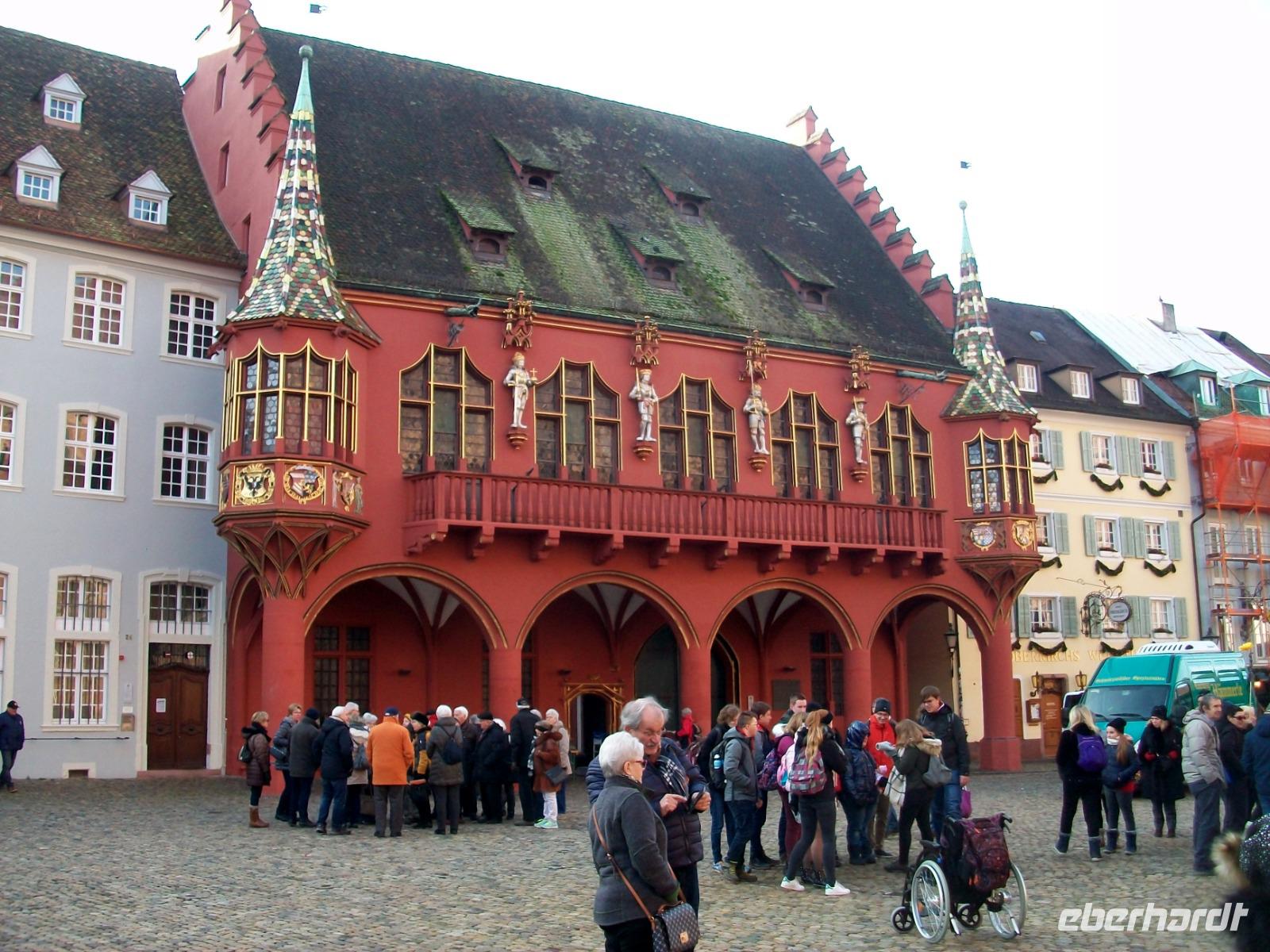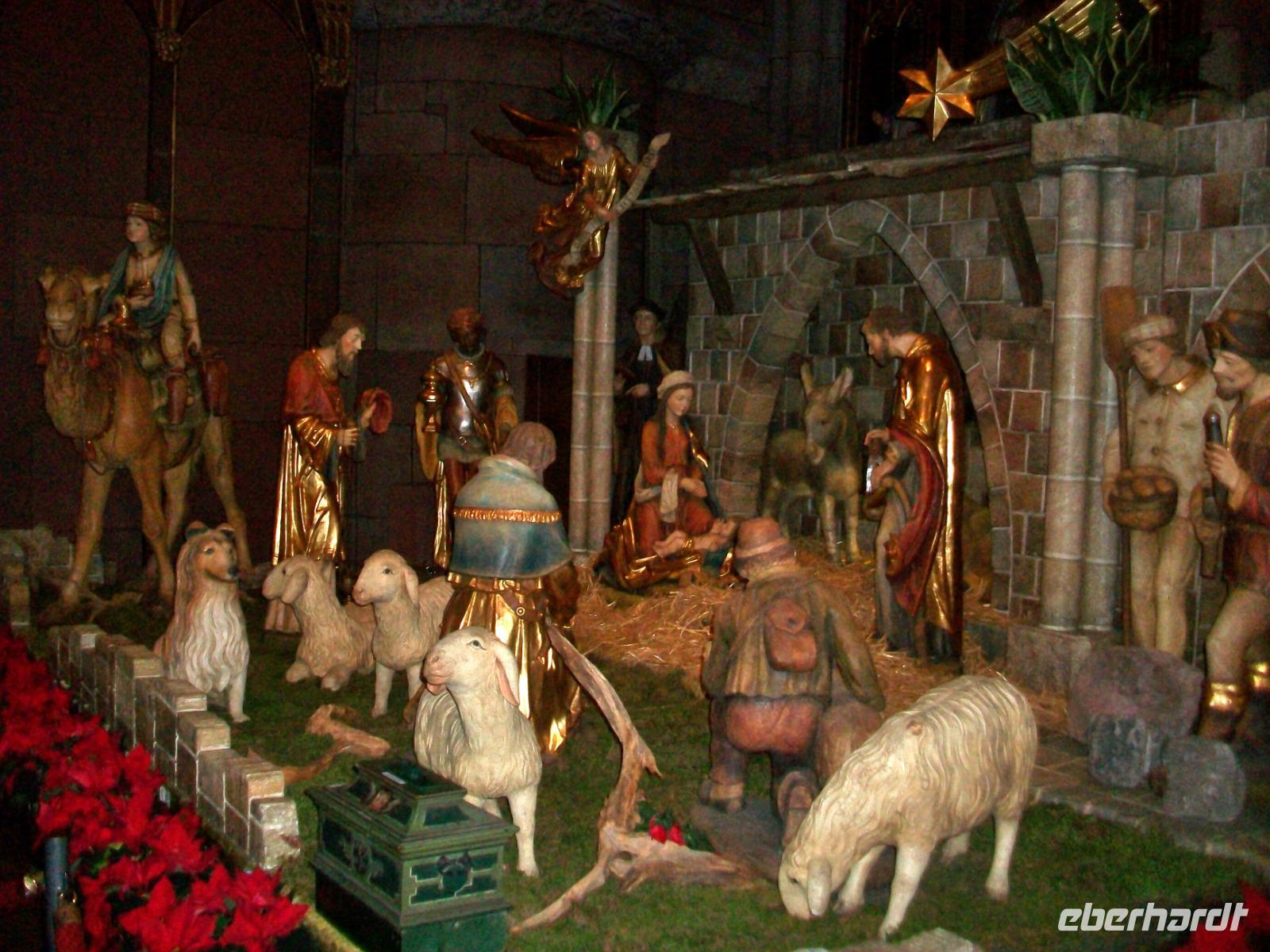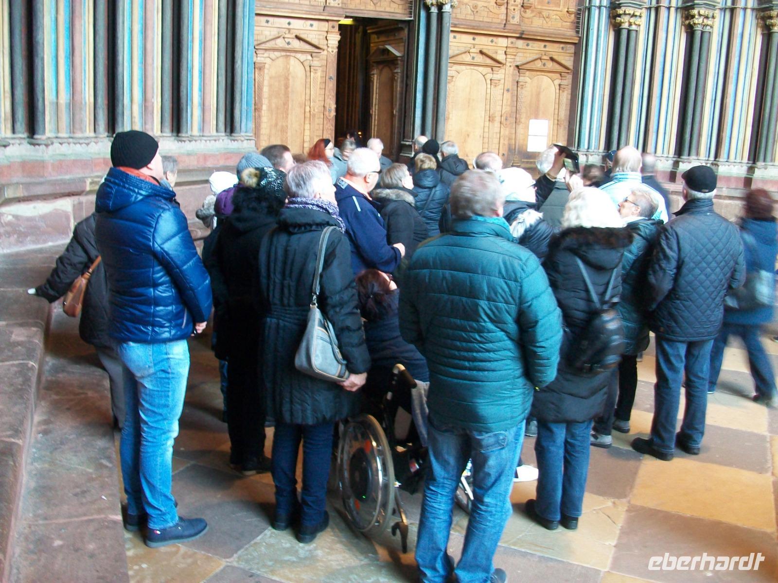 Kurz vor elf erreichen wir nun den Hauptort des Breisgaus: Freiburg. Hier sind wir an diesem Tag nicht allein; zahlreiche Reisegesellschaften haben sich dasselbe vorgenommen wie wir. Mit zwei Führern gelangt unsere geteilte Gruppe in die direkte Innenstadt. Staunend stehen wir vor dem gigantischen Bau des Münsters um bald im Hauptschiff dieses Gotteshauses zu verschwinden. Alles ist hier sehr sehenswert, die Glasfenster, der Altar und natürlich die Krippe die noch vom Weihnachtsfest stehen blieb.