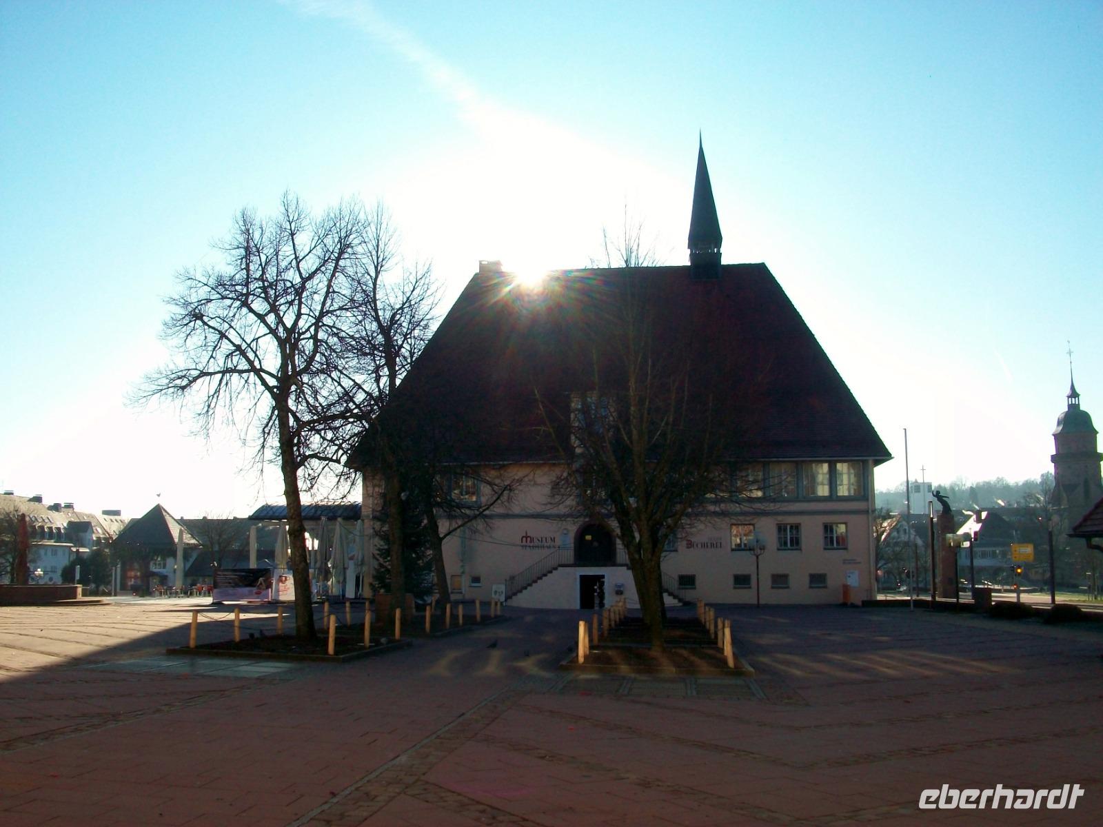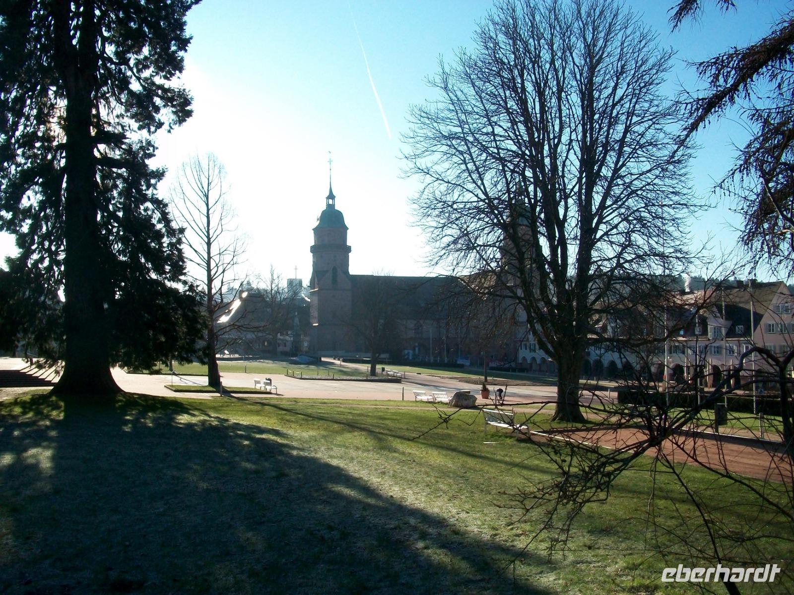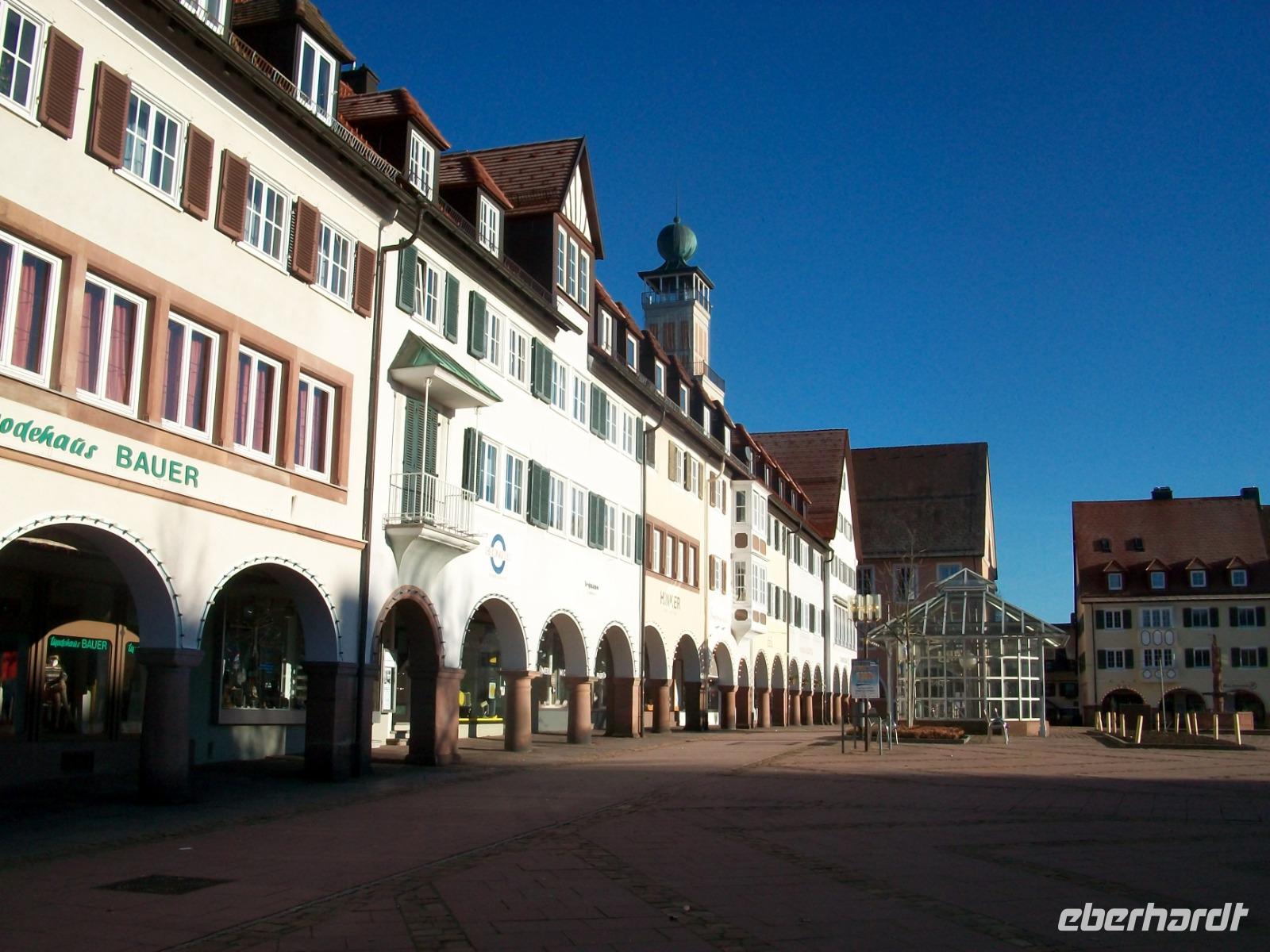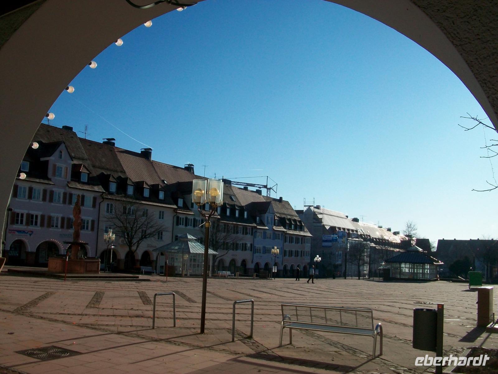 1.1.2020. Auch heute verlässt uns Petrus mit seiner guten Laune nicht. Die Sonne lacht als wir den Weg in Richtung Freudenstadt nehmen. Auf dem riesigen Marktplatz angelangt, genehmigen wir uns hier an diesem Neujahrsmorgen eine Stunde Zeit. Die ringsum stehenden Häuser haben alle wunderschöne Lauben hinter denen sich so manches Geschäft verbirgt, doch zum Einkaufen ist heute der falsche Tag. Dennoch bringt uns der Spaziergang an der frischen Luft, unter den Arkaden entlang oder zur Kirche hinüber, eine angenehme erste Impression, und die Ruhe des verschlafenen Nests einen Kontrast zur Ausgelassenheit der letzten Nacht.