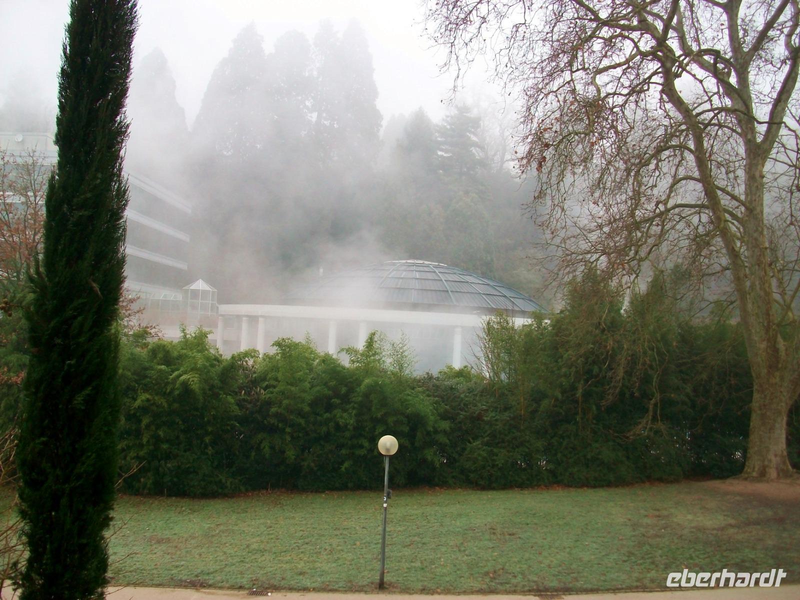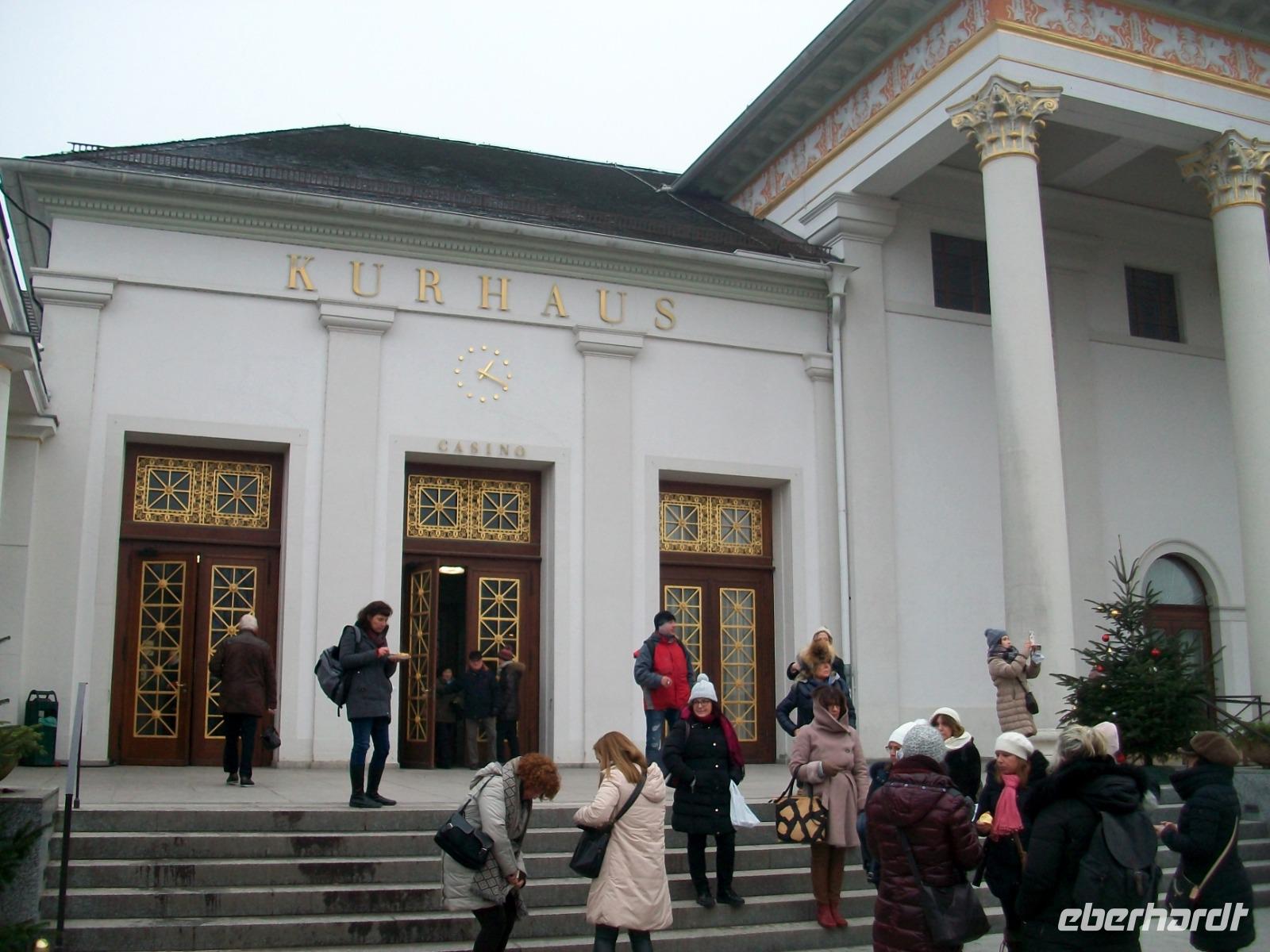 Da nun dieser Ort im Tal liegt, tauchen wir ab in die Nebelsuppe; aller Sonnenschein ist verschwunden, trübe Stimmung liegt über dem frostigen Nobelort. Das hält uns aber nicht davon ab, hier ein wenig auf Erkundung zu gehen. Auch sind schon wieder viele Menschen hier unterwegs, einige davon auf dem Weg ins Casino um das große Los zu ziehen.