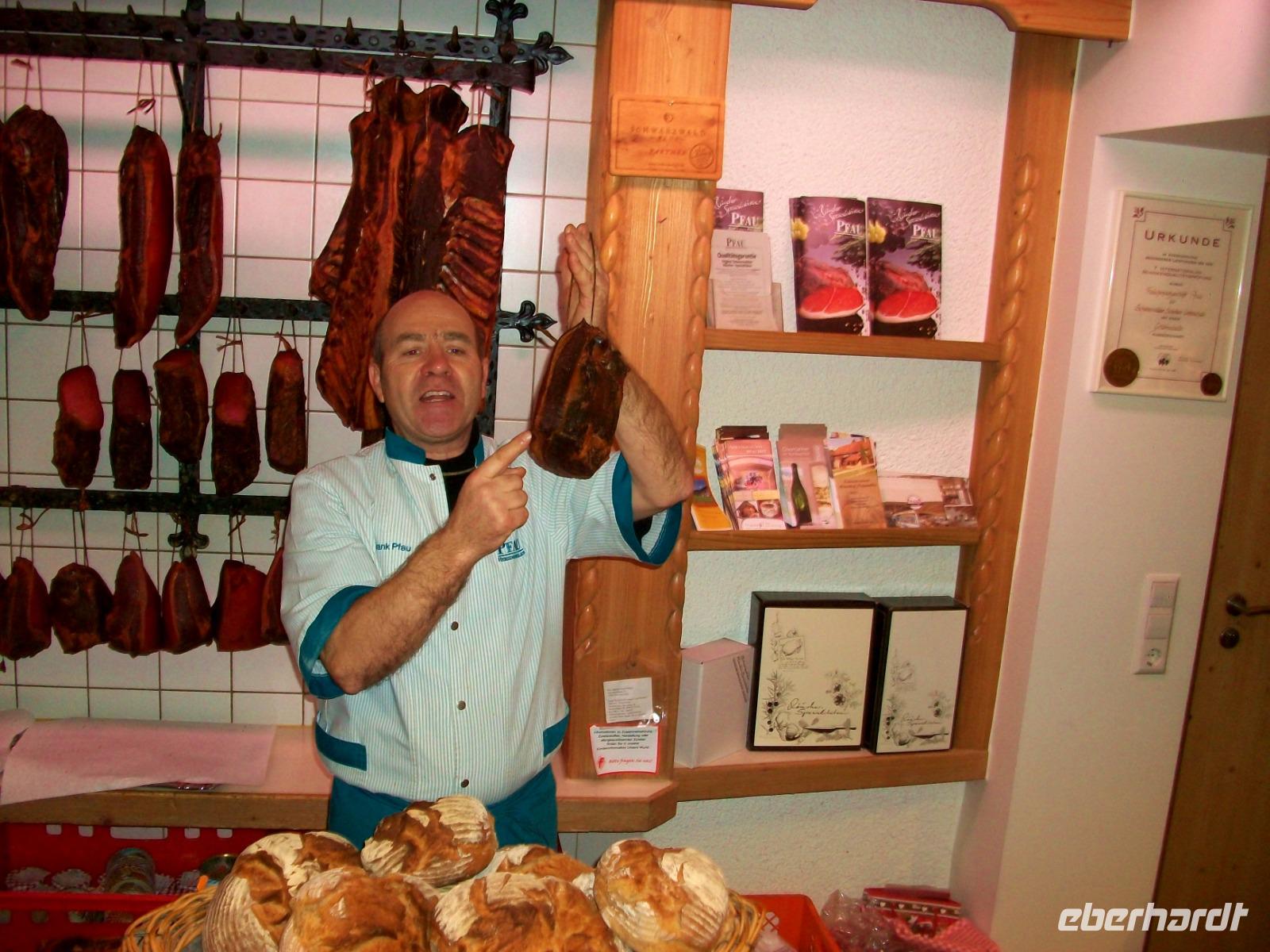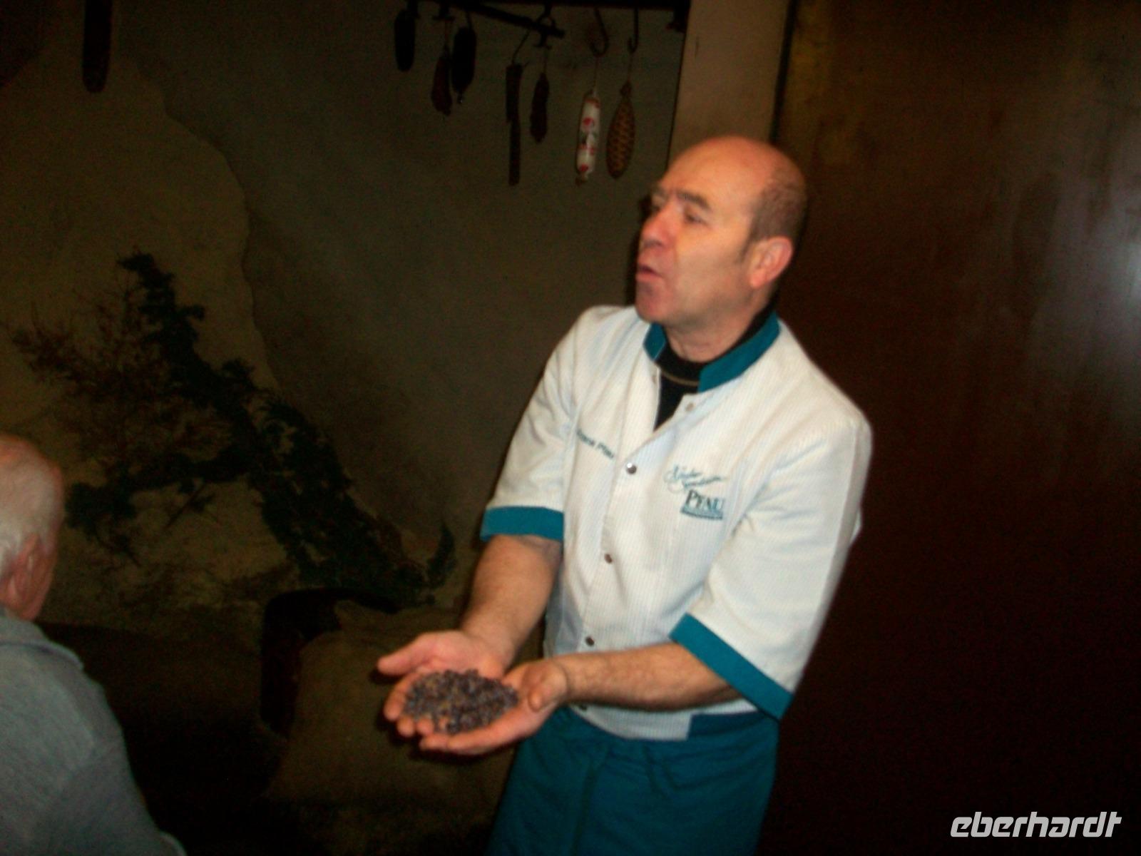 Dann, im Verkaufsraum, gibt uns Herr Pfau Kostproben von seiner guten Ware; das macht dann die Entscheidung leicht, einiges davon mit nach Hause zu nehmen und der