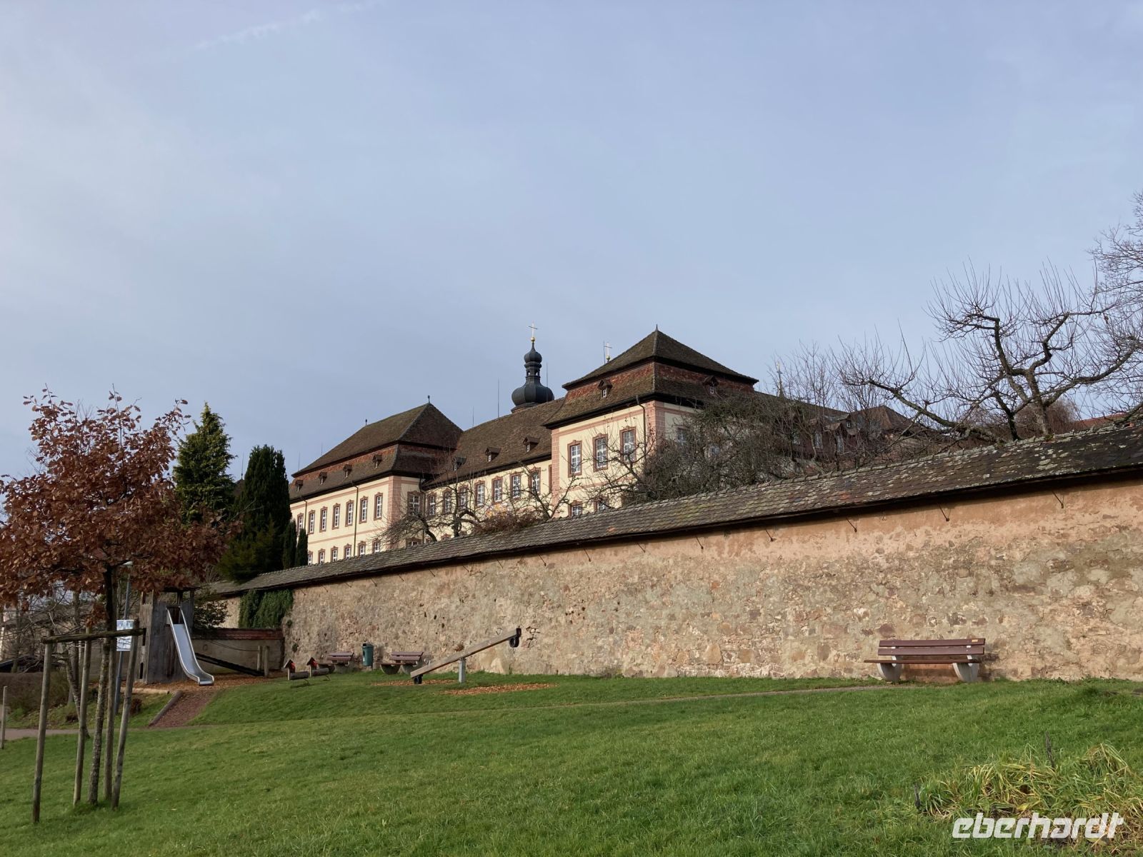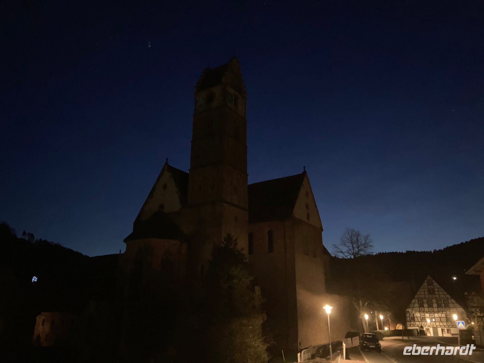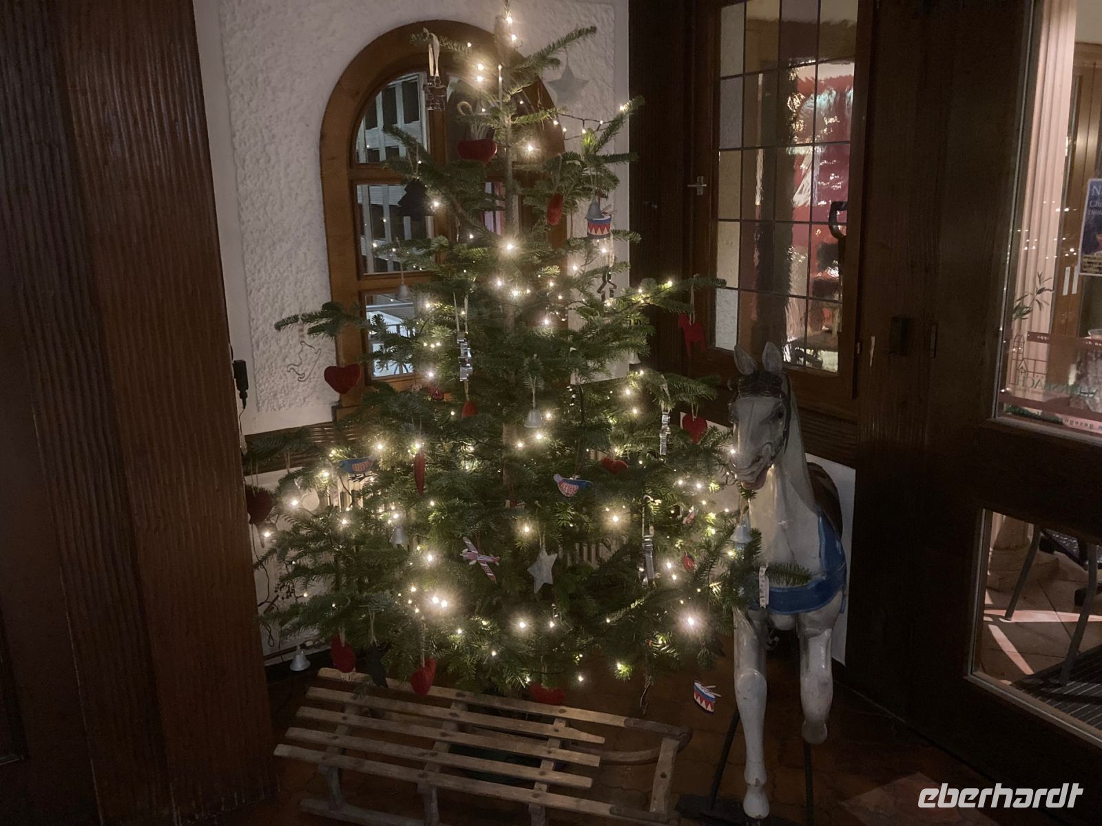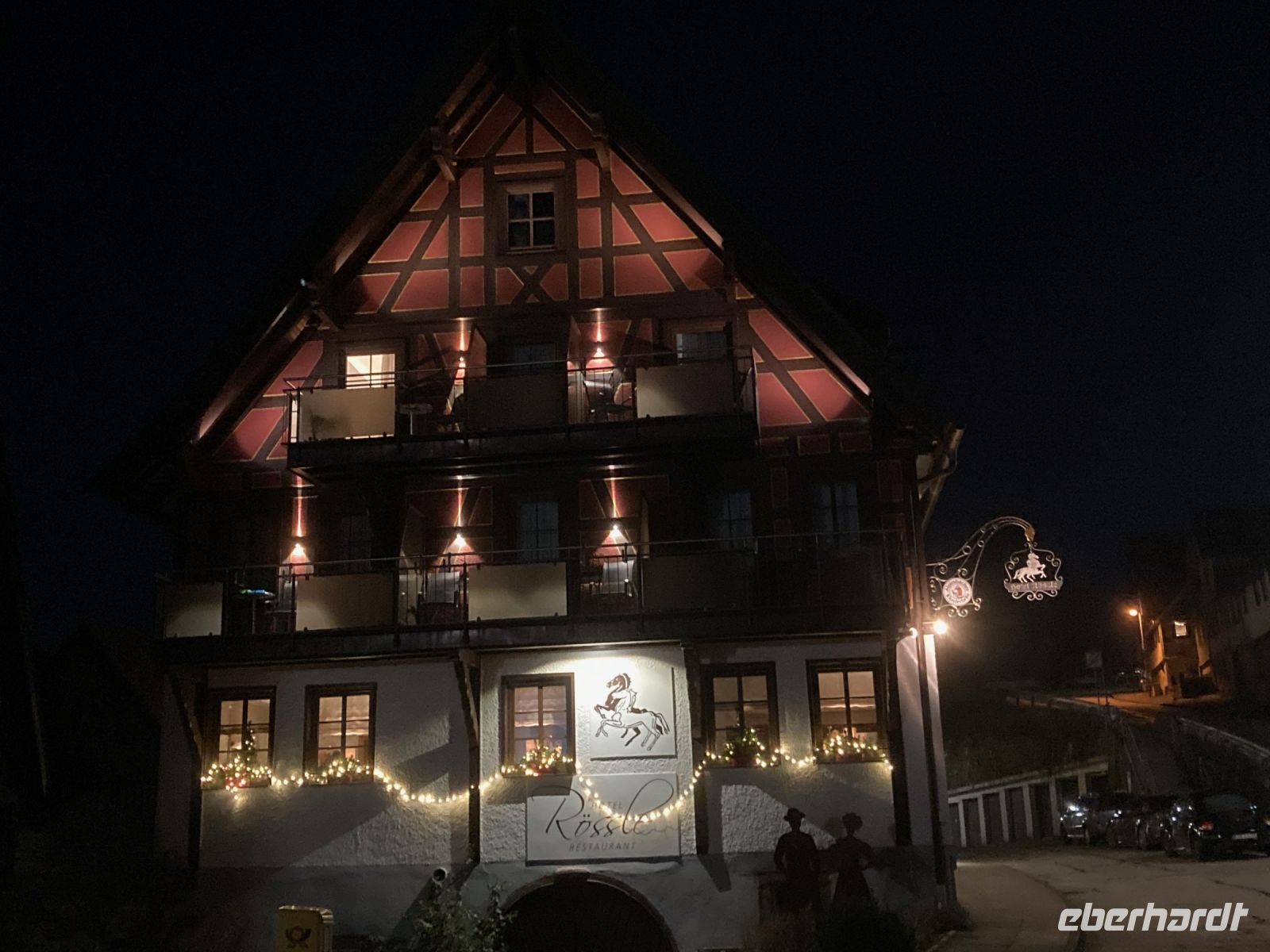 Überpünktlich fahren wir vom Flughafen Dresden los, denn wir freuen uns alle auf eine schöne Auszeit im Schwarzwald, gemeinsame Ausflüge und eine fröhliche Silvesterfeier. Nach drei weiteren Zustiegen in Sachsen sind wir schon fast vollzählig. Wir durchqueren das Vogtland und Franken, fahren an Nürnberg vorbei und machen auf der A6 auf dem Rasthof Kammersteiner Land schließlich unsere Mittagspause mit dem bewährten Eberhardt-Drei-Gänge-Menü. Inzwischen haben wir uns auch ein bisschen beschnuppert und festgestellt, dass es mit dieser Gruppe sehr lustig werden kann. Bald ist dann auch das richtige Bundesland — Baden-Württemberg — erreicht und unser Chauffeur Jens steuert den Hauptbahnhof von Karlsruhe an. Dort warten bereits die letzten vier Gäste auf uns, die wir natürlich ebenso herzlich an Bord begrüßen. Bei Rastatt verlassen wir die Autobahn. Vor uns liegt bereits der Schwarzwald, das größte und höchste Mittelgebirge Deutschlands. Den Regenschauer bei Karlsruhe haben wir lange hinter uns gelassen: Die Sonne schickt uns einen letzten freundlichen Gruß, bevor sie hinter den Vogesen untergeht und es langsam dunkel wird. Dafür sorgen Weihnachtsbäume und Weihnachtsbeleuchtung für eine romantische Stimmung, während wir das Murgtal hinauf in Richtung Freudenstadt fahren. Dahinter wartet dann das Kinzigtal und damit auch unser Ziel: Alpirsbach im Schwarzwald. Im Hotel Rössle werden wir mit einem Glas Sekt empfangen und von der Juniorchefin willkommen geheißen. Wir beziehen unsere hübschen Zimmer und treffen uns dann zum ersten Abendessen wieder. Drei Gänge plus Salatbuffet — für unser leibliches Wohl ist auf dieser Reise jedenfalls gesorgt.