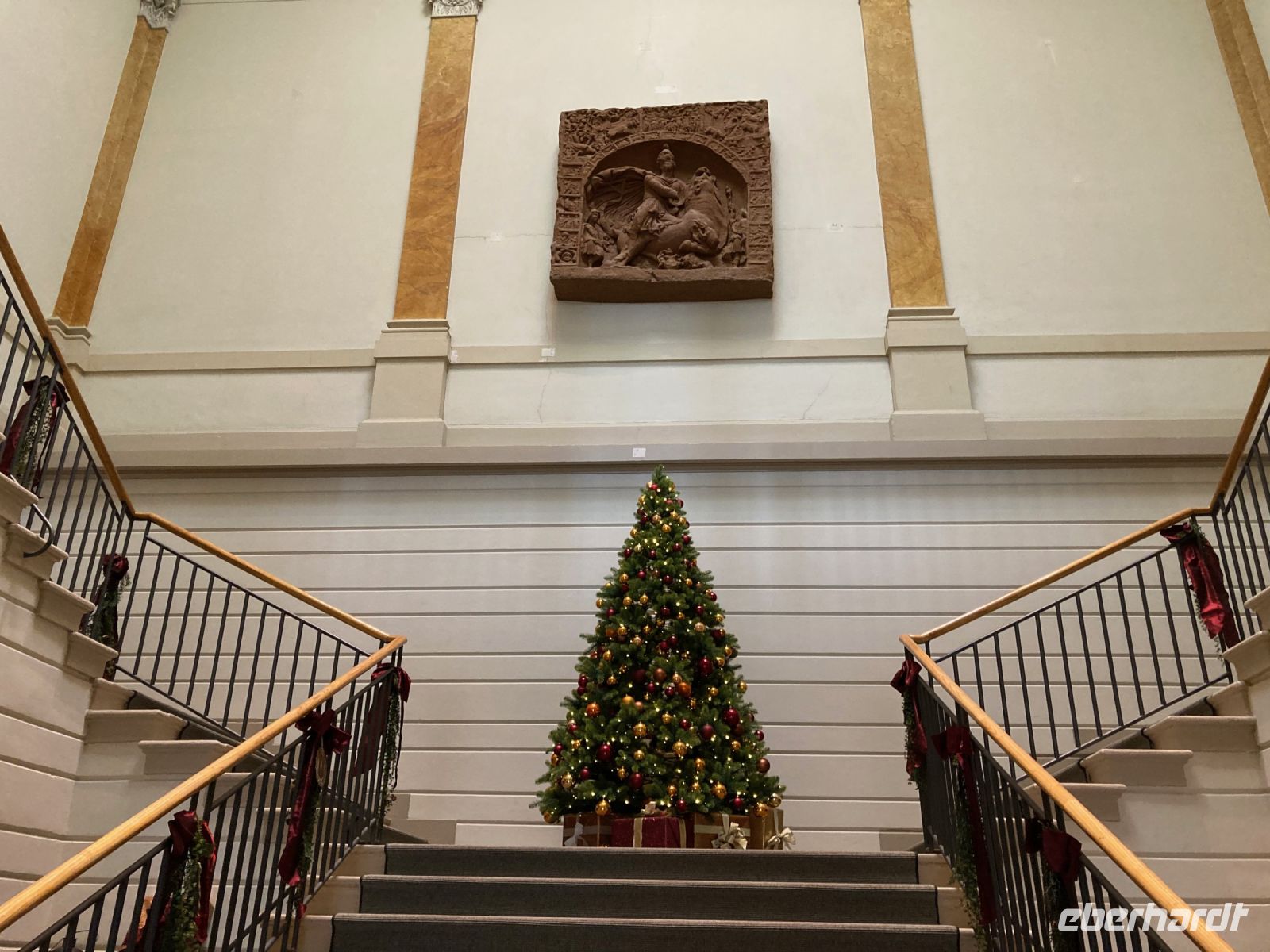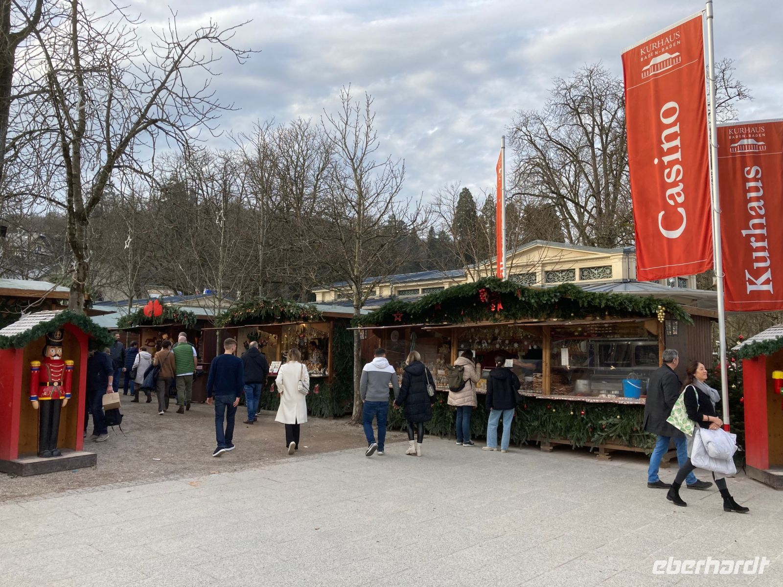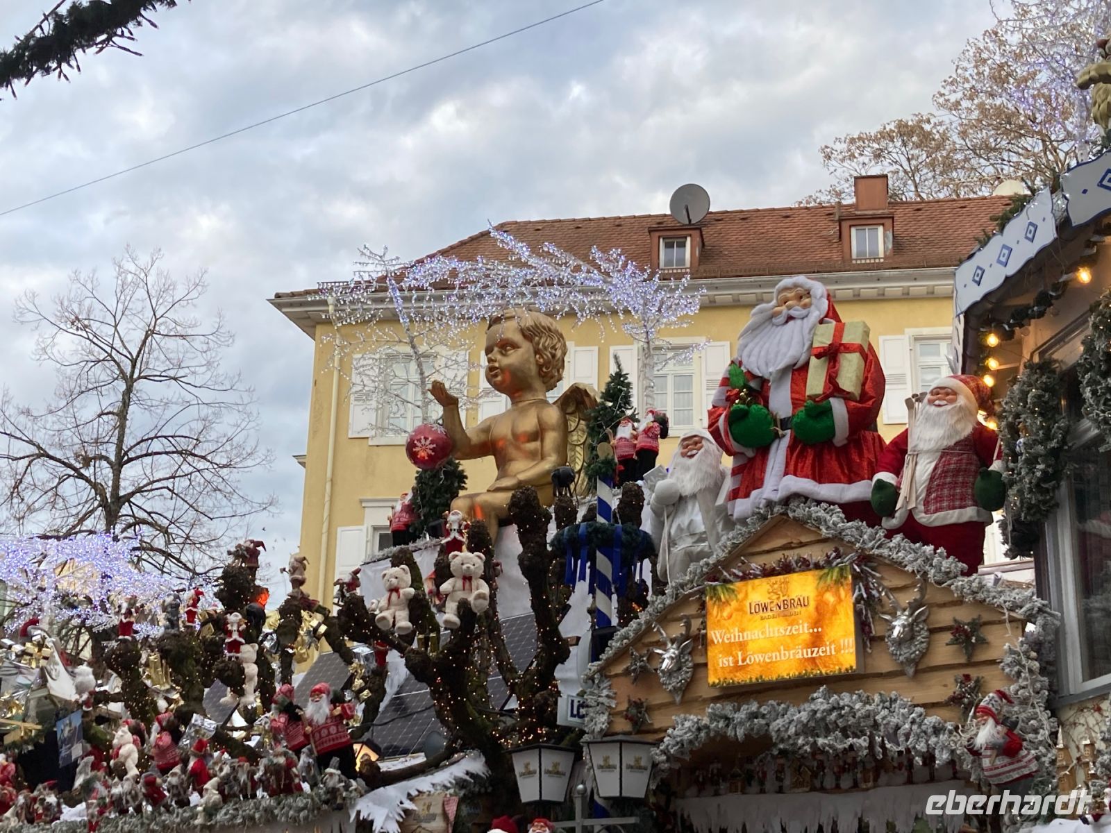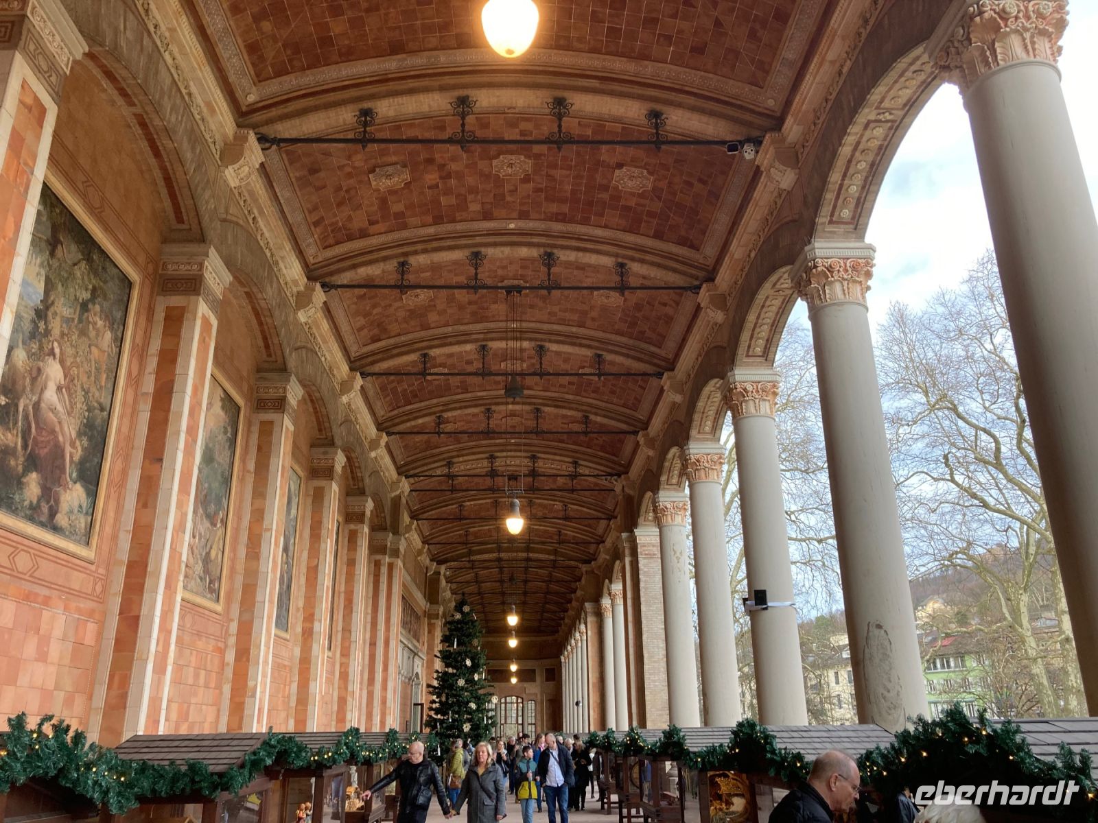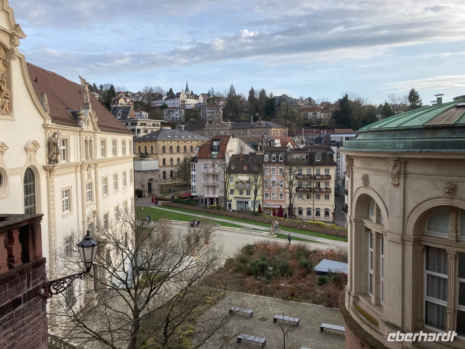 Ach, ein neues Jahr könnte wesentlich schlimmer beginnen als mit unserem leckeren und reichhaltigen Frühstücksbuffet, 18 °C, blauem Himmel und einem Ausflug nach Baden-Baden über die Schwarzwaldhochstraße. Und da Neujahr ist, bitte ich auch erst um Viertel nach 10 zur Abfahrt. In Freudenstadt erfolgt der erste Halt. Wir schlendern über den größten Marktplatz Deutschlands und genießen dabei die viel zu warme Wintersonne. Die als Winkelkirche errichtete Stadtkirche erregt dabei unsere besondere Aufmerksamkeit, denn ein solcher Grundriss ist sehr selten zu sehen. Hinter Freudenstadt beginnt dann die 60 km lange Schwarzwaldhochstraße bis Baden-Baden. Und natürlich kommt jetzt das schöne Wetter voll zur Geltung. Sonne und blauer Himmel ermöglichen uns eine unglaublich gute Fernsicht bis zu den Vogesen. Gerade auch beim Fotostopp am Mummelsee können wir diese Aussicht genießen. Mummeln bzw. Nixen sehen wir dafür in dem kleinen See unterhalb der Hornisgrinde zum Glück nicht, sonst wäre es wohl um uns geschehen. Dafür entpuppt sich der Reiseleiter mit spontan anprobierter Schwarzwald-Perücke zu meinem Leidwesen als allzu beliebtes Fotomotiv. Also schnell weiter nach Baden-Baden, damit meine Gäste auf andere Gedanken und Fotomotive kommen. In der weltberühmten und -berüchtigten Kur- und Casinostadt hat noch der Weihnachtsmarkt geöffnet. Der himmlische Duft und erstaunlich moderate Preise verführen uns zu einem kleinen Mittagsimbiss, bevor wir Innenstadt und Kuranlagen erkunden. Leider hat das Casino aufgrund einer Veranstaltung geschlossen, sodass es mit dem plötzlichen Reichtum wieder einmal nichts wird. Aber das ist vielleicht auch besser so; schon der gute Dostojewski hatte sich ja in tiefste Schulden gespielt. Im Friedrichsbad lassen sich zumindest die Eingangshalle und der Festsaal besichtigen und in der Innenstadt gibt es am Löwenbräu einen Platz mit sehr viel kitschiger Weihnachtsdekoration zu bestaunen. Viel Volk ist heute unterwegs, das gute Wetter lockt alle nach draußen. Die zwei Stunden Aufenthalt vergehen wie im Flug und wir schlendern gemütlich zurück zum Festspielhaus, wo unser Bus schon auf uns wartet. Wie schon bei der Anreise fährt uns Jens am Nachmittag durch das Murgtal nach Alpirsbach – ein letztes Mal geht es ins Hotel zurück. Diesmal ist es noch heller, sodass wir von der Umgebung mehr mitbekommen. Vor dem Abendessen können wir noch einen kleinen Spaziergang durch Alpirsbach machen, mal kurz bis zum Kloster laufen. Zum Abendessen gibt es eine Maultasche als Vorspeise, womit wir auch noch in den Genuss dieser lokalen Spezialität kommen. Das Dessert signalisiert dann langsam aber sicher, dass wir nun die Koffer packen sollten, denn morgen geht es (leider) nach Hause.