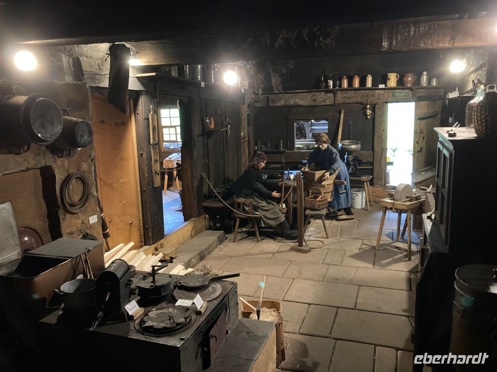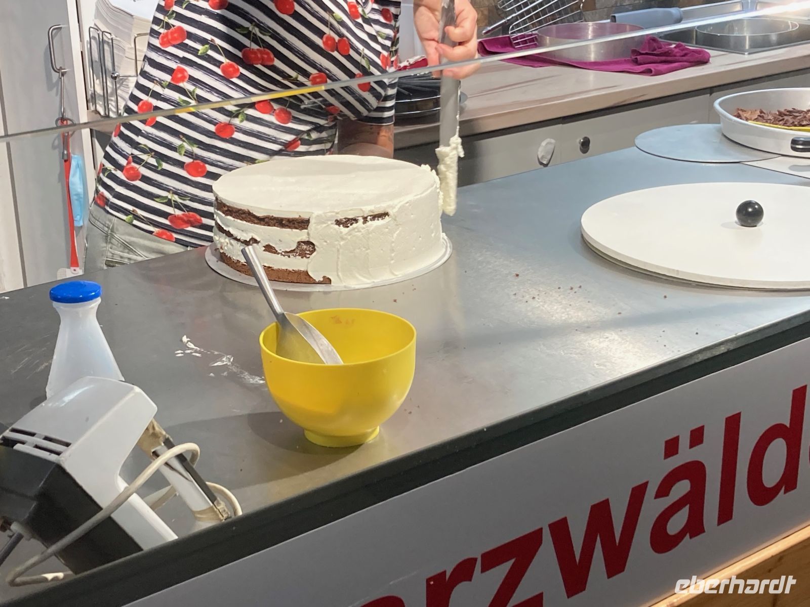 Auch das Frühstücksbuffet ist reichhaltig bestückt, sodass wir gestärkt und guter Dinge in den Tag starten. Unser erster Ausflug beginnt im morgendlichen Nebel, der das Kinzigtal bedeckt. Wir wollen heute bis zum Feldberg fahren und dort lernen, wie eine echte Schwarzwälder Kirschtorte entsteht. Vorsichtig manövriert uns Jens durch die engen und vernebelten Straßen von Alpirsbach bis zur Bundesstraße und dann gen Süden aus dem Ort heraus. Die erste Stunde unserer Fahrt steht ganz im Zeichen der Schwarzwaldklinik, denn das hübsche Fachwerkstädtchen Schiltach im Kinzigtal diente z. B. als Kulisse für den fiktiven Ort, in dem die Serie spielt. Nachdem wir das Tal der Kinzig verlassen haben und nach Süden in Richtung Freiburg fahren, ist auch die Sonne wieder an unserer Seite und schenkt uns einen lieblichen Vormittag. Apropos lieblich: Im Glottertal steht nicht nur die Schwarzwaldklinik — es ist auch ein gutes Weinanbaugebiet mit steilen Hängen und der deutschlandweit höchsten Lage. Wir fahren durch das schöne Tal bis ans Ende und dann hinauf bis nach St. Peter, wo wir unsere erste Pause einlegen. Wir haben zudem Glück und können nach kurzer Wartezeit (wegen Reinigung) die schöne barocke Klosterkirche mit ihren herrlichen Fresken und zwei Orgeln besichtigen. Gegen die Kälte hilft ein Kaffee, Tee oder Glühwein im Café am kleinen Marktplatz. Aber es soll ja in den nächsten Tagen noch richtig warm werden. Die Aussicht über die Berge des Schwarzwalds ist jedenfalls fantastisch, als wir über St. Märgen zum Feldberg weiterfahren. Auch den Titisee passieren wir auf dem Weg. Am Feldberg liegt dann sogar noch etwas Schnee, wenngleich es zum Skifahren nicht mehr reicht. Wir stärken uns mit Würstchen und beschnarchen dann gründlich die Gegend, wobei wir uns von der Kälte und später dem leichten Regen nicht abhalten lassen. Wie gesagt, es soll ja in den nächsten Tag noch richtig warm werden. So langsam verspüren wir nun Kaffeedurst. Zum Glück sind wir schon angemeldet im Café zum g’scheiten Beck, das nur wenige Fahrminuten entfernt ist. Wir werden in die Backstube im Keller gelotst und nehmen gespannt unsere Plätze ein, denn nun wollen wir endlich wissen, wie sie entsteht, so eine leckere Schwarzwälder Kirschtorte! Jede Menge Sahne muss rein — klar. Und natürlich das gute Kirschwasser! Die preisgekrönte Chefin persönlich verrät uns das Rezept und zaubert das Meisterwerk mit geschickten Händen zusammen. Wenn sie es macht, sieht es so einfach aus! Sogar ein abgewandeltes Rezept für die ungeliebte Schwiegermutter bekommen wir mit auf den Weg. Oben im Café warten nun Tortenstück und Käffchen auf uns. Nur der liebe Jens darf nicht probieren, denn es ist ja ganz viel Kirschwasser drin. Das wiederum wird nebenan in der Schnapsfabrik hergestellt, die wir am Ende des Aufenthalts ebenfalls besichtigen. Und natürlich dürfen wir auch hier ein Schlückchen vom selbst gebrannten probieren. Die Stimmung ist entsprechend gut im Bus, als wir uns auf den Heimweg machen. Draußen regnet es nun und die Dunkelheit bricht herein. Perfekt für eine kleine Märchenstunde, und so zücke ich das große dicke Märchenbuch und beginne vorzulesen aus dem berühmten Schwarzwaldmärchen „Das kalte Herz“.