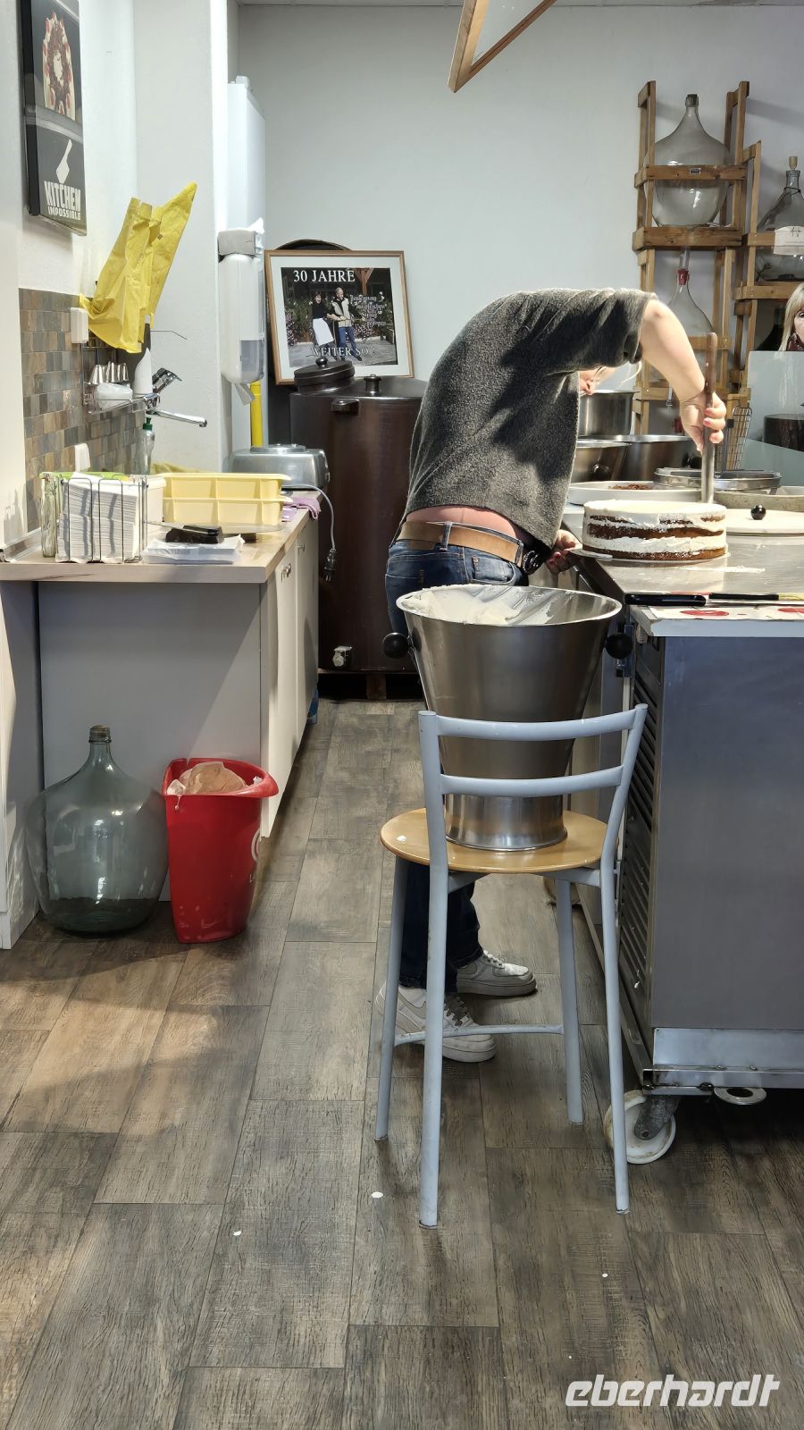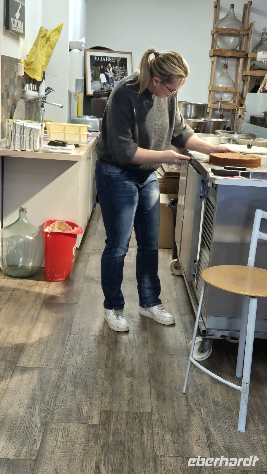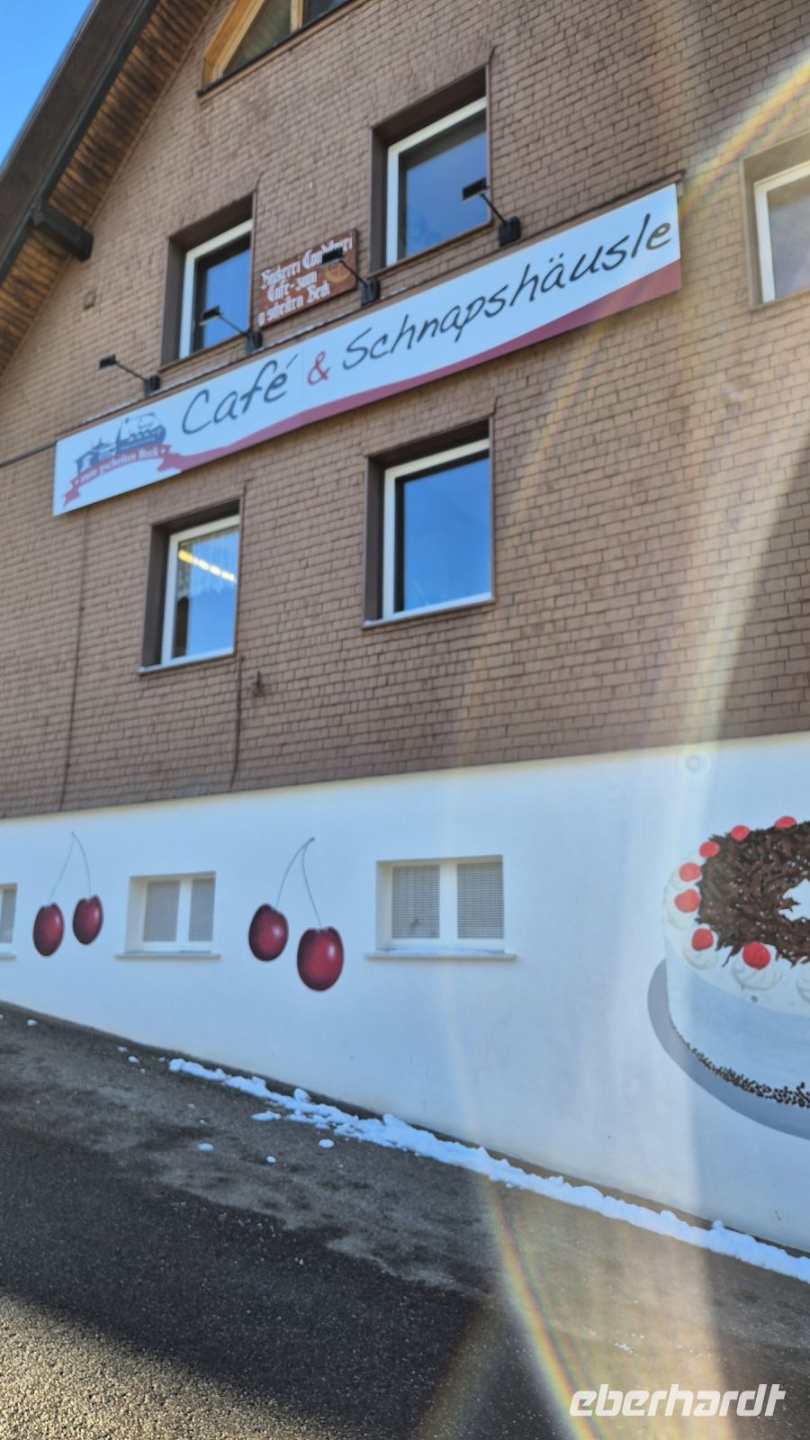 Unser erstes Ziel heute ist Bärenthal in der Gemeinde Feldberg, genauer das Café "Zum gscheite Beck" - hier sollen wir lernen, wie man eine echte Schwarzwälder Kirschtorte herstellt. Wir werden direkt in die Backstube gelotst und die preisgekrönte Juniorchefin demonstriert uns eindrucksvoll, unter Einsatz von viel Schlagsahne und noch mehr Schlagfertigkeit, wie die Leckerei gemacht wird. Wichtigste Zutat ist natürlich das Kirschwasser, das direkt in der hauseigenen Brennerei gleich nebenan hergestellt wird. Nachdem wir nun brav gelauscht haben und der Anblick der köstlichen Torte uns das Wasser in den Mündern hat zusammenlaufen lassen, dürfen wir nun endlich eine Etage höher im Café unser Stück in Empfang nehmen. Was soll man sagen? Güet isch's!