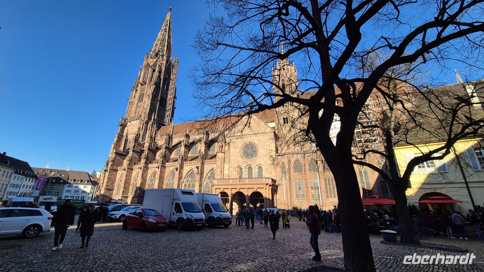 Am letzten Tag des Jahres führt uns unser Weg in die Universitätsstadt Freiburg. Wir fahren durch das Kinzigtal vorbei an den Fasnachtshochburgen Wolfach und Hausach, dann geht es weiter Richtung Süden durch das Elztal. In Freiburg angekommen treffen wir schnell auf unsere beiden Stadtführer. Wir teilen uns in zwei Gruppen auf und dann geht es auch schon los in die kleine, aber sehr schöne Altstadt. Schnell werden wir natürlich darauf aufmerksam gemacht, tunlichst nicht in die berühmten Bächle zu treten, auch wenn in diesen gerade kein Wasser fließt. Angelegt wurde dieses Wassersystem von den Baukünstlern der Zähringer als Brandschutz, heute sagt man, wer hineintritt muss einen Freiburger oder eine Freiburgerin heiraten - oder bricht sich im schlimmsten Fall ein Bein. Also besser nicht ausprobieren.