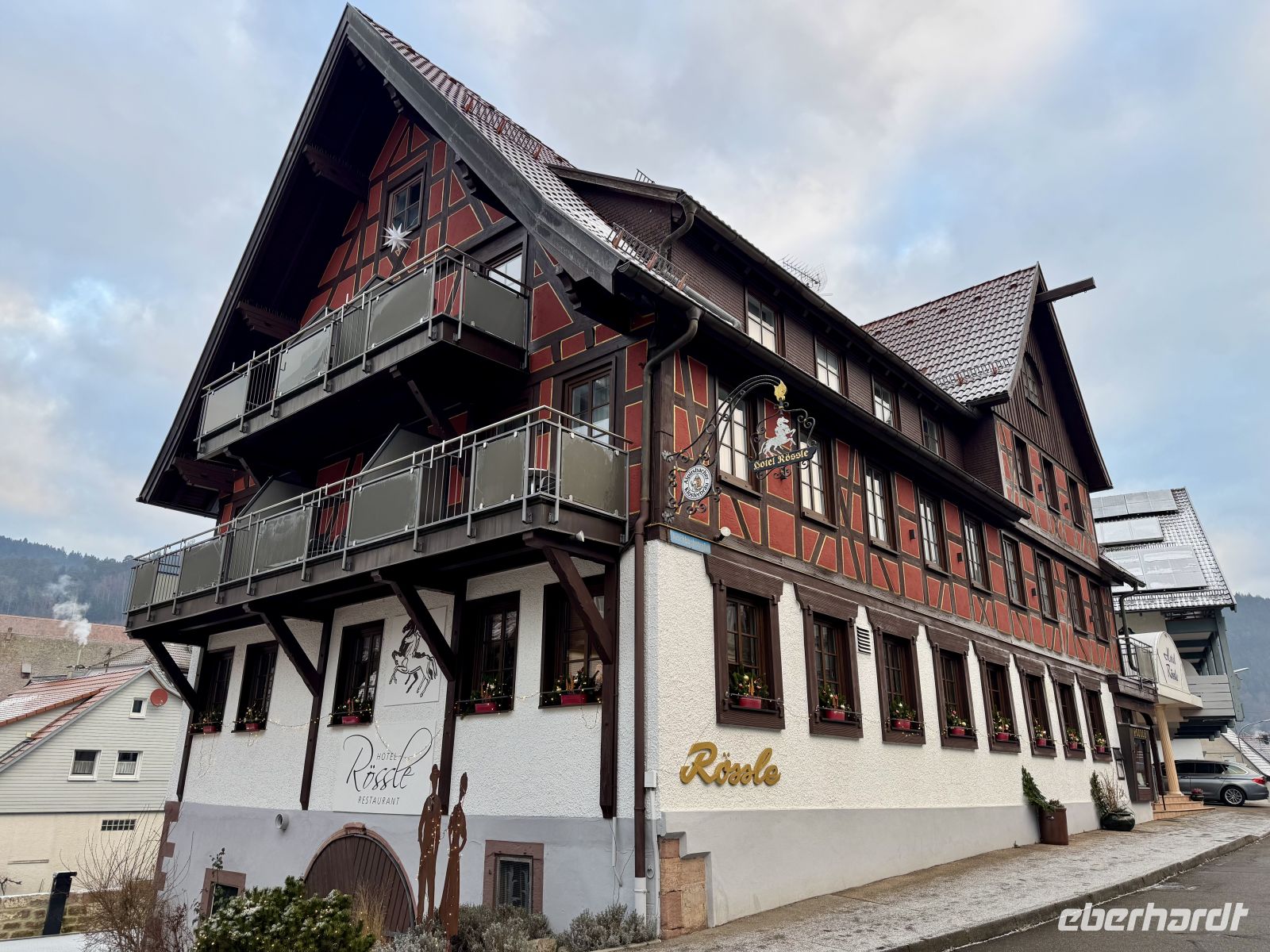 Insgesamt 39 Reisegäste freuen sich auf eine Kurzreise in den schönen Schwarzwald über den Jahreswechsel. Vom Flughafen Dresden aus beginnen wir unsere Anreise. In Nossen, Chemnitz, Stolberg und auf dem Rasthof Vogtland steigen weitere Gäste zu. Unser Chauffeur Heinz navigiert uns sicher durch das Schneegestöber, das uns zwischen Zwickau und Plauen ereilt. Auch sonst lässt er sich nicht aus der Ruhe bringen. Hinter Nürnberg machen wir unsere Mittagspause — für ausreichend Würstchenproviant ist gesorgt — und hinter Heilbronn eine Kaffeepause mit Weihnachtsplätzchen. Schließlich verlassen wir die Autobahn 81 und fahren in den Schwarzwald hinein. Auf die Minute um 17 Uhr treffen wir in Alpirsbach ein und werden von der Wirtin mit Sekt empfangen. Sie heißt uns herzlich willkommen und freut sich auf ein paar schöne Tage mit uns. Nachdem wir unsere Zimmer bezogen haben, treffen wir uns um 18:30 Uhr zum ersten gemeinsamen Abendessen wieder. Dabei verlieben wir uns am Salatbuffet sogleich in den hausgemachten Kartoffelsalat, der in den nächsten Tagen nicht nur bei uns hoch in Kurs stehen wird. Auch alles andere schmeckt sehr gut, sodass ich optimistisch bin, dass wir hier im Schwarzwald gemeinsam ein paar angenehme Tage verbringen werden.