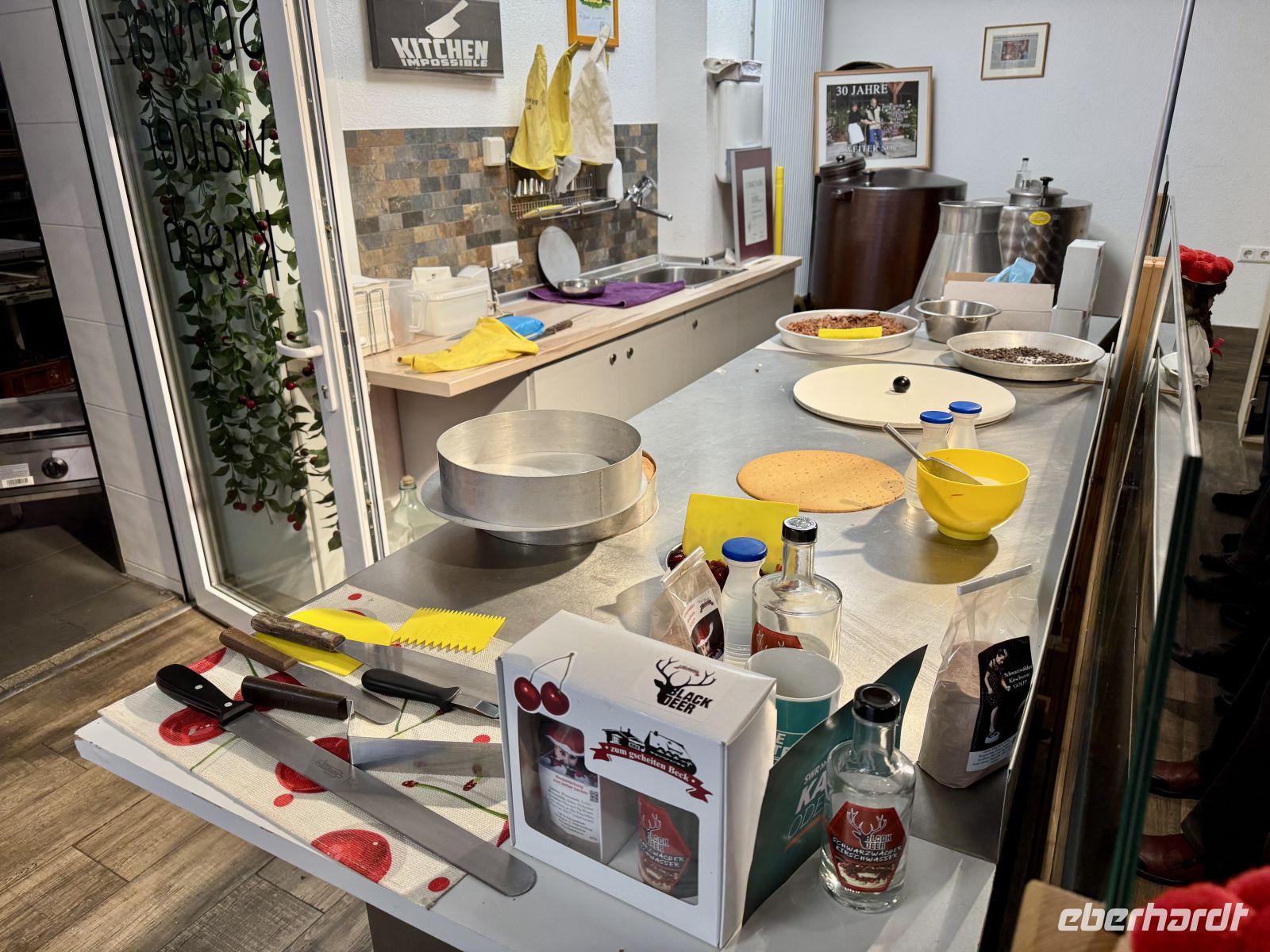 Unser Programm beginnt gleich nach meinem Geschmack: Wir gehen vom Frühstück zum Kaffeetrinken über. Dazwischen liegt allerdings noch die Fahrt von Alpirsbach zum Feldberg. Dazu verlassen wir noch einmal kurz den Schwarzwald, passieren auf der Autobahn Donaueschingen und fahren dann ein Stück südlicher wieder in den Schwarzwald hinein. Wir können aus dem Bus schon einen ersten Blick auf den Titisee werfen, bevor wir am Café Gscheiter Beck in Bärental zum Stehen kommen. Hier wird uns erstmal auf witzige und männergerechte Art demonstriert, wie kinderleicht und schnell so eine echte Schwarzwälder Kirschtorte herzustellen ist. Zumindest mit viel Übung, der richtigen Ausstattung und einer Ausbildung als Konditorin. Wir verlagern uns dann doch lieber auf das, was wir gut können: ebendiese Schwarzwälder Kirschtorte aufessen, bis selbst der letzte Krümel vom Teller verschwunden ist. Als Dessert zum Dessert wartet anschließend im benachbarten Schnapsmuseum noch eine Kostprobe auf uns. Na, das geht ja gut los! Nach Aufnahme so vieler Kalorien sollten wir uns wohl besser ein bisschen die Beine vertreten. Die Gelegenheit dazu haben wir bei einem Aufenthalt am Titisee. Freundlicherweise reißt auch die Wolkendecke auf, wodurch wir in den Genuss wärmender Sonnenstrahlen kommen. Auf der Rückfahrt machen wir einen spontanen Stopp in St. Peter und besichtigen die imposante barocke Pfarrkirche neben dem ehemaligen Kloster. Der Besitzer des Glühweinstands am Busparkplatz macht außerdem das Geschäfts des Jahres. Durch das schöne Glottertal und das Enztal fahren wir schließlich zurück nach Alpirsbach und schwelgen dabei in Erinnerungen an Dr. Brinkmann und die Schwarzwaldklinik.