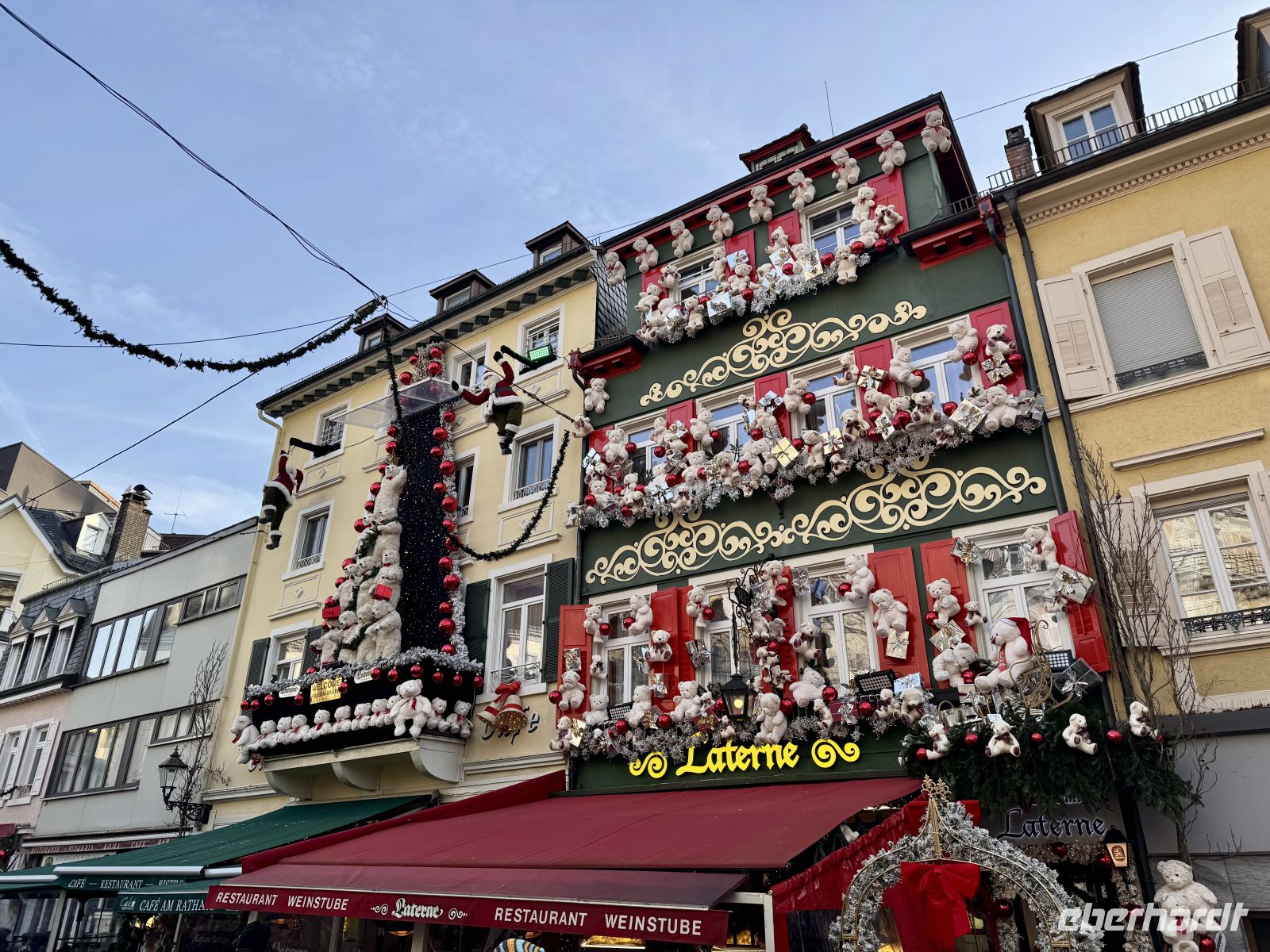 Das neue Jahr beginnt sonnig und etwas weniger kalt. Zumindest laut Thermometer. Der kalte Wind lässt uns trotzdem frösteln, als wir uns in Freudenstadt den größten Marktplatz Deutschlands anschauen. Deshalb gehen wir auch gleich in die beheizte Stadtkirche, die als nur eine von zwei Winkelkirchen in Deutschland eine echte Rarität darstellt. Wie auch die schönen Häuser mit ihren Arkaden um den Markt wurde die Kirche gegen Ende des zweiten Weltkriegs stark beschädigt und fast originalgetreu wieder aufgebaut — das „Wunder von Freudenstadt“. Natürlich sind wir heute an Neujahr nicht so zeitig gestartet wie sonst, sodass es schon fast Mittag ist, als wir Freudenstadt in Richtung Baden-Baden verlassen. Wir nehmen die Schwarzwaldhochstraße und genießen die Aussicht über den nördlichen Schwarzwald. Am Mummelsee machen wir eine Pause und halten Ausschau nach der Nixe. Wer mag, kann den kleinen See unterhalb der Hornisgrinde auf einem Spaziergang umrunden. Es dauert höchstens zehn Minuten. Danach geht es höhentechnisch langsam bergab, bis wir schließlich vor dem Festspielhaus von Baden-Baden wieder zu stehen kommen. Hier steigen wir aus und laufen gemeinsam zum Christkindelmarkt vor dem Kurhaus. Dort können wir uns mit Glühwein aufwärmen und eine Kleinigkeit essen. Es gibt viele schöne Buden und auch einen Märchenbereich. Wer einen Abstecher in die Altstadt wagt, stößt in der Fußgängerzone auf singende Rentiere, den Weihnachtsmann in seinem Schlitten und jede Menge andere kitschige Weihnachtsdekoration. Inzwischen füllt sich der Christkindelmarkt immer mehr und auch das Casino öffnet endlich seine Pforten. Zu schade, dass wir langsam die Rückfahrt antreten müssen. Wir treffen uns alle an der Trinkhalle und laufen zurück zum Festspielhaus, wo Heinz bereits mit dem Bus auf uns wartet. Durch das schöne Murgtal fahren wir über Baiersbronn und Freudenstadt zurück nach Alpirsbach. Im Hotel Rössle werden wir am Abend ein letztes Mal gut und herzlich bewirtet. Vielleicht bleiben wir spontan noch eine Nacht länger? Kapazitäten wären laut unserer Wirtin vorhanden, kein Problem!